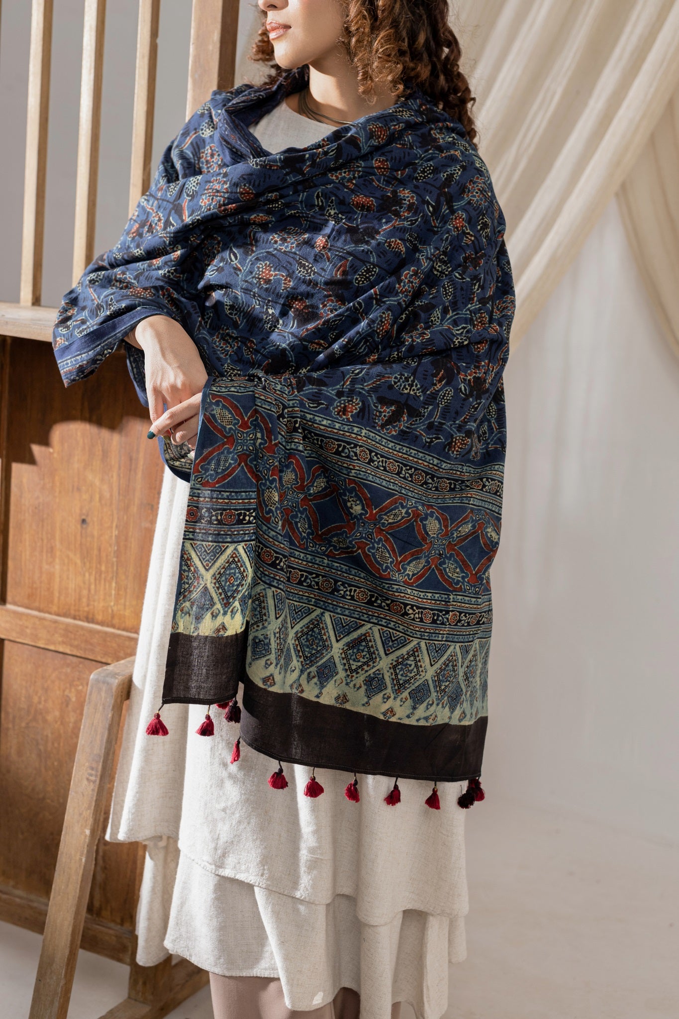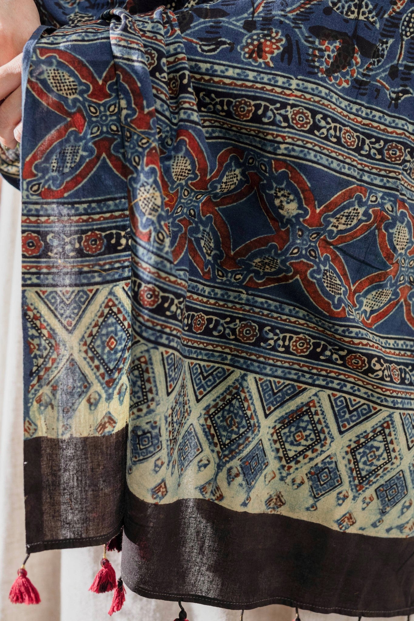 Indigo - Ajrakh Hand Block Printed Cotton Dupatta