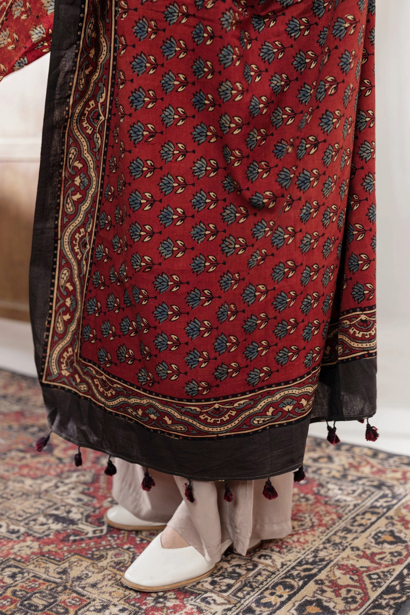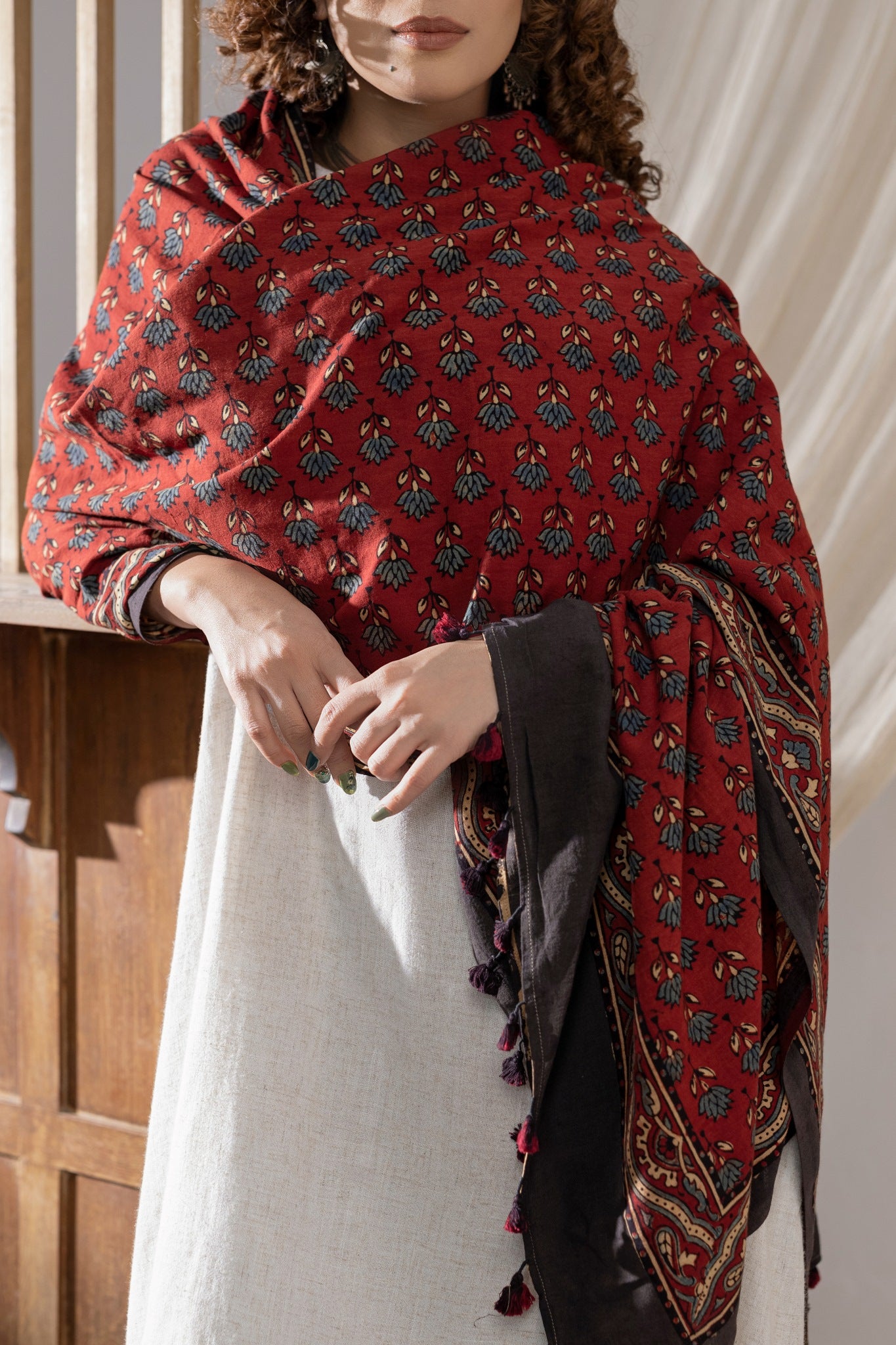Red - Ajrakh Hand Block Printed Cotton Dupatta