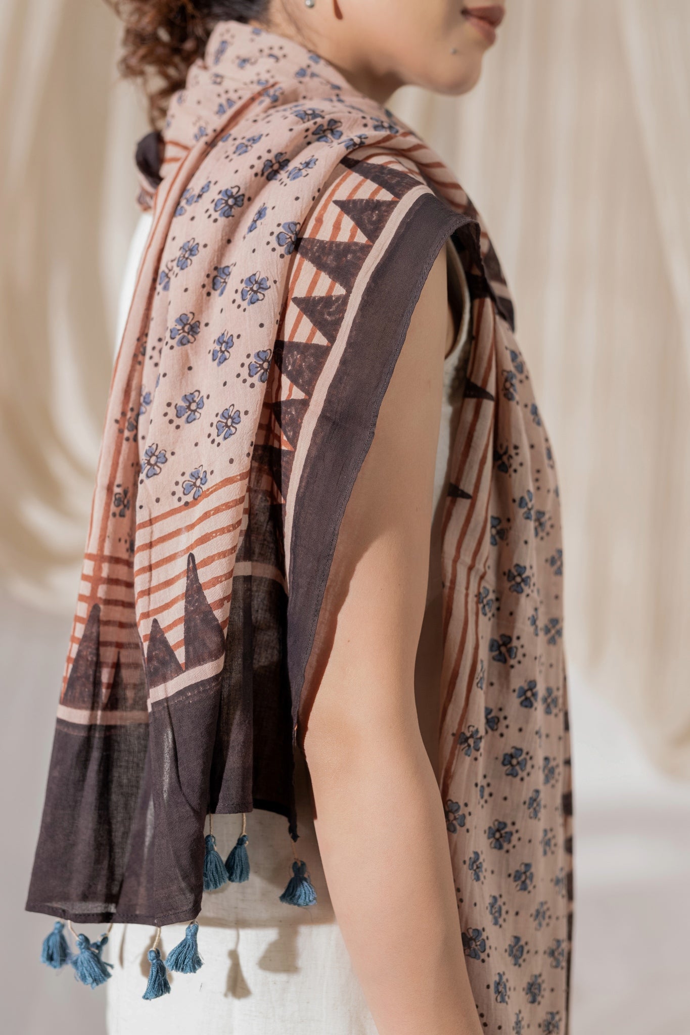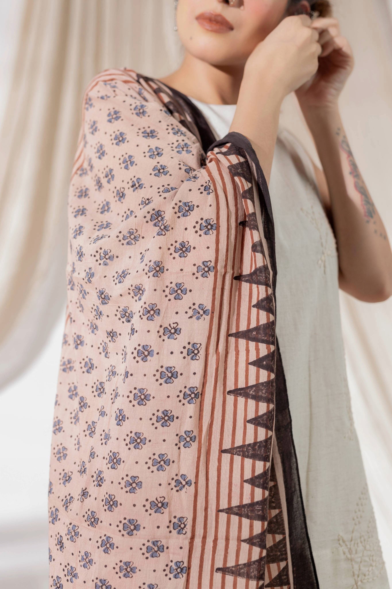 Cream - Ajrakh Hand Block Printed - Handloom Cotton Stole