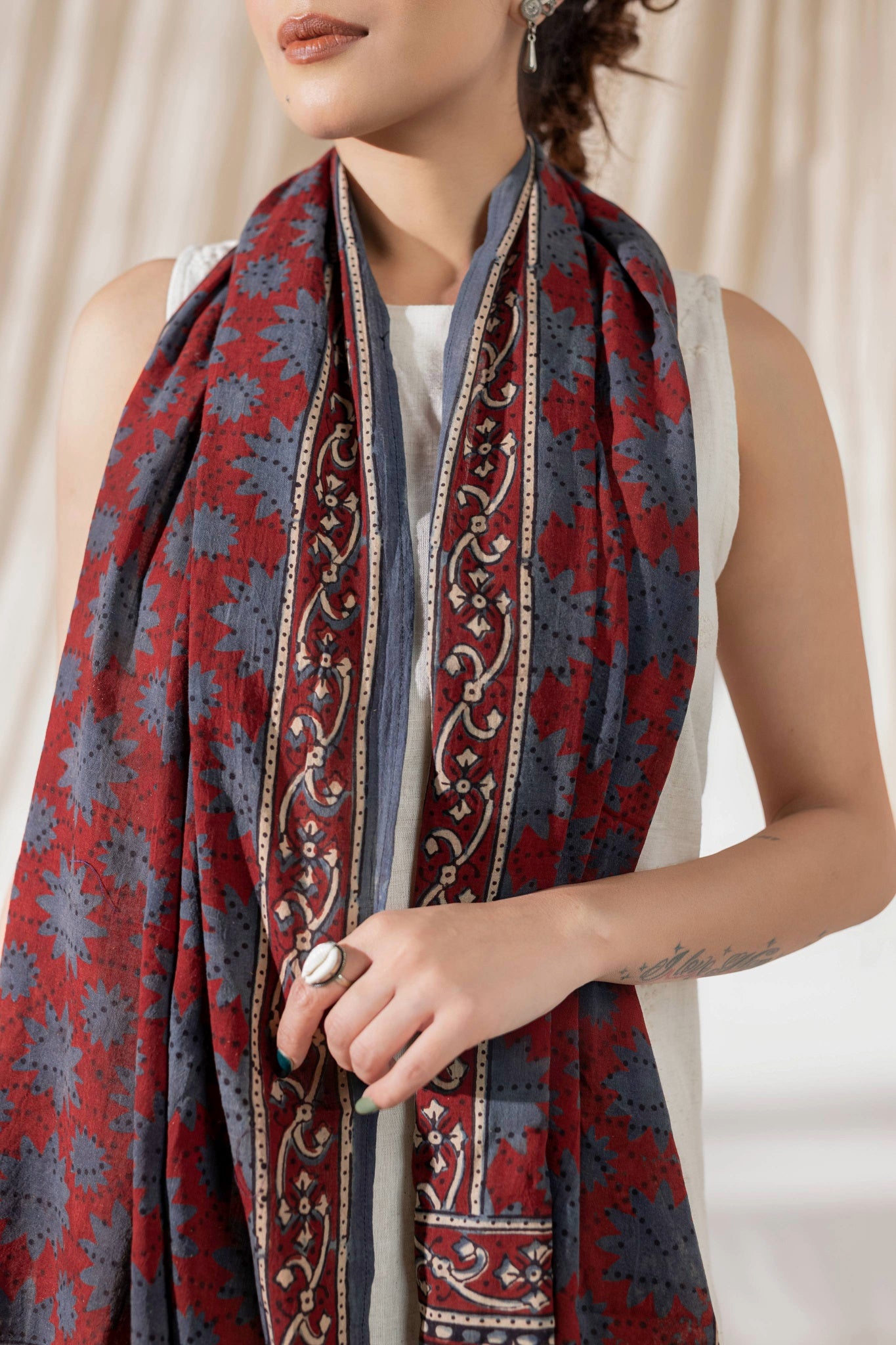 Red - Ajrakh Hand Block Printed - Handloom Cotton Stole
