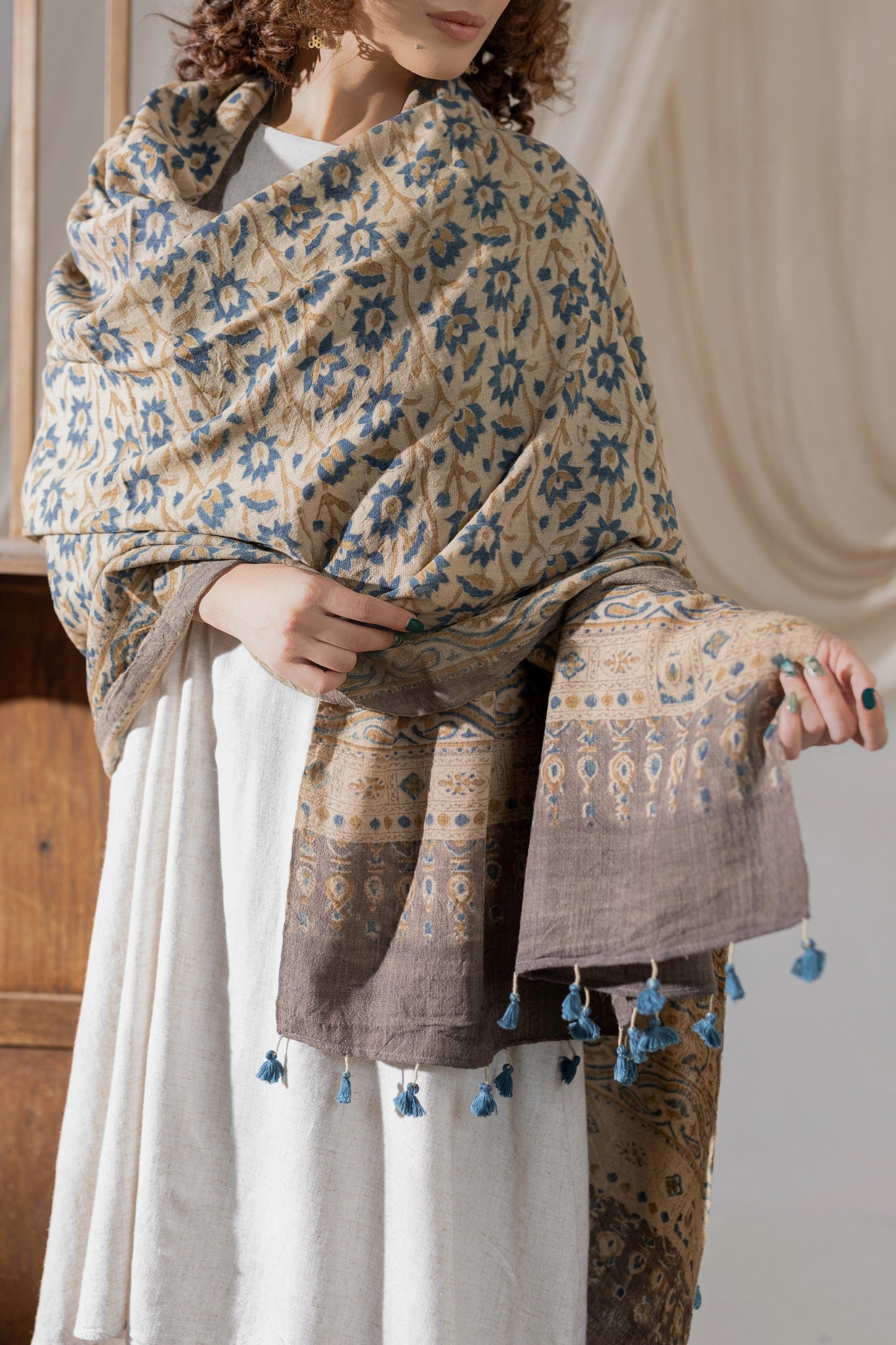Ajrakh Hand Block Printed - Handloom Woolen Dupatta