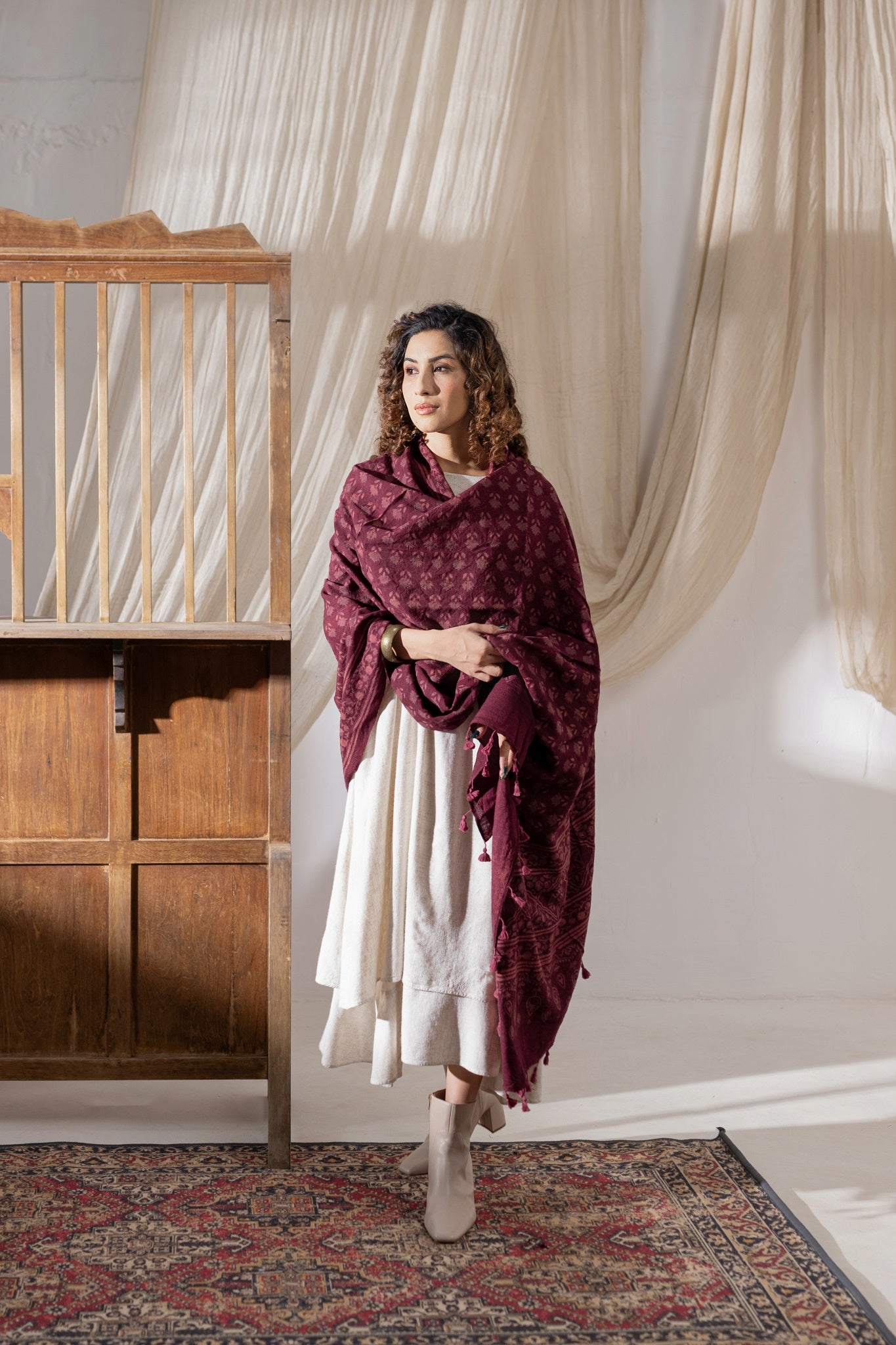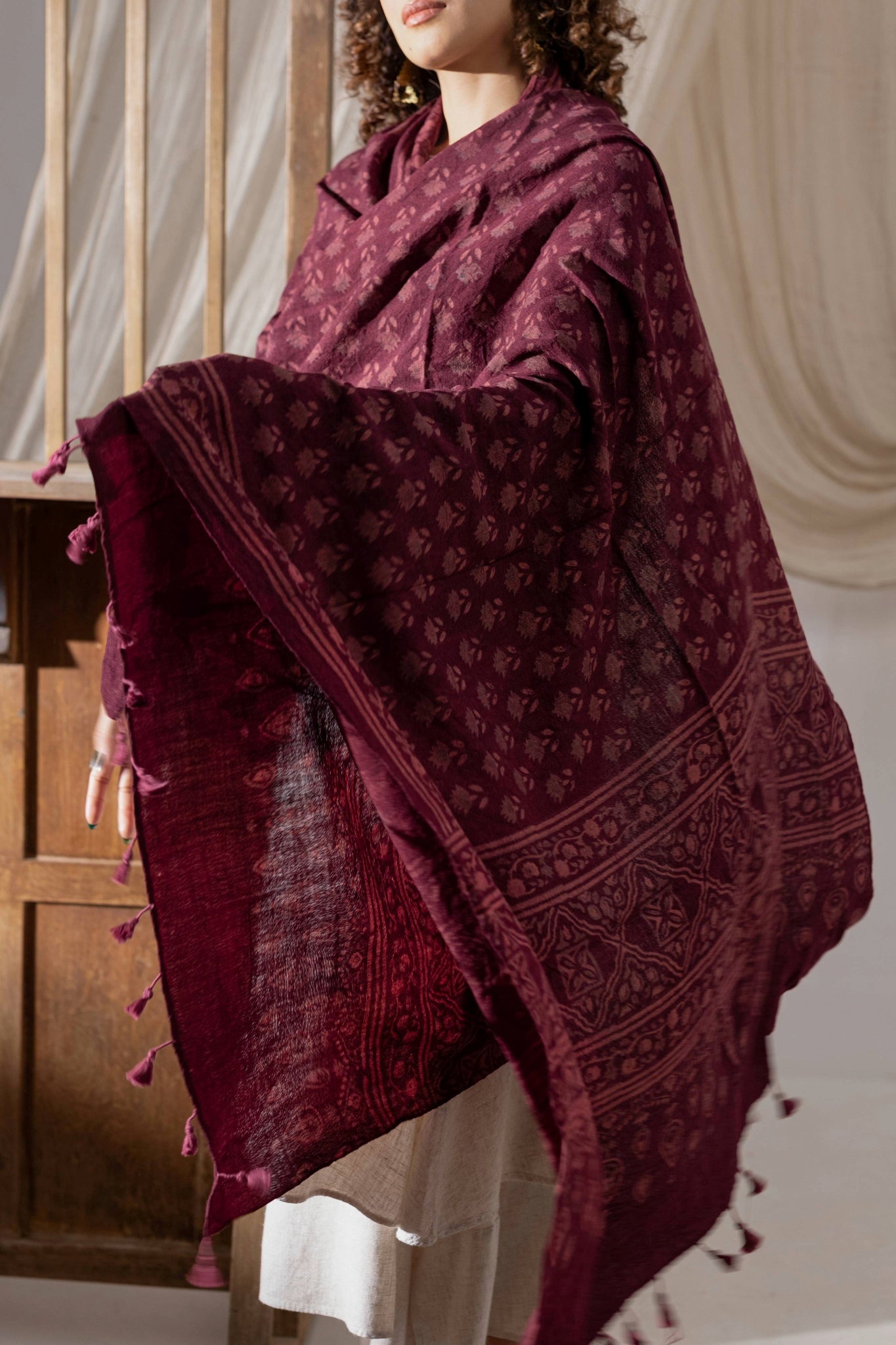 Ajrakh Hand Block Printed - Handloom Woolen Dupatta