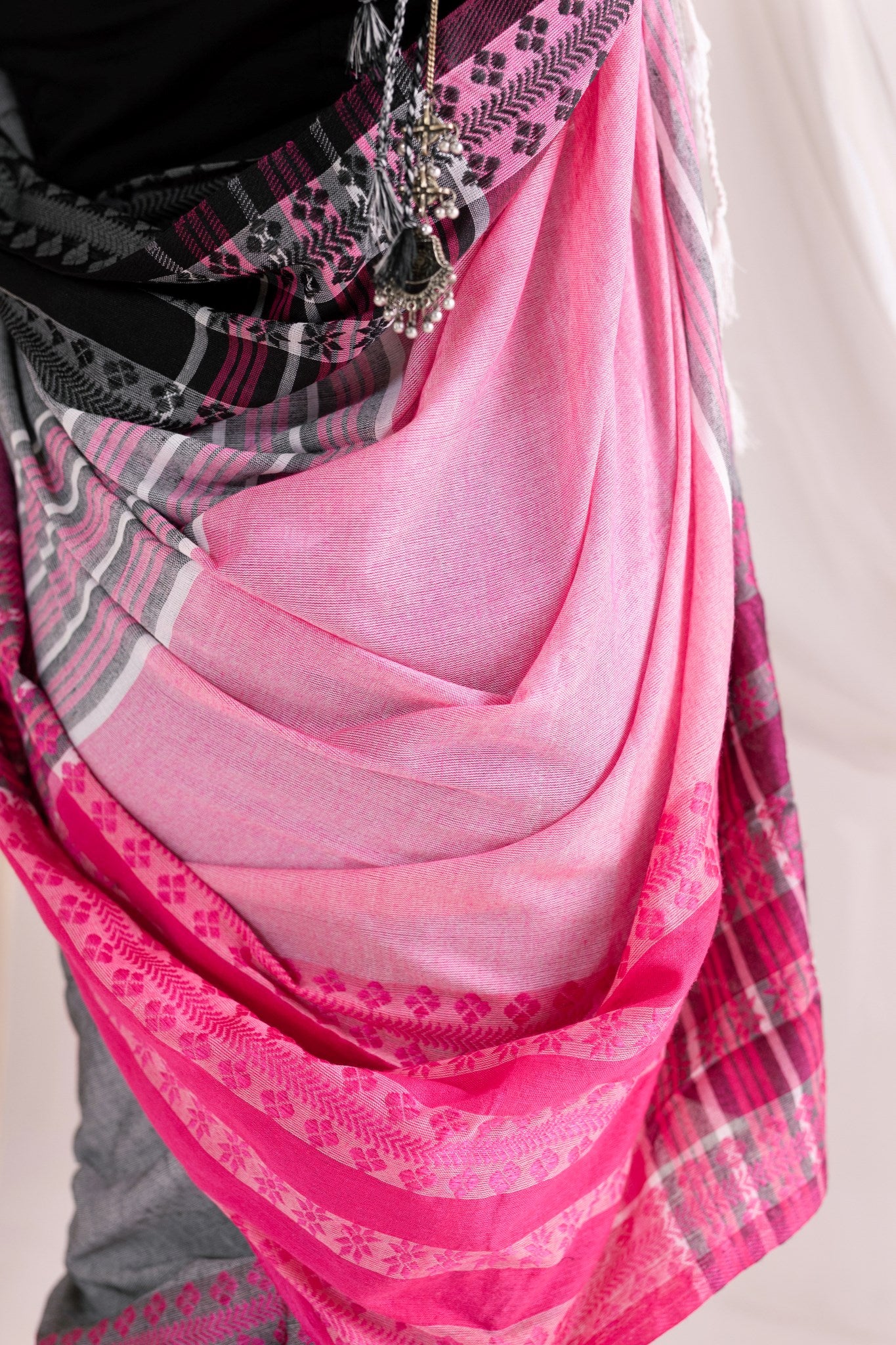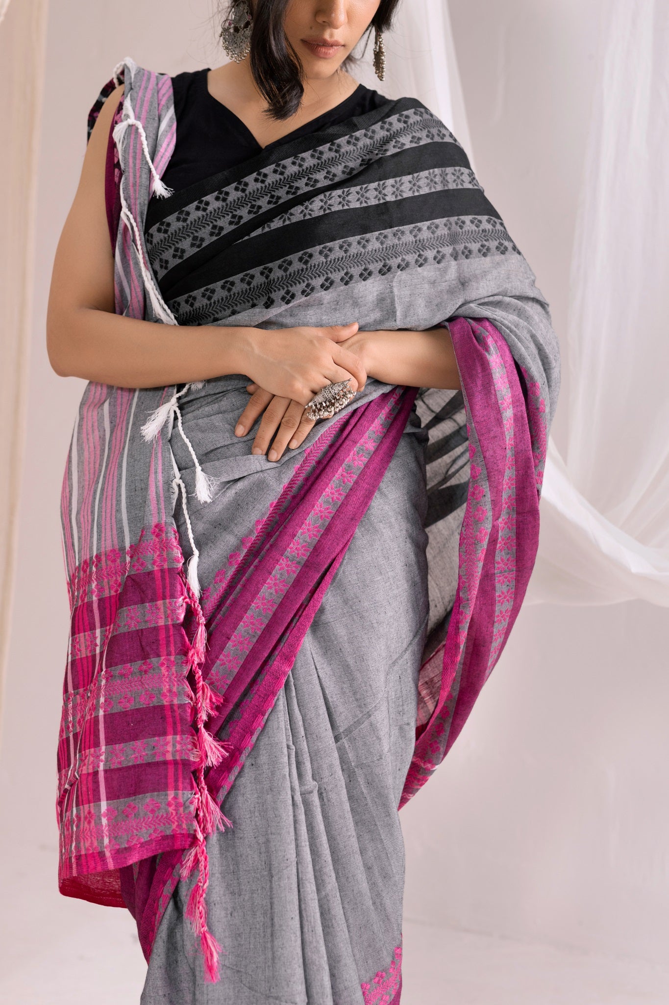 Begumpuri Handloom Cotton Saree - Grey/Pink/Black