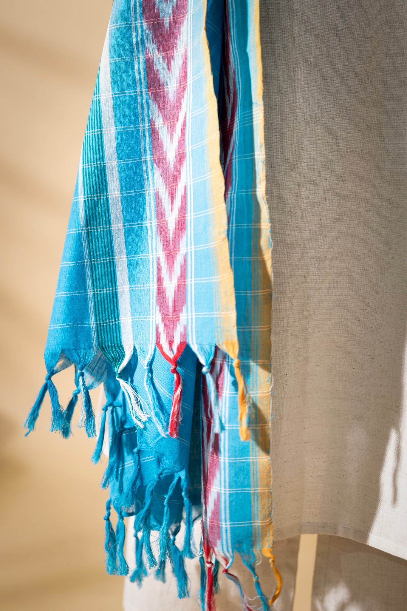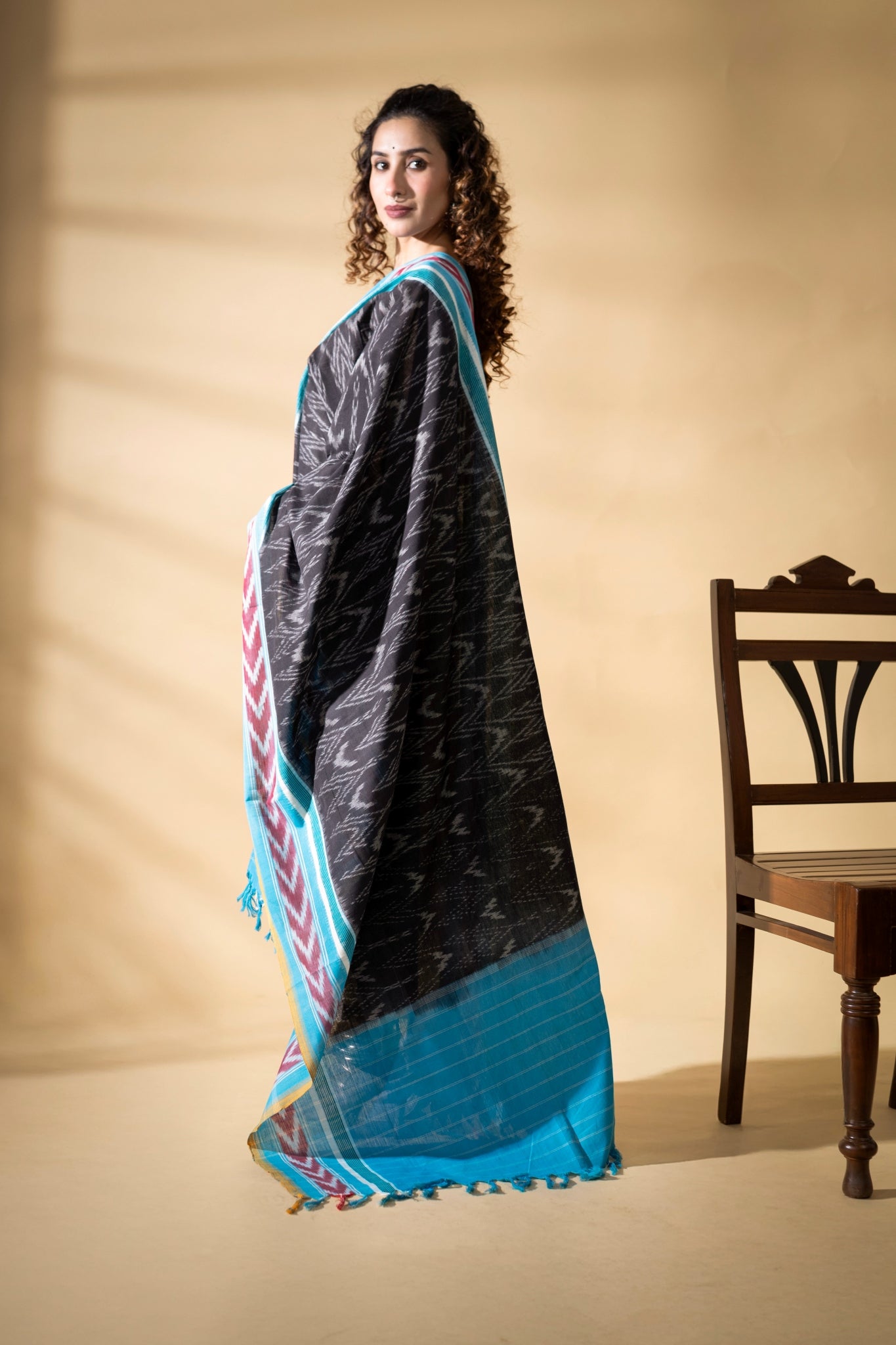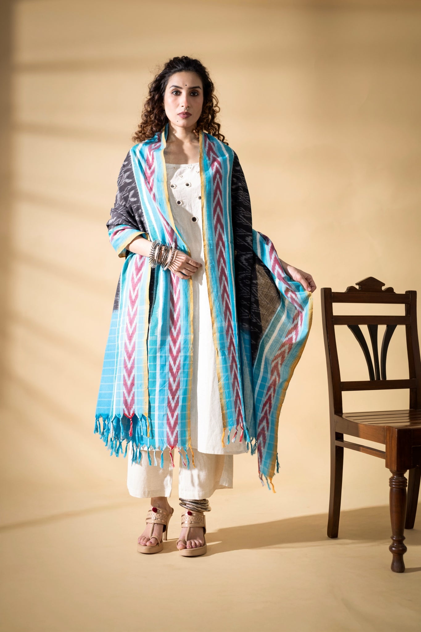 Black/Blue - Pochampally double Ikat cotton dupatta