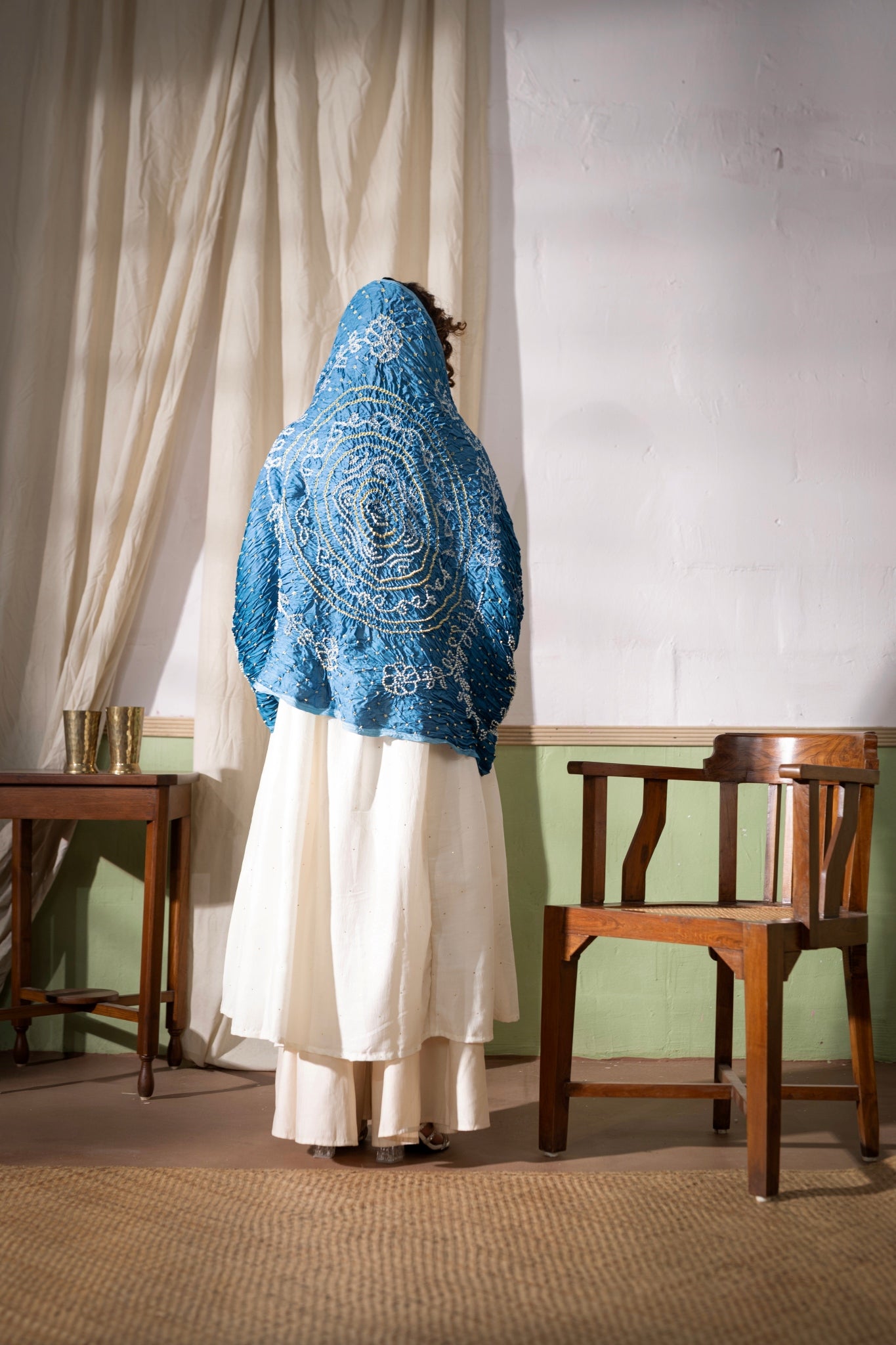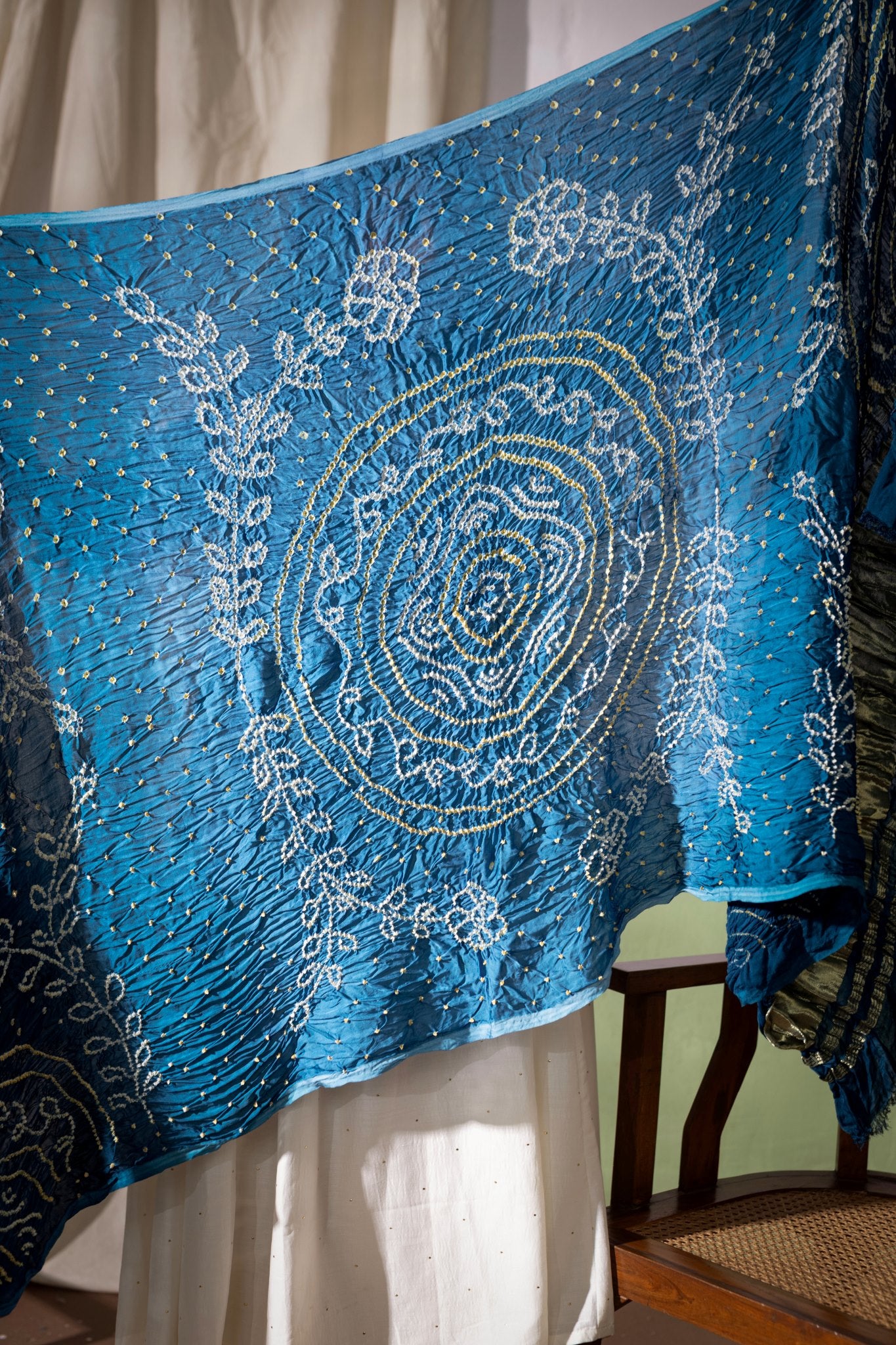 Gentle Hand Wash in Cold Water Separately as Hand Block, Hand Tye & Dye tends to Bleed a little in first & Second wash & Silk Dry Clean Only, Bandhani Dupatta's color may Bleed.