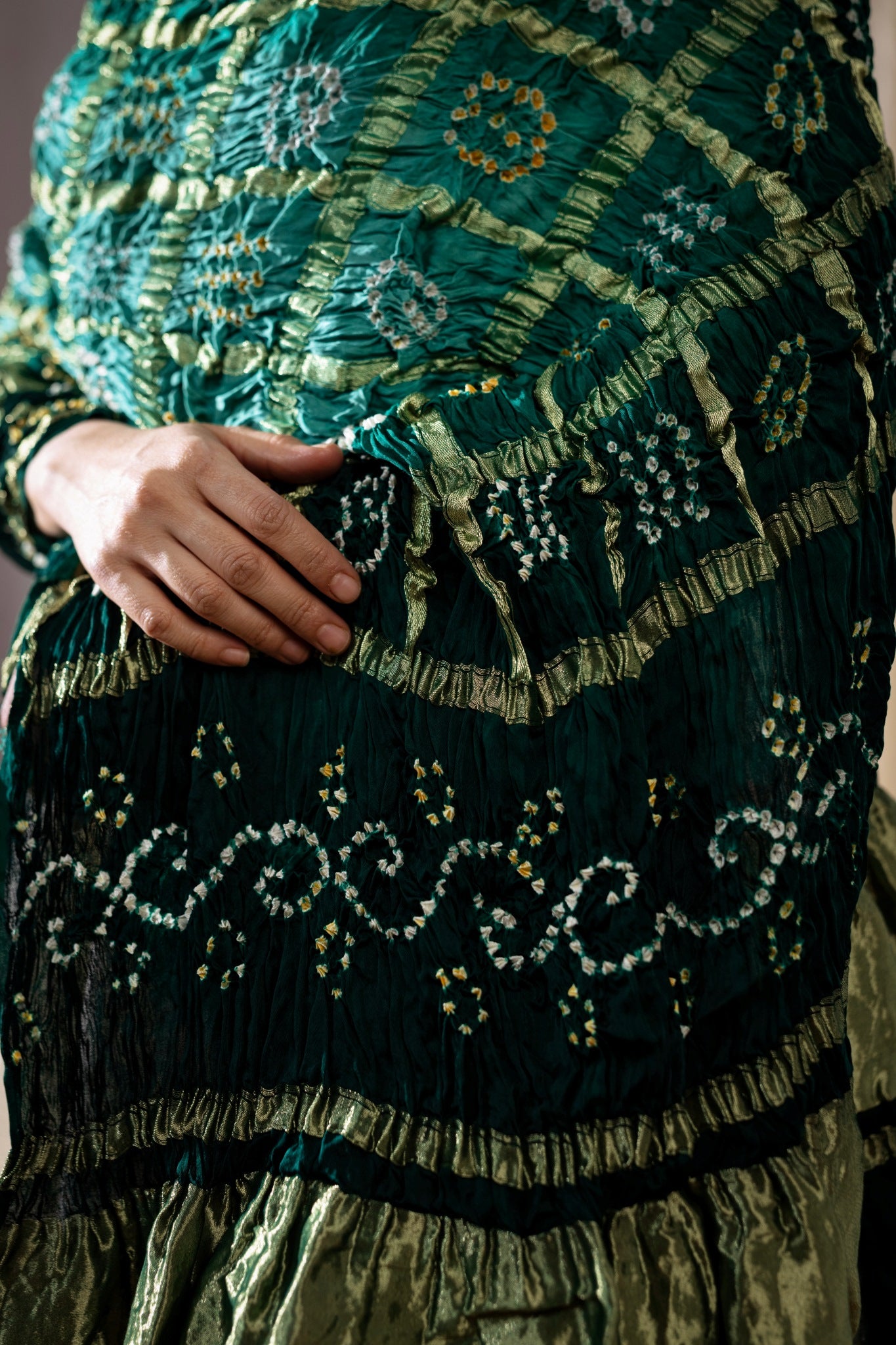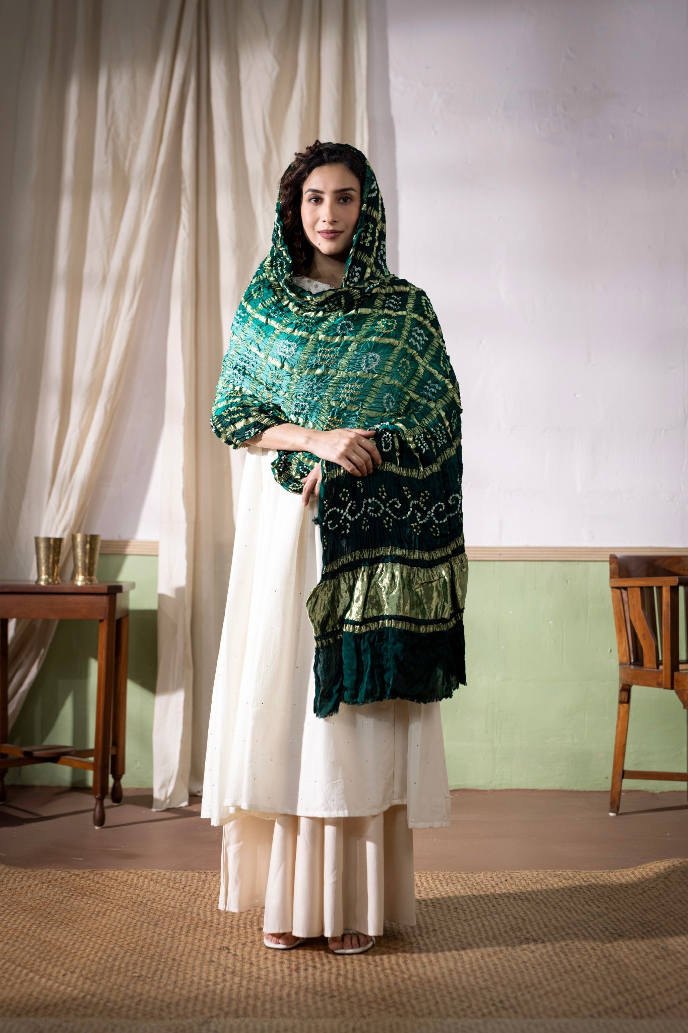 Bottle Green - Ombre Dyed Garchola Bandhani Modal Silk Dupatta with Zari Lagdi Patta