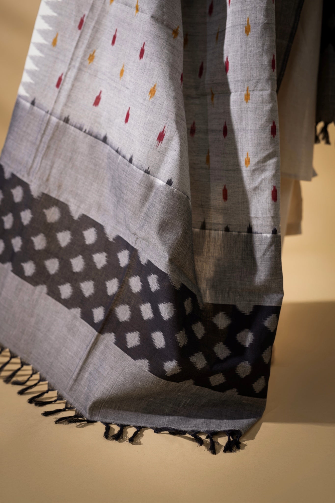 Grey/Black - Pochampally double Ikat cotton dupatta