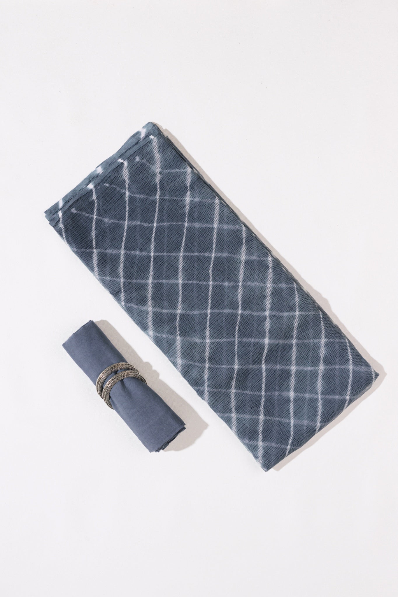 Grey - Kota Doria Bagru Hand Block Printed Saree