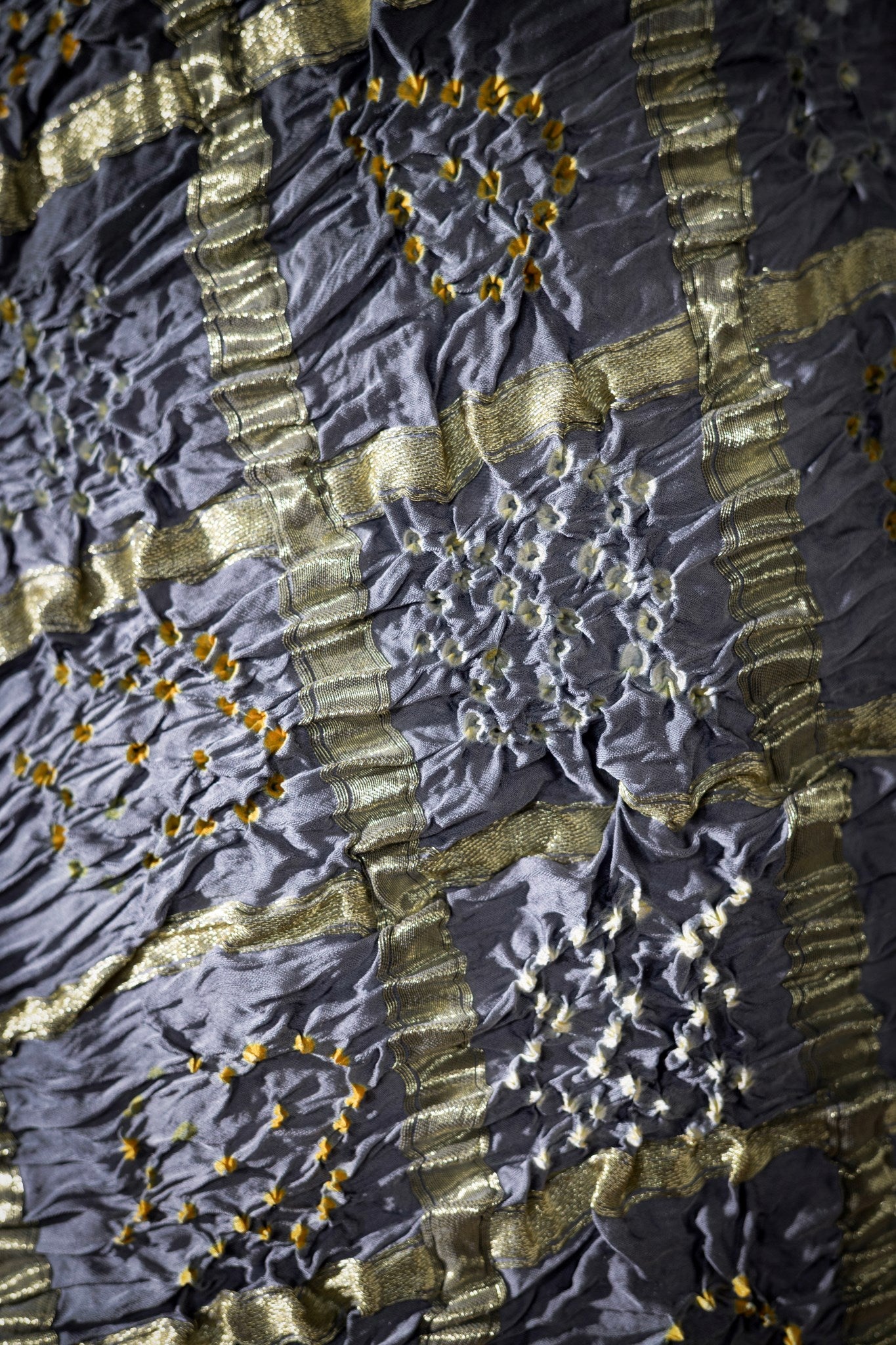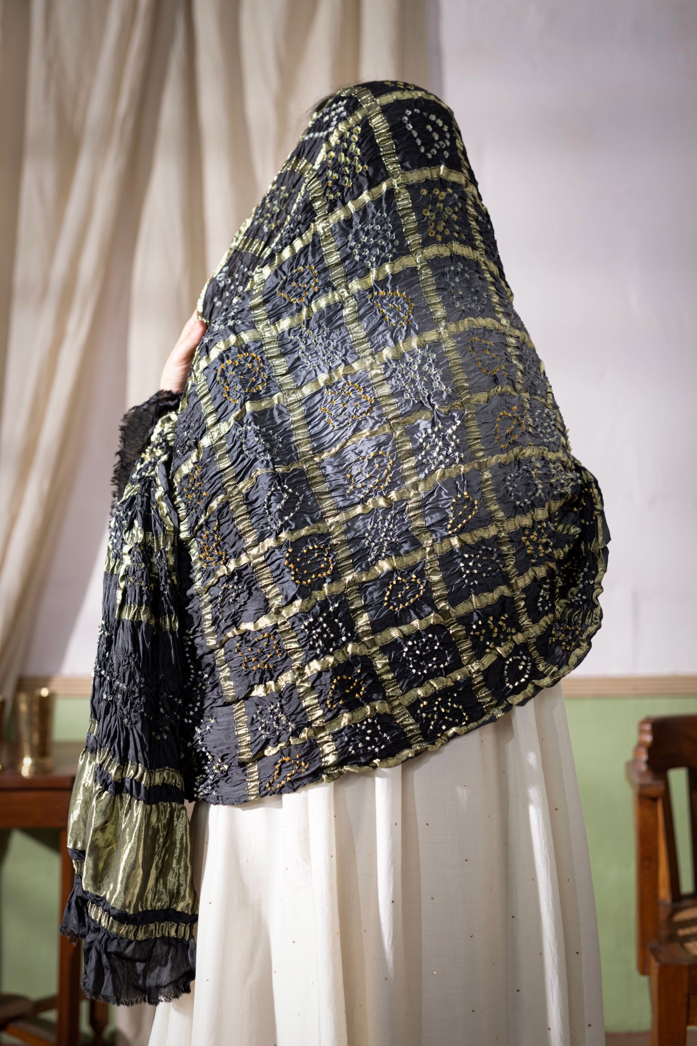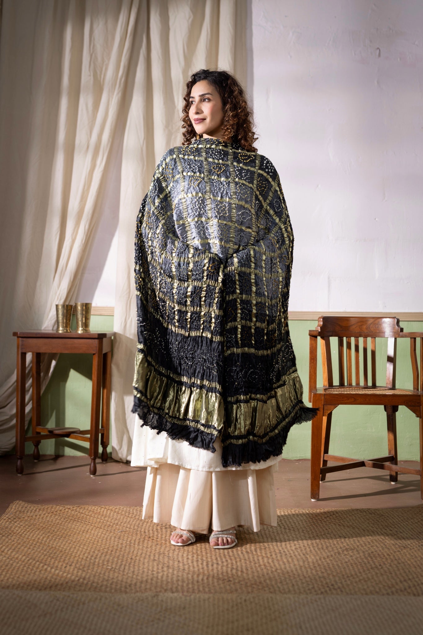 Grey - Ombre Dyed Garchola Bandhani Modal Silk Dupatta with Zari Lagdi Patta