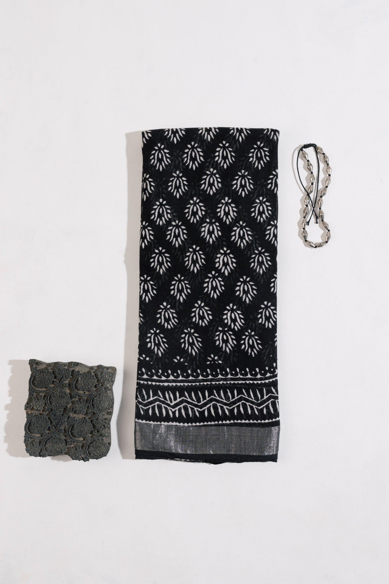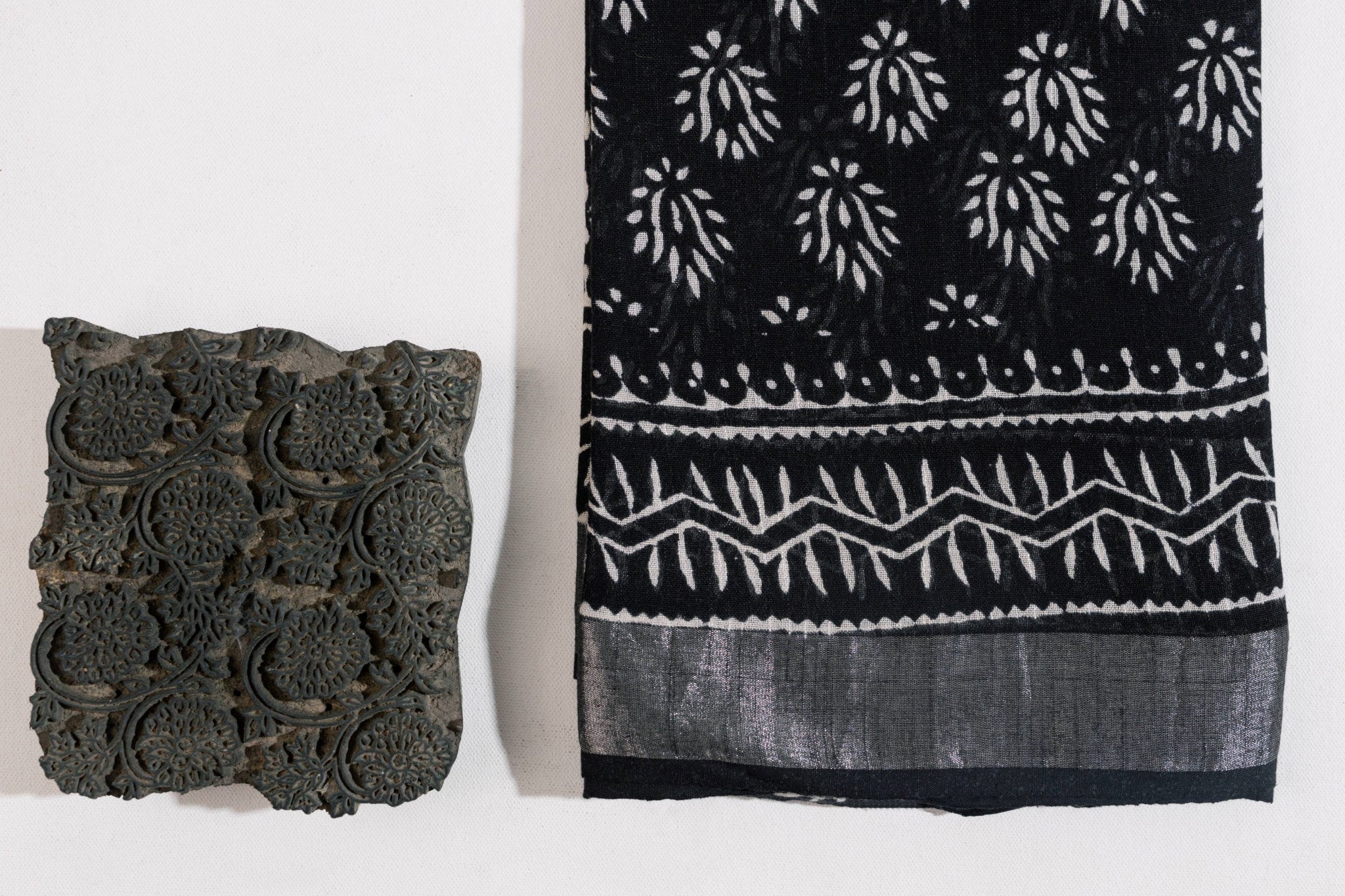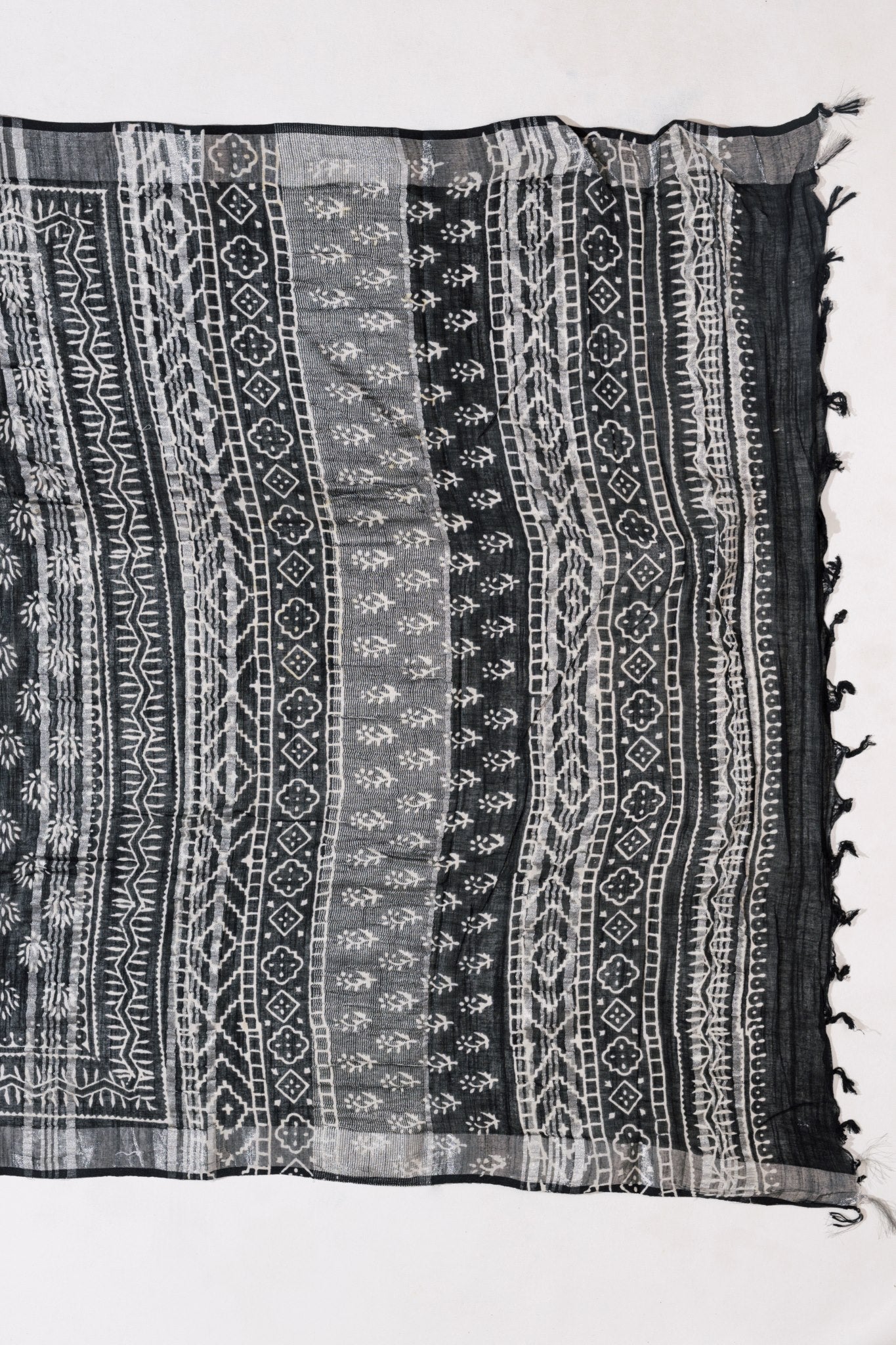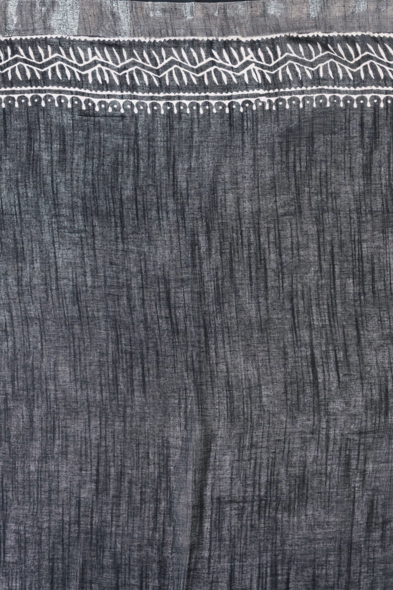 Black Linen Hand Block Saree