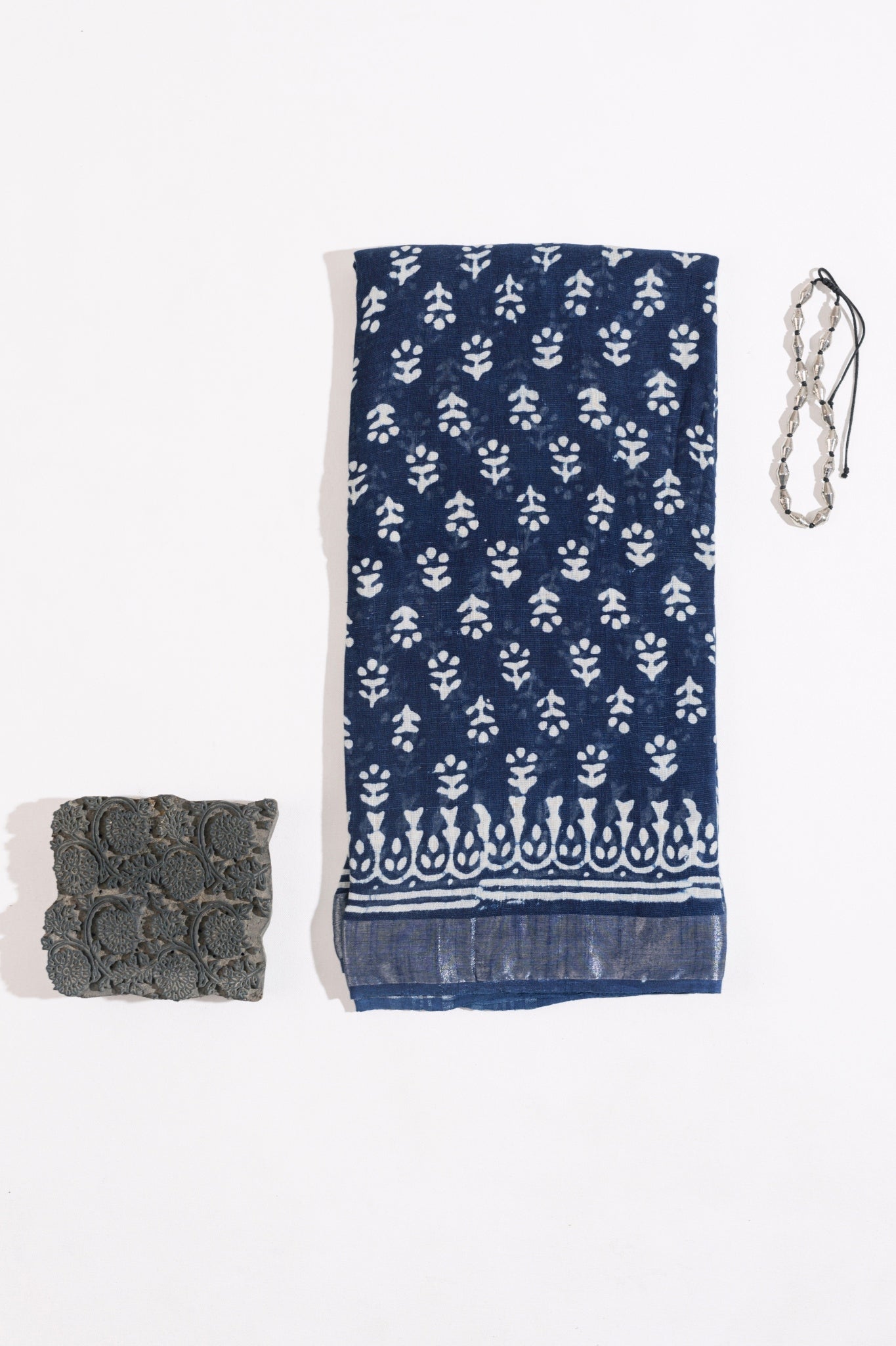 Indigo Linen Hand Block Saree