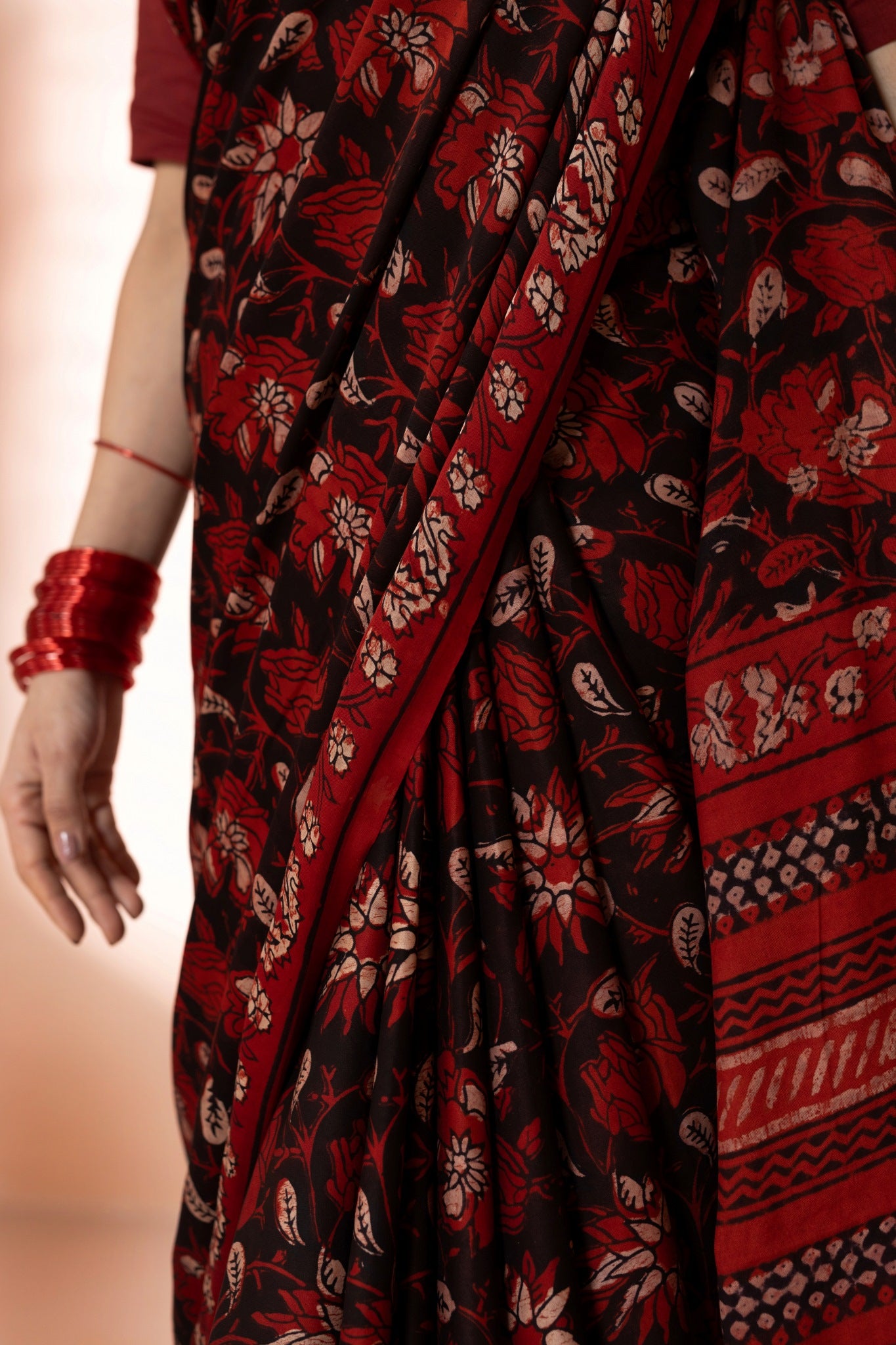 Maroon Modal Silk Bagru Hand Block Printed Saree
