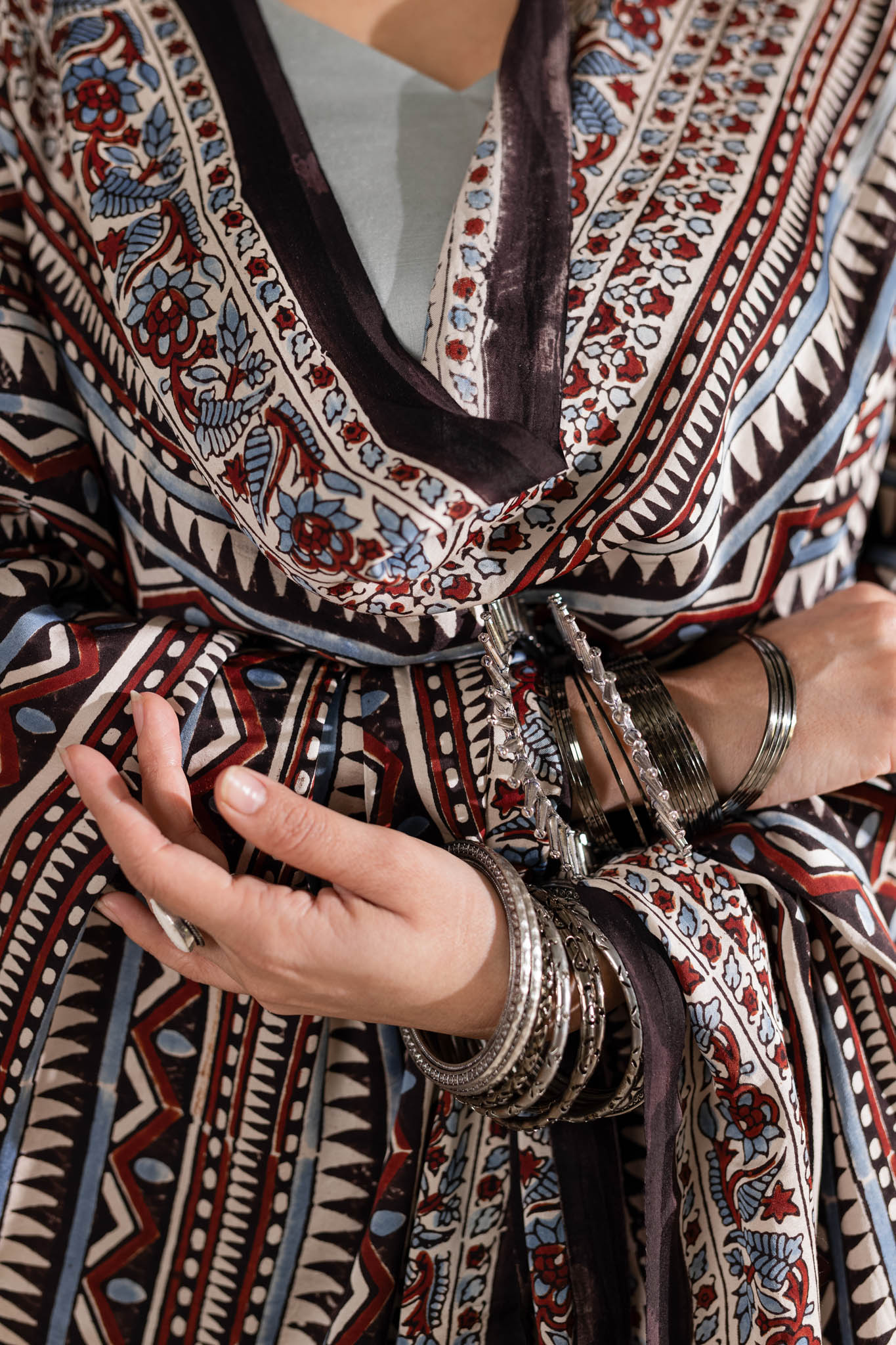 Gentle Hand Wash in Cold Water Separately as Hand Block, Hand Tye & Dye tends to Bleed a little in first & Second wash & Silk Dry Clean Only, Bandhani Dupatta's color may Bleed.