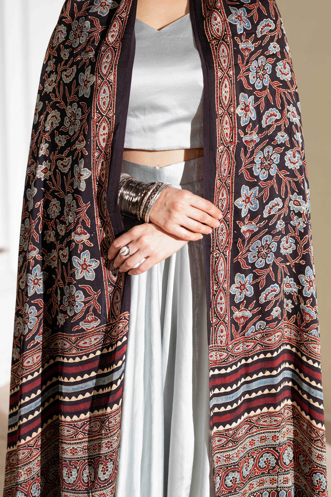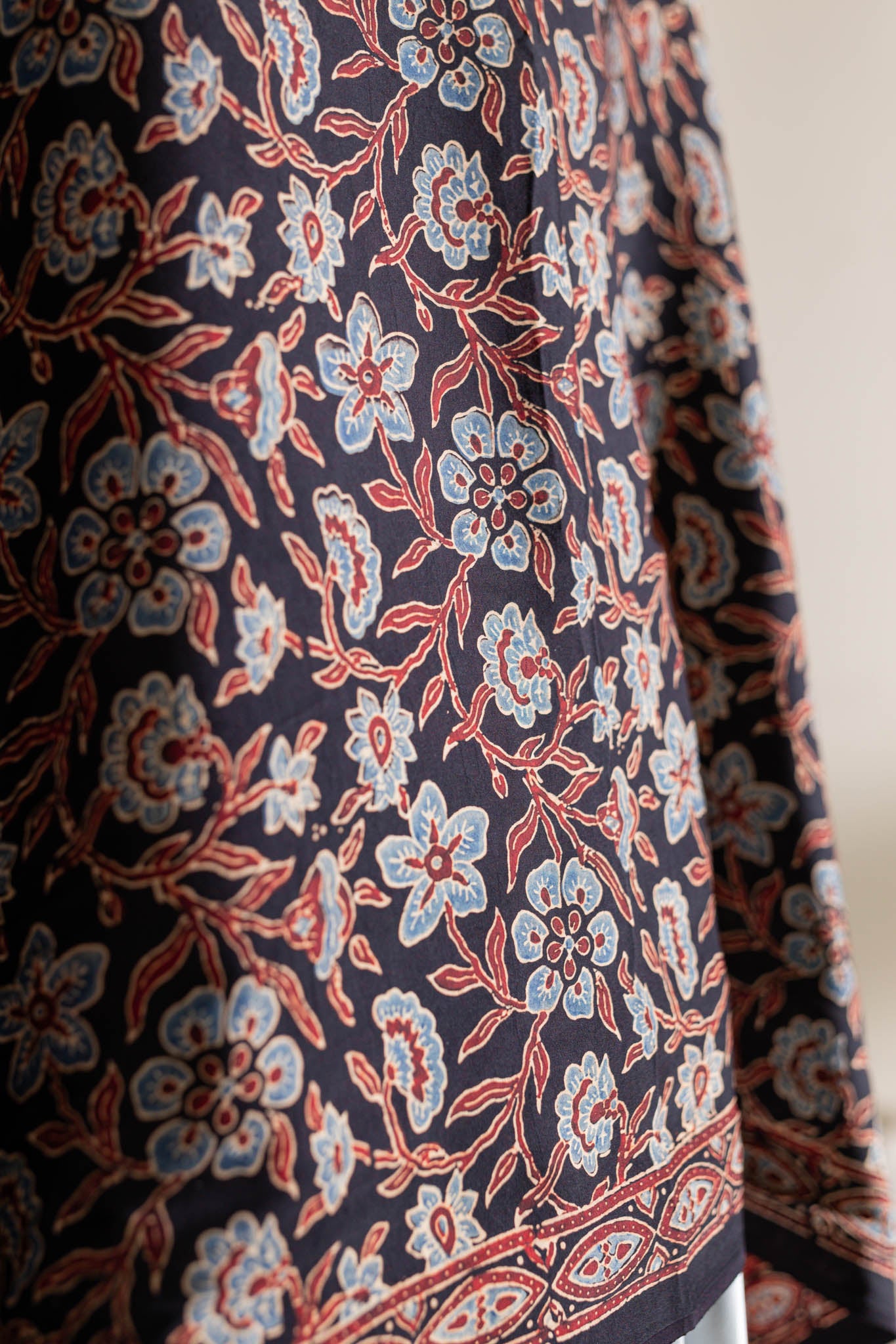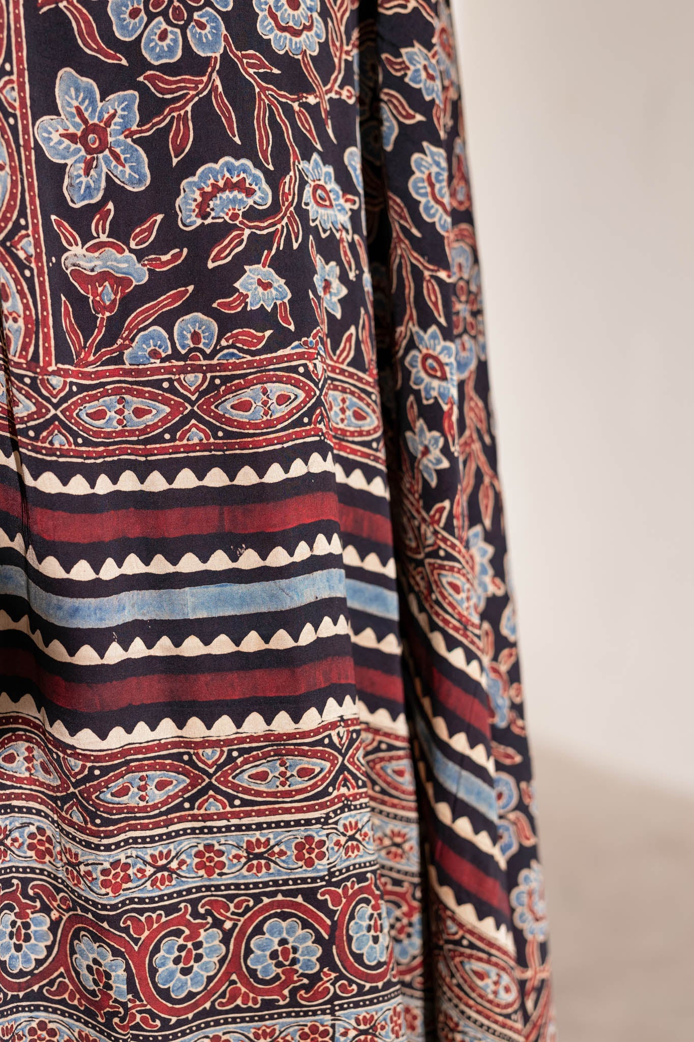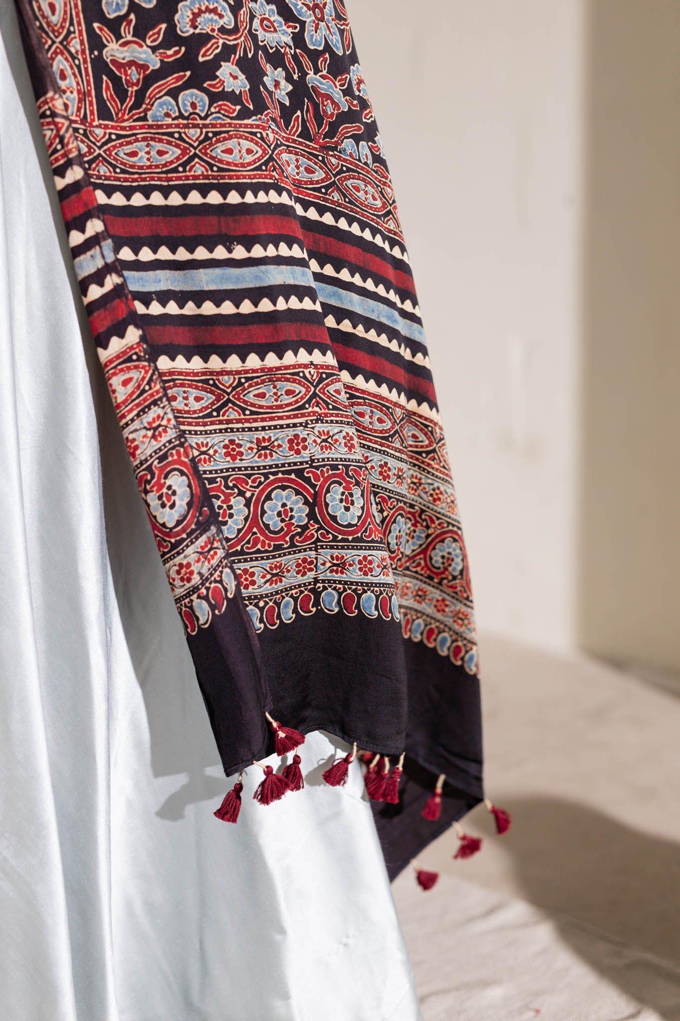 Maroon/Blue/Black - Modal Silk Ajrakh Hand Block Dupatta