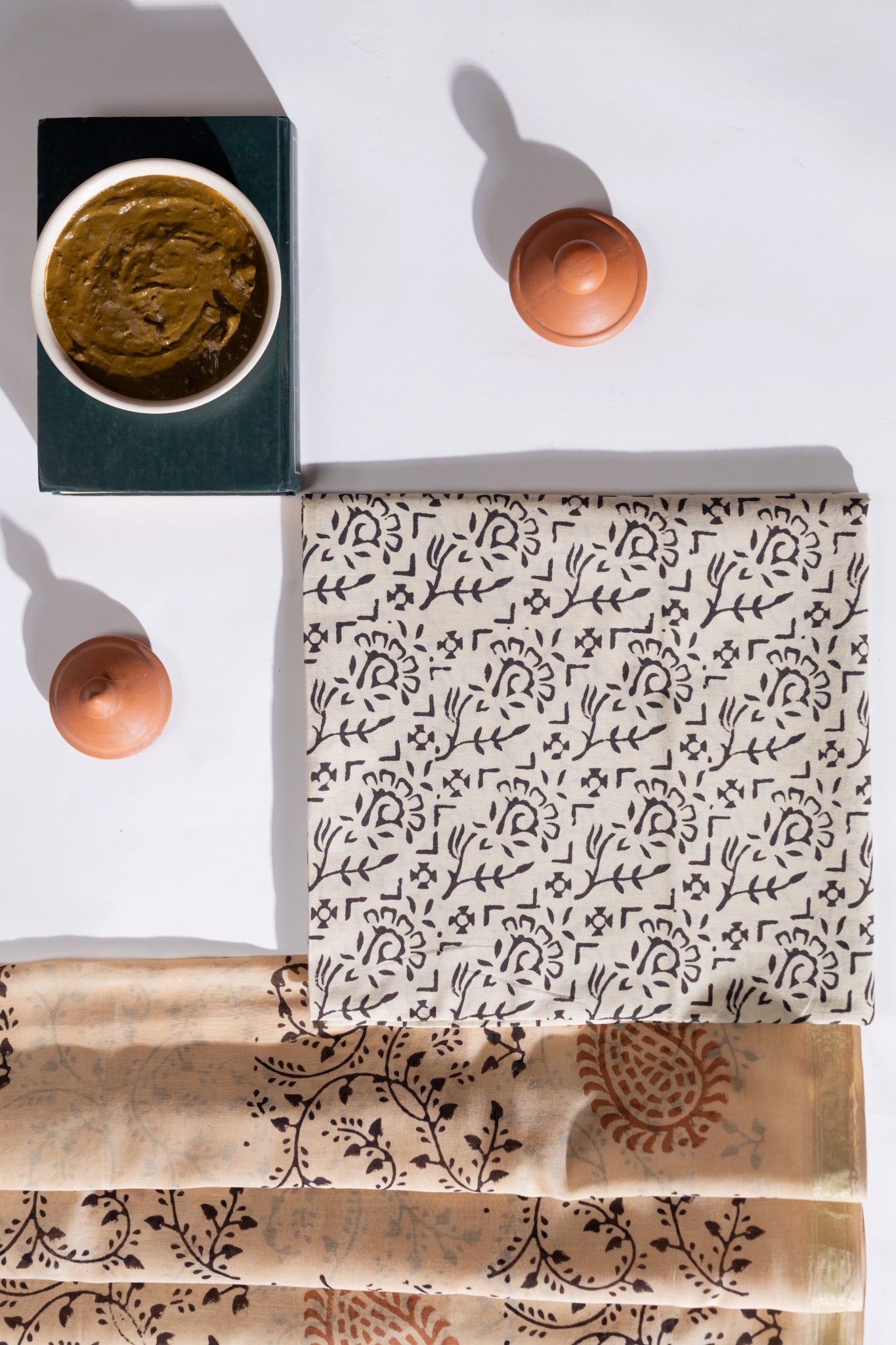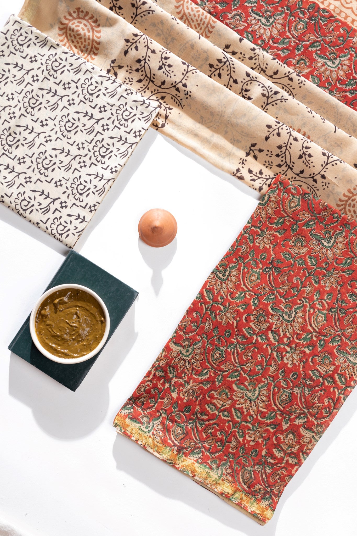 Pure Chanderi Silk Hand Block Printed 3 PC Suit - Maroon/Green