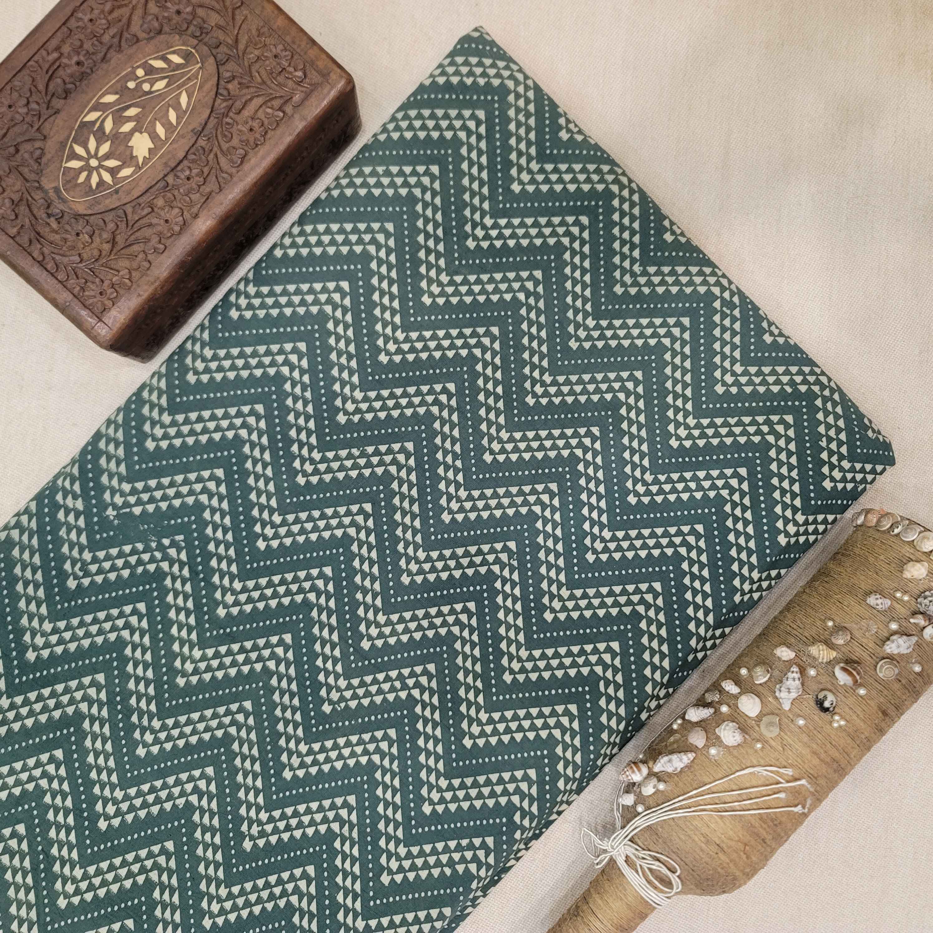 Pure Cotton Discharge Hand Block Printed Fabric - Zig Zag - Green