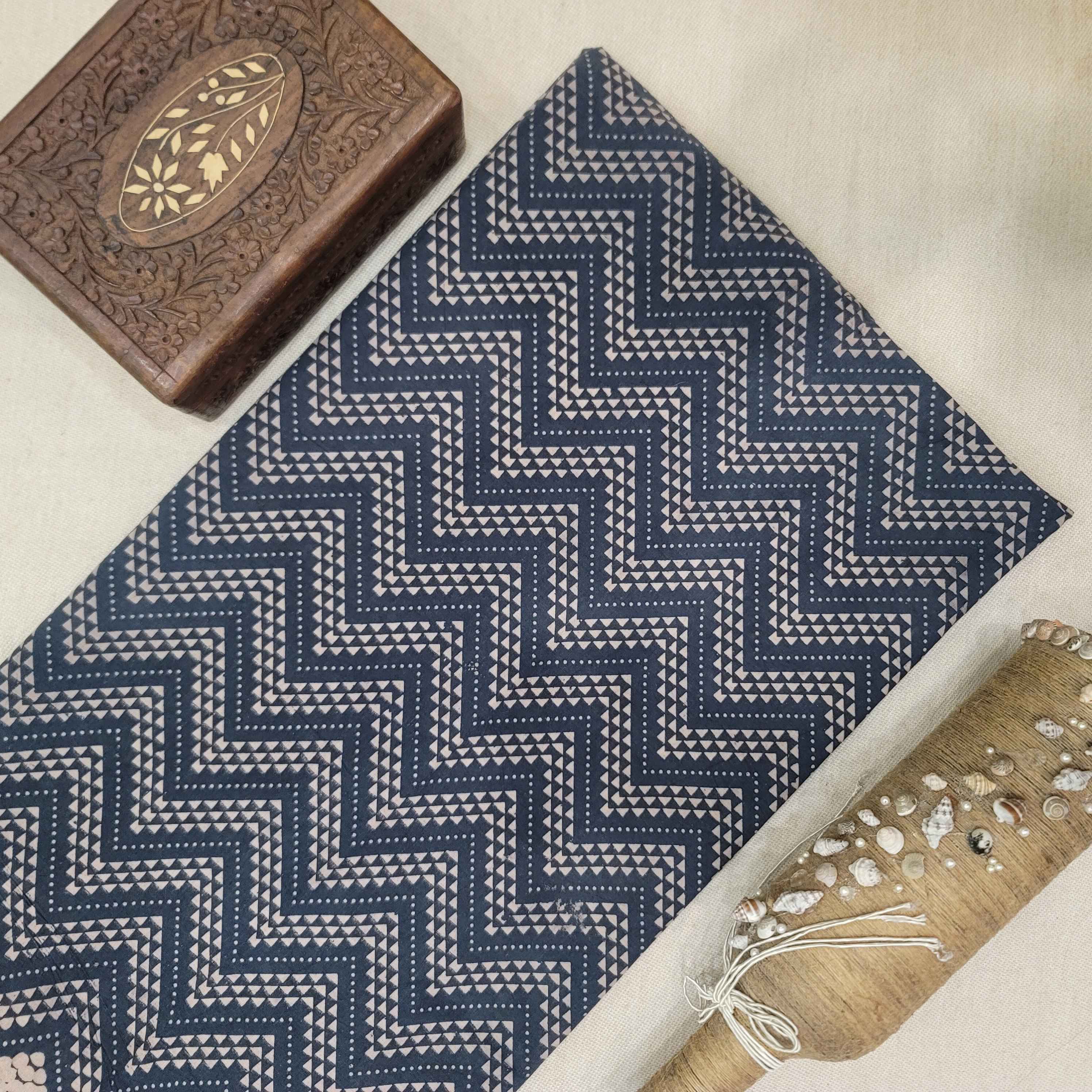 Pure Cotton Discharge Hand Block Printed Fabric - Zig Zag - Grey
