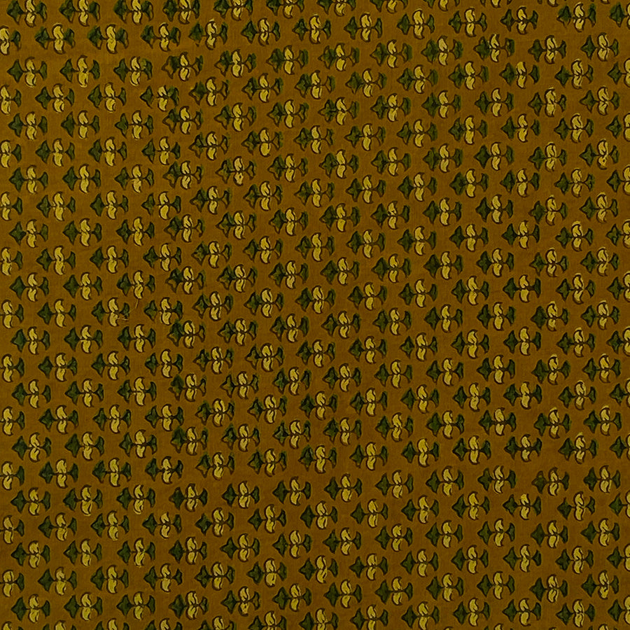 Pure Cotton Hand Block Ajrakh Printed Fabric - Small Butti - Mustard Yellow/Green