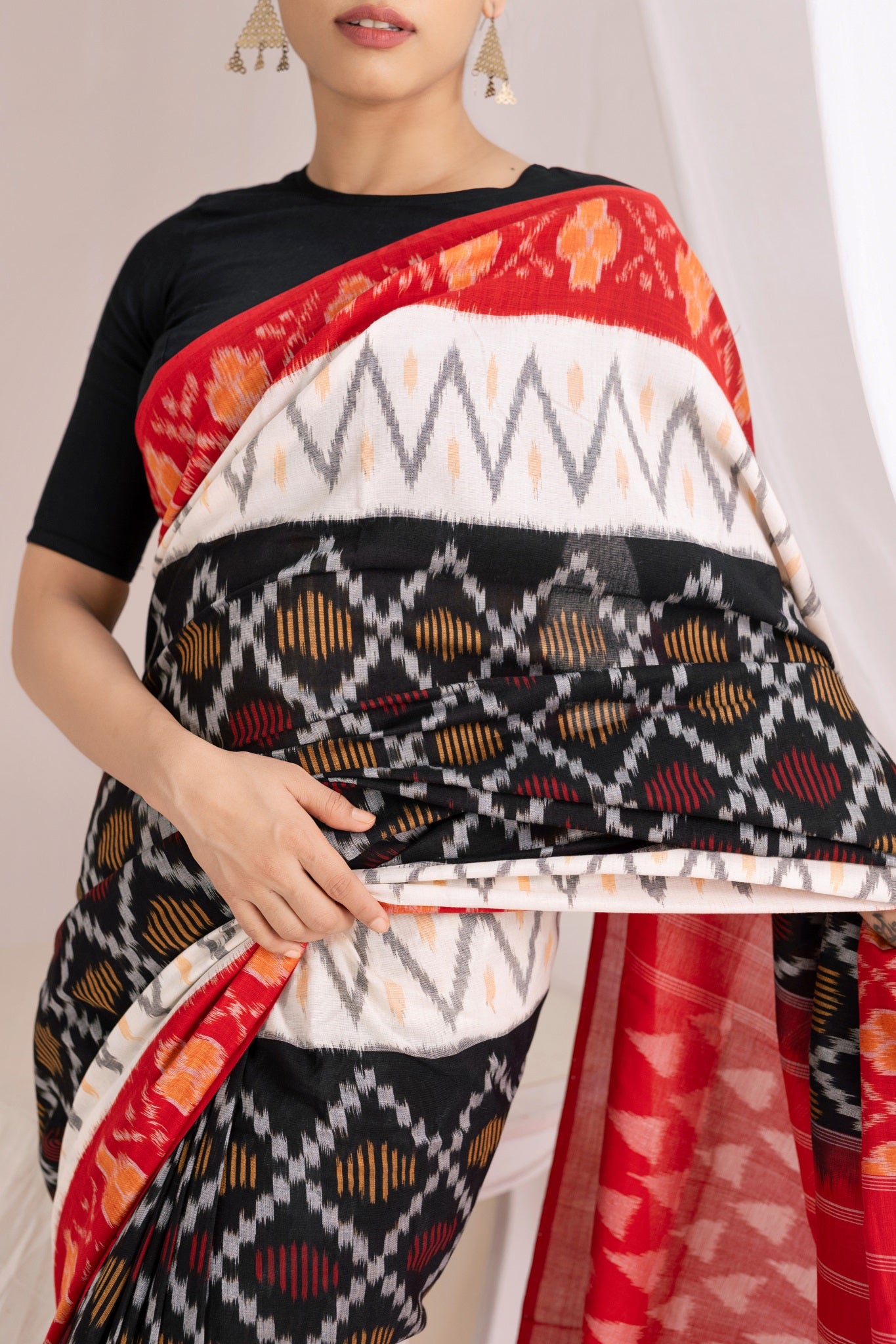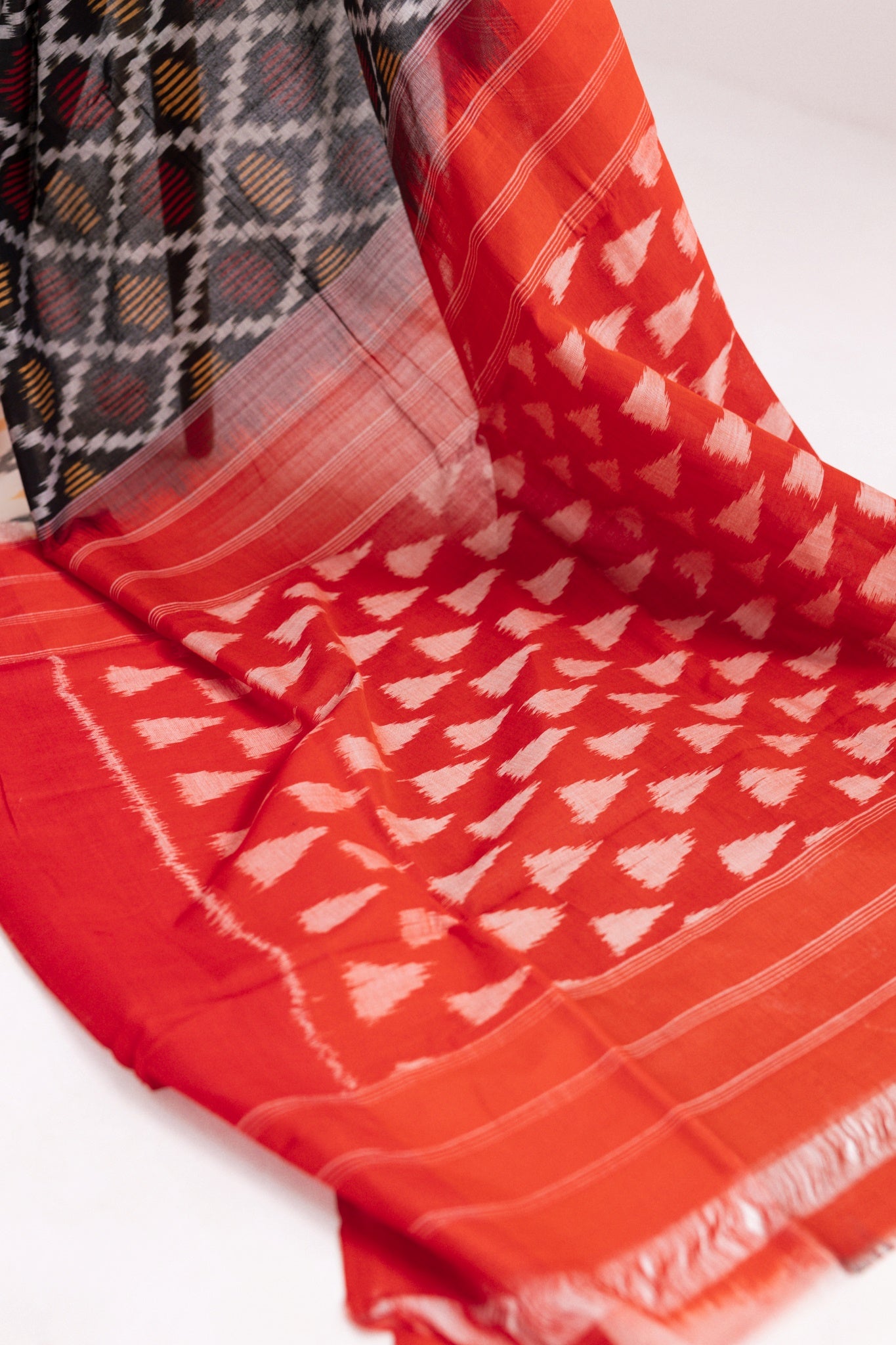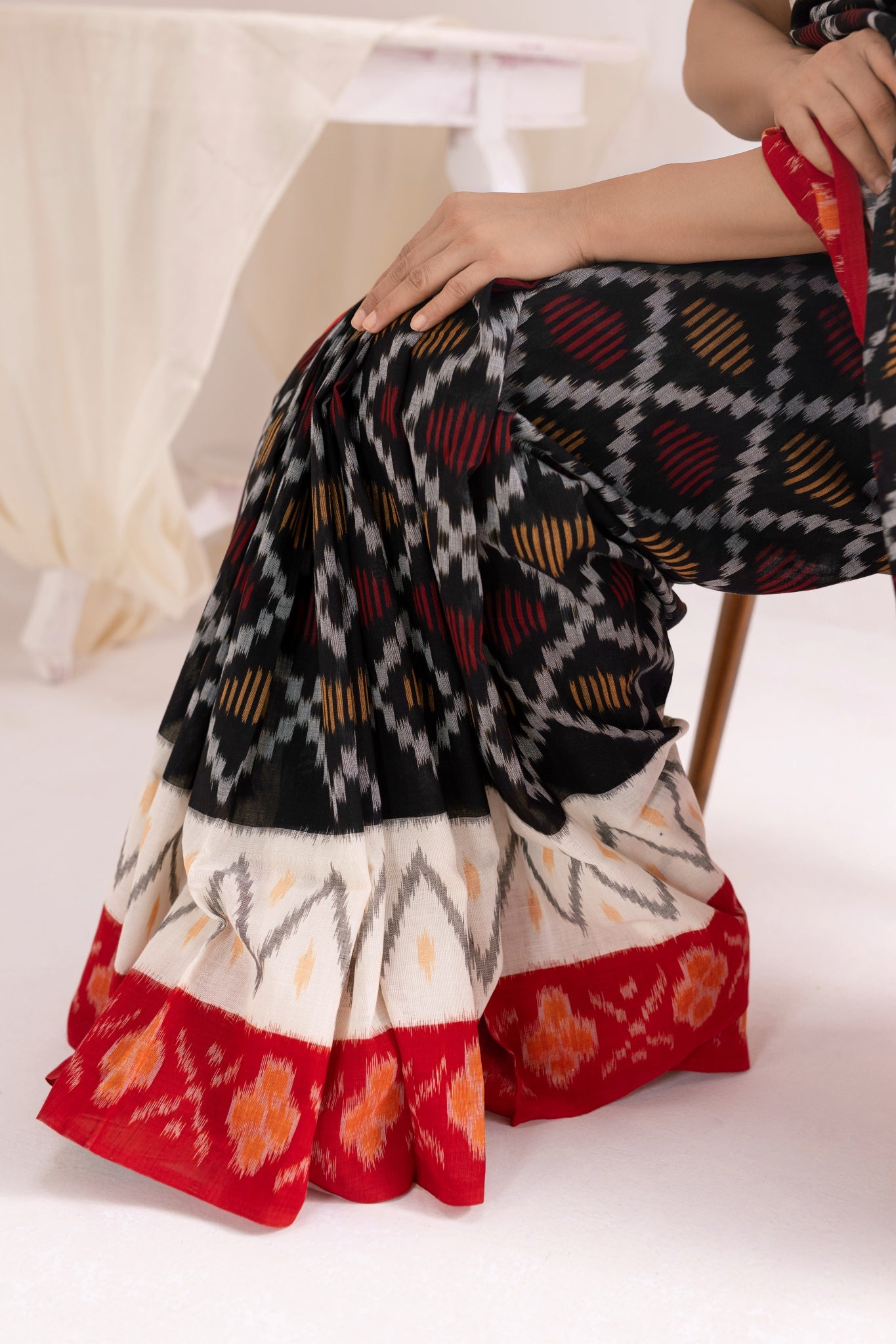 Pochampally Double Ikat Cotton Handloom Saree - Black/Red