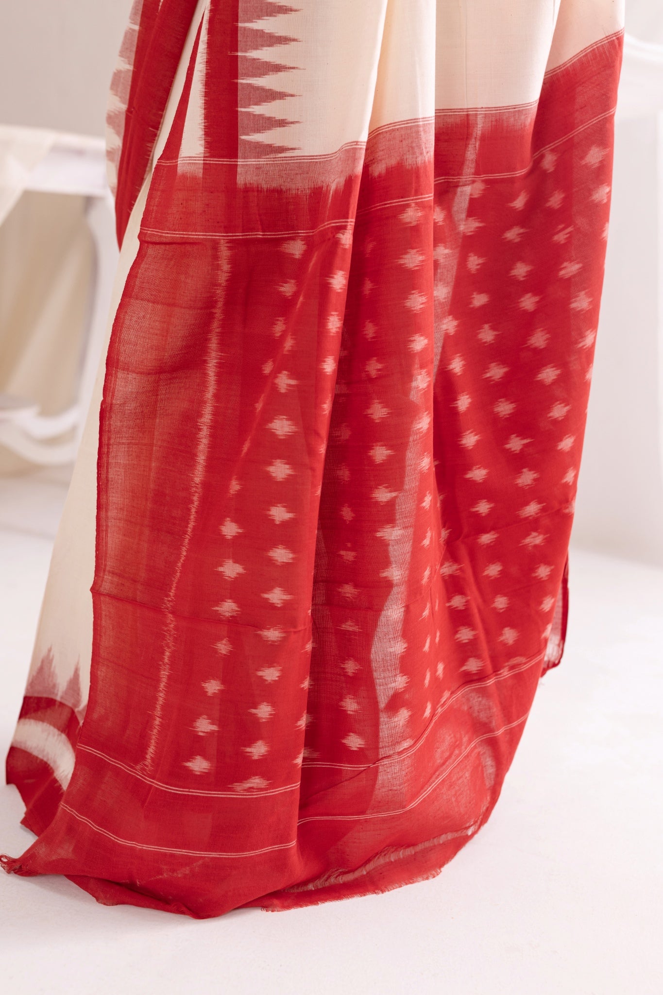 Pochampally Double Ikat Cotton Handloom Saree - White/Red
