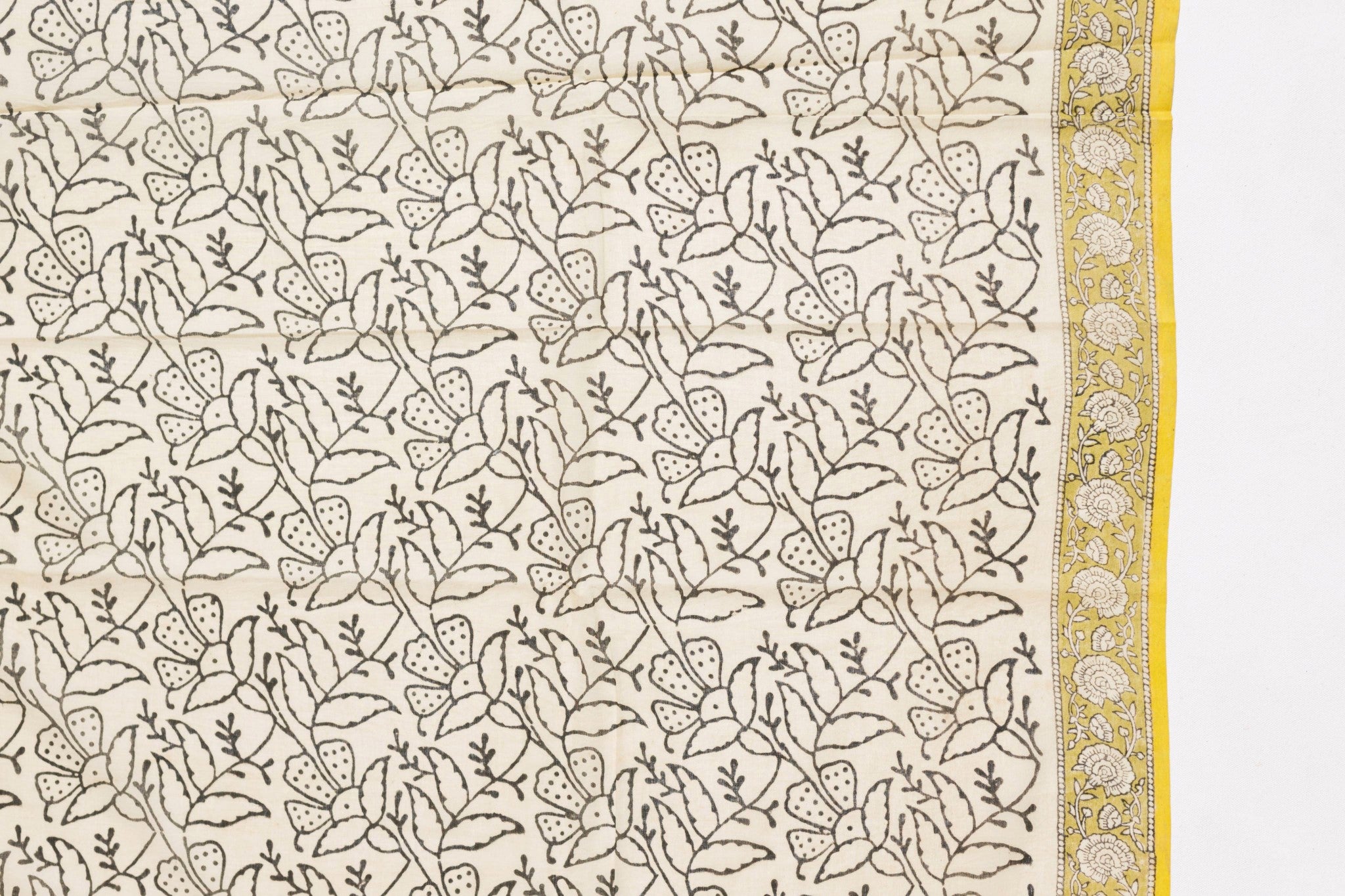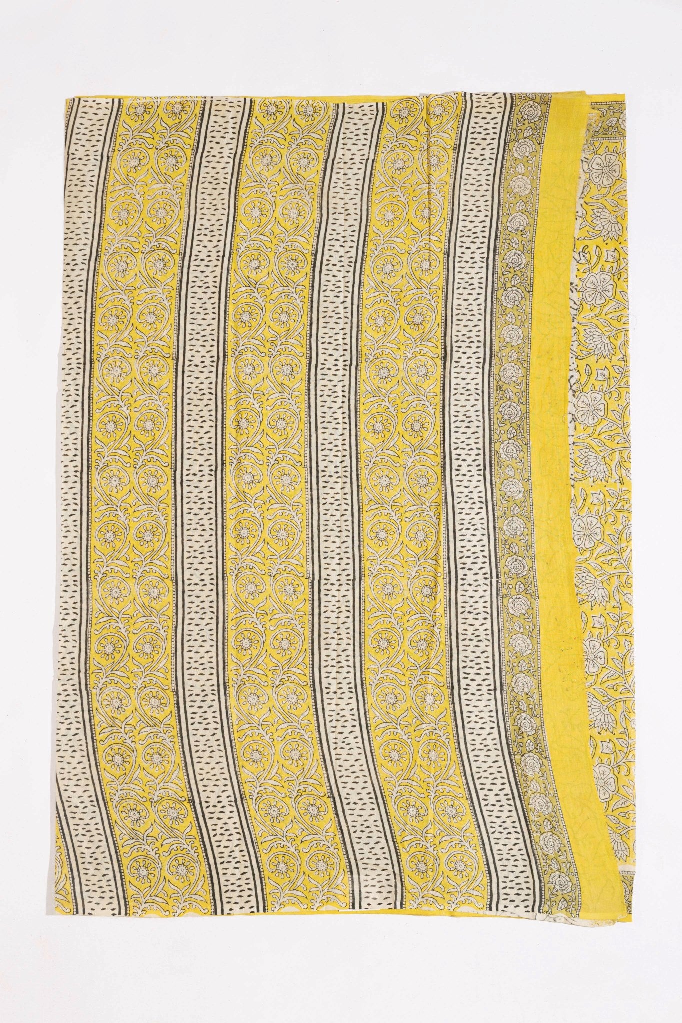 Lemon Yellow Pure Cotton Mul Hand Block Saree