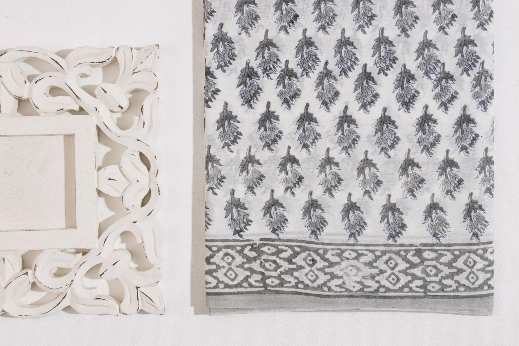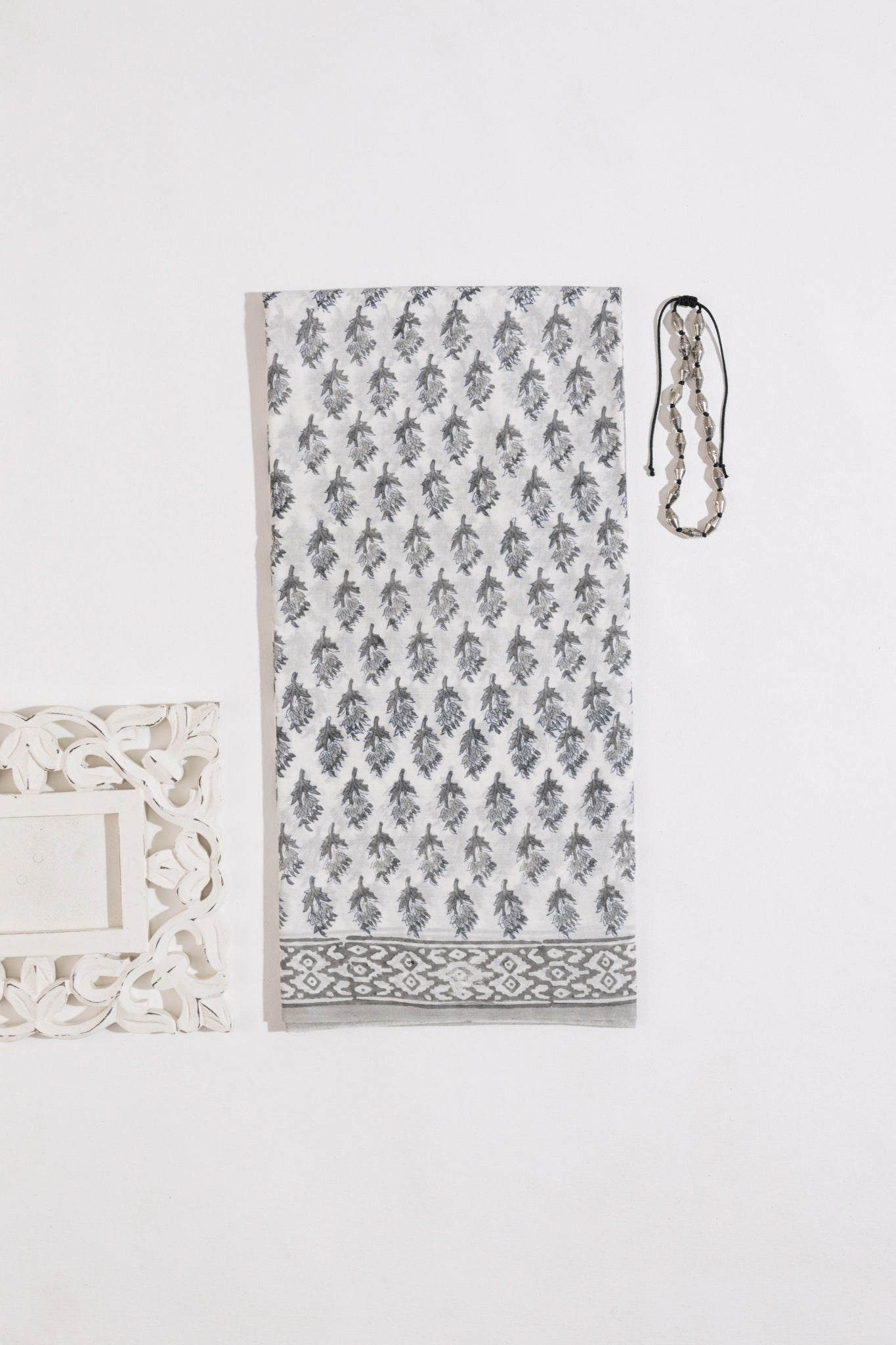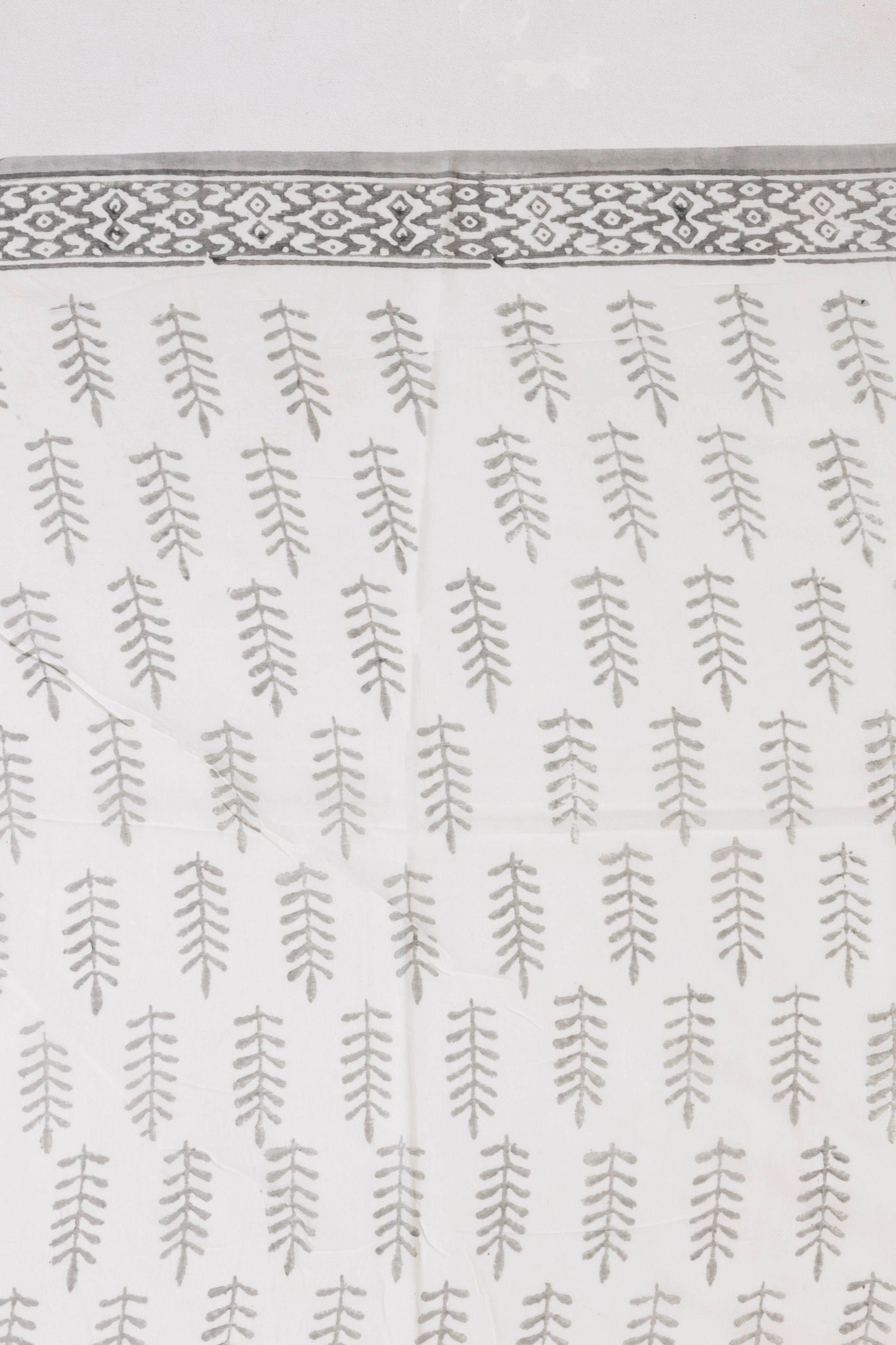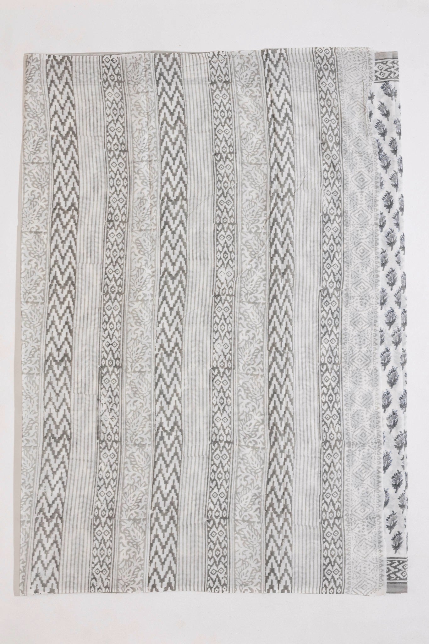 White/Grey Pure Cotton Mul Hand Block Saree