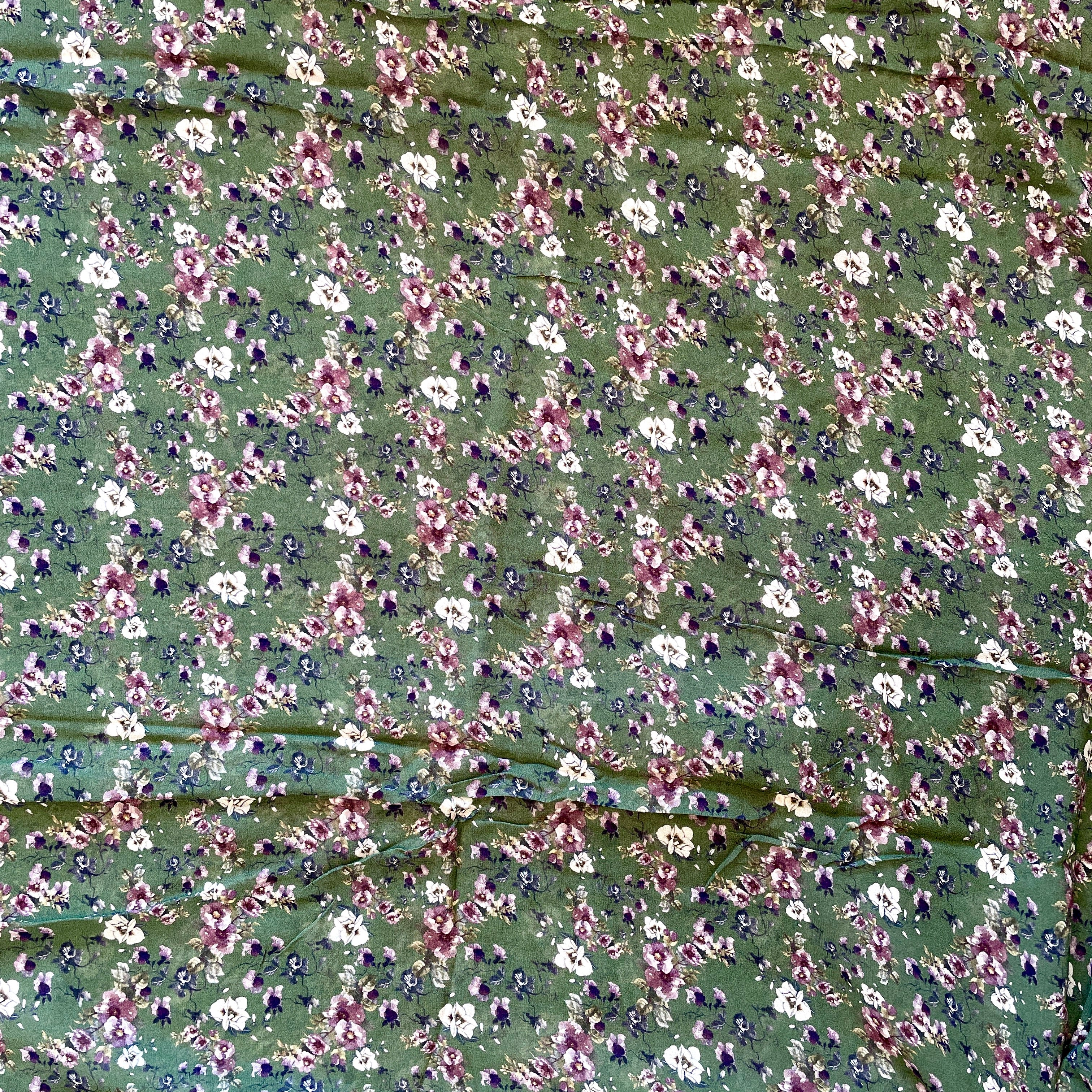 Pure Georgette Printed Fabric - Green/Purple - Floral