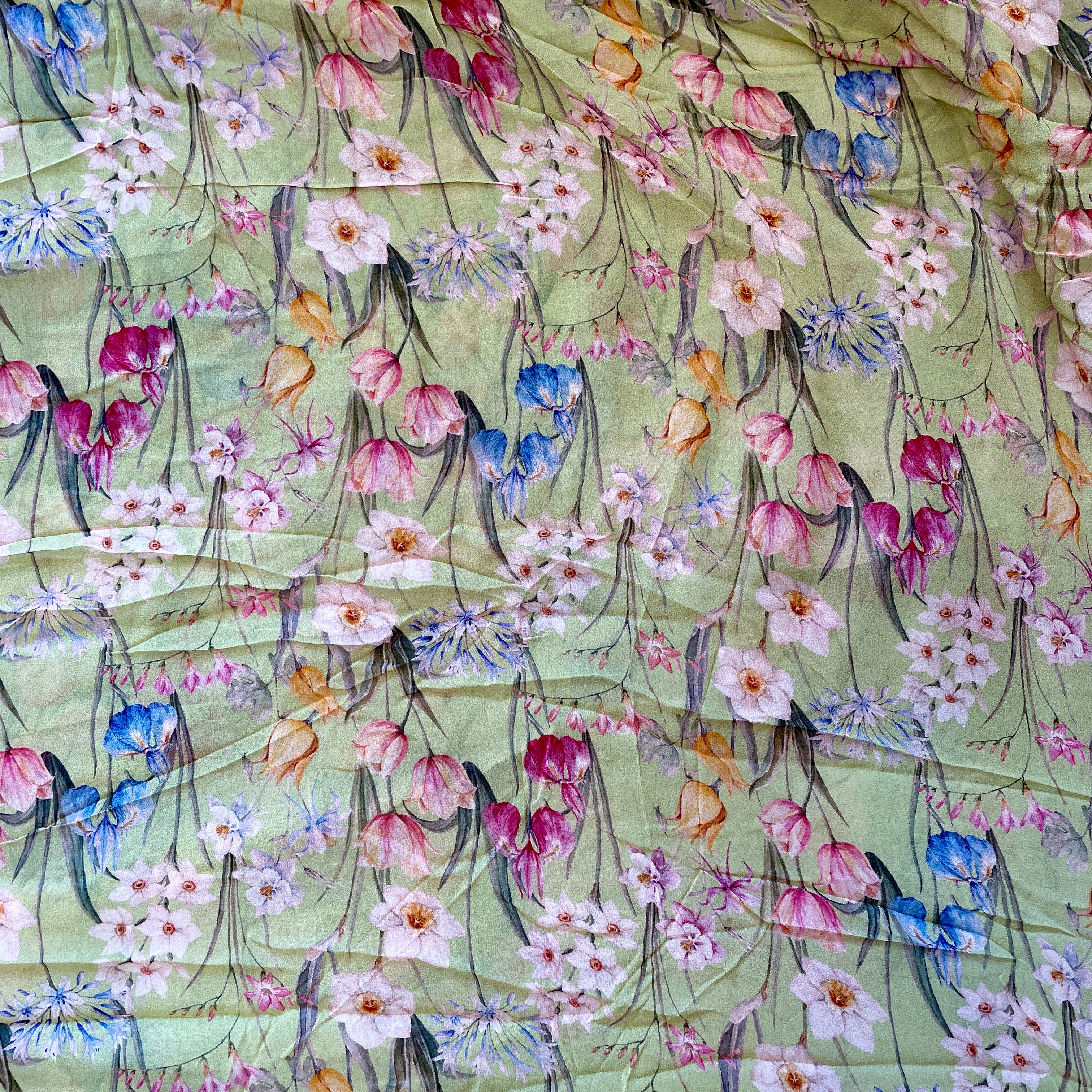 Pure Georgette Printed Fabric - Multicolor - Floral