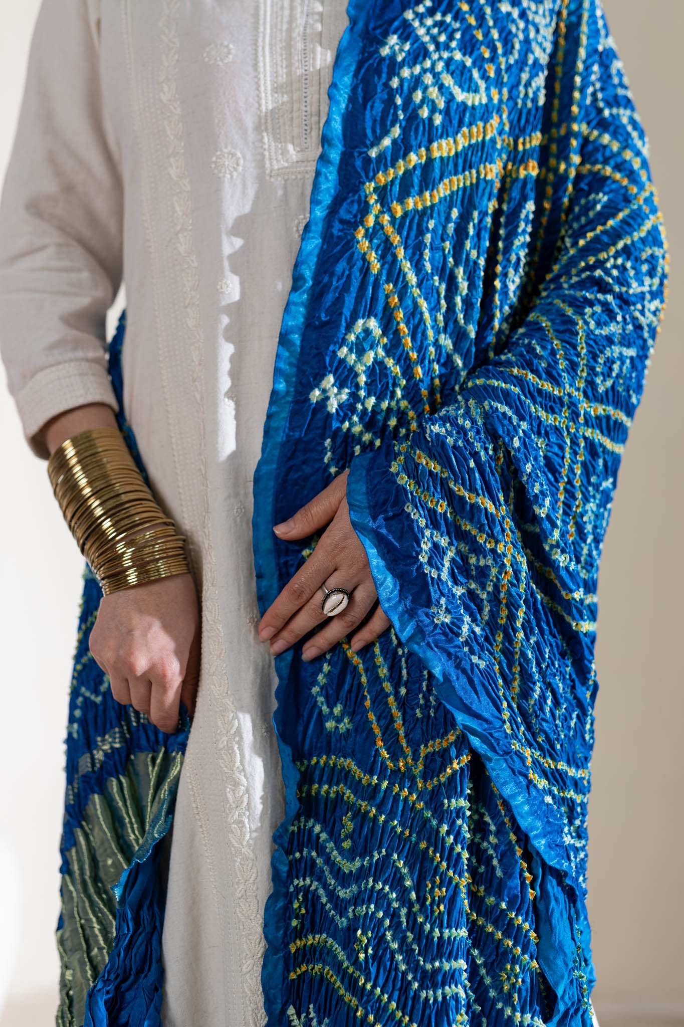 We are very very happy to preserve this Blue Bandhani Silk Dupatta in our prized Collection. Loving regards.