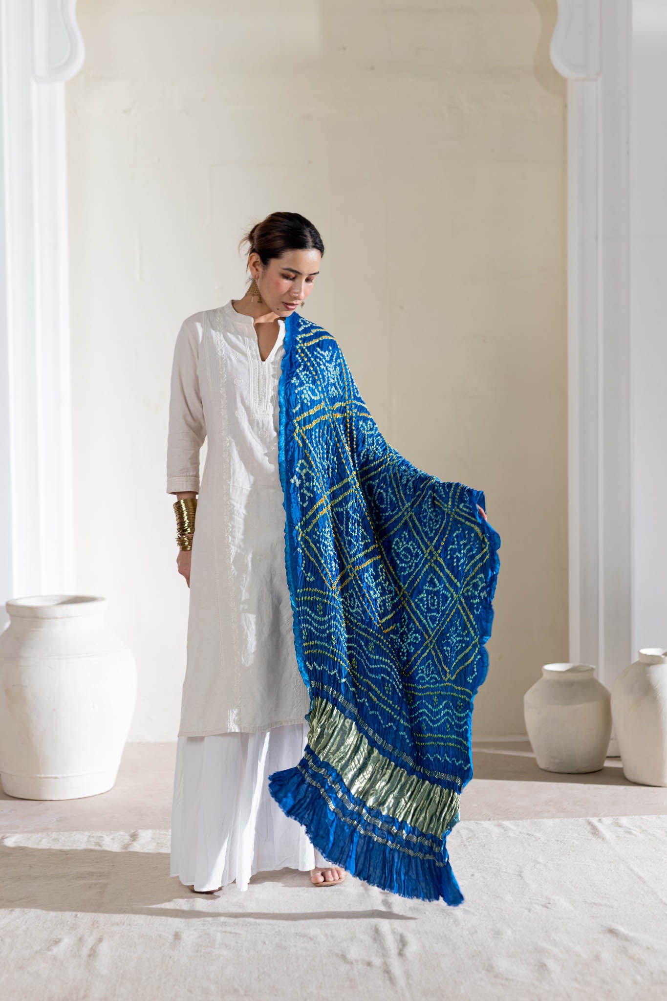 Blue - Pure Modal Silk Bandhani Barbag Dupatta with Zari Lagdi Patta