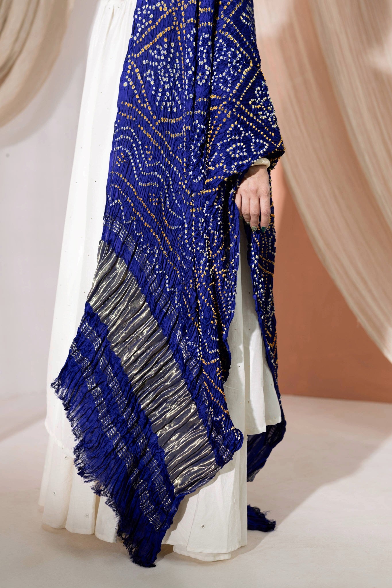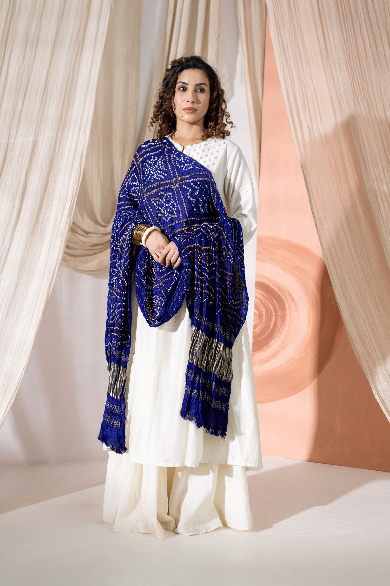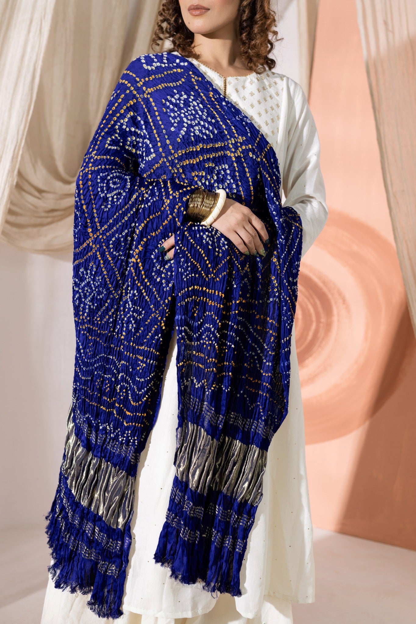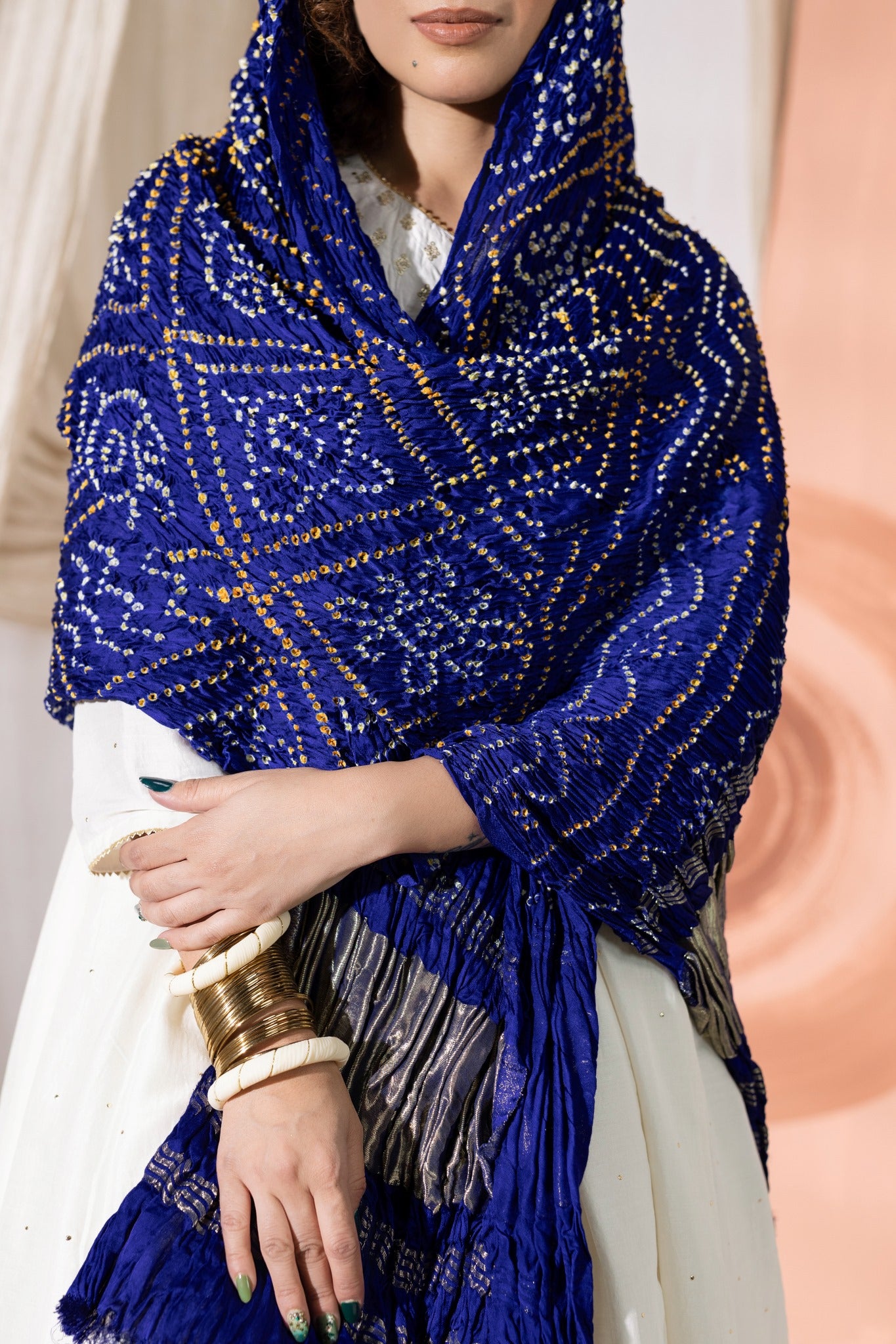 Royal Blue - Pure Modal Silk Bandhani Barbag Dupatta with Zari Lagdi Patta