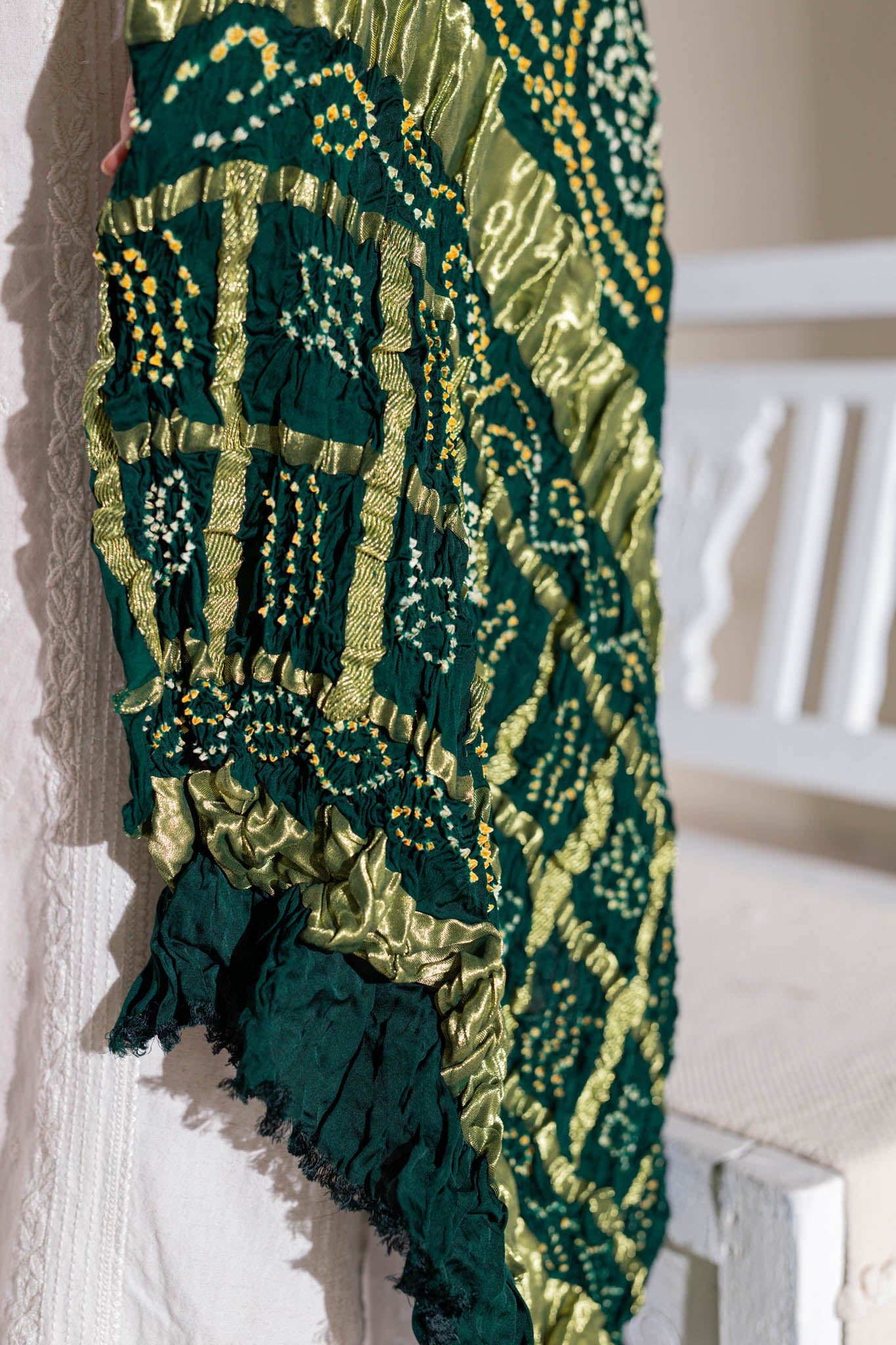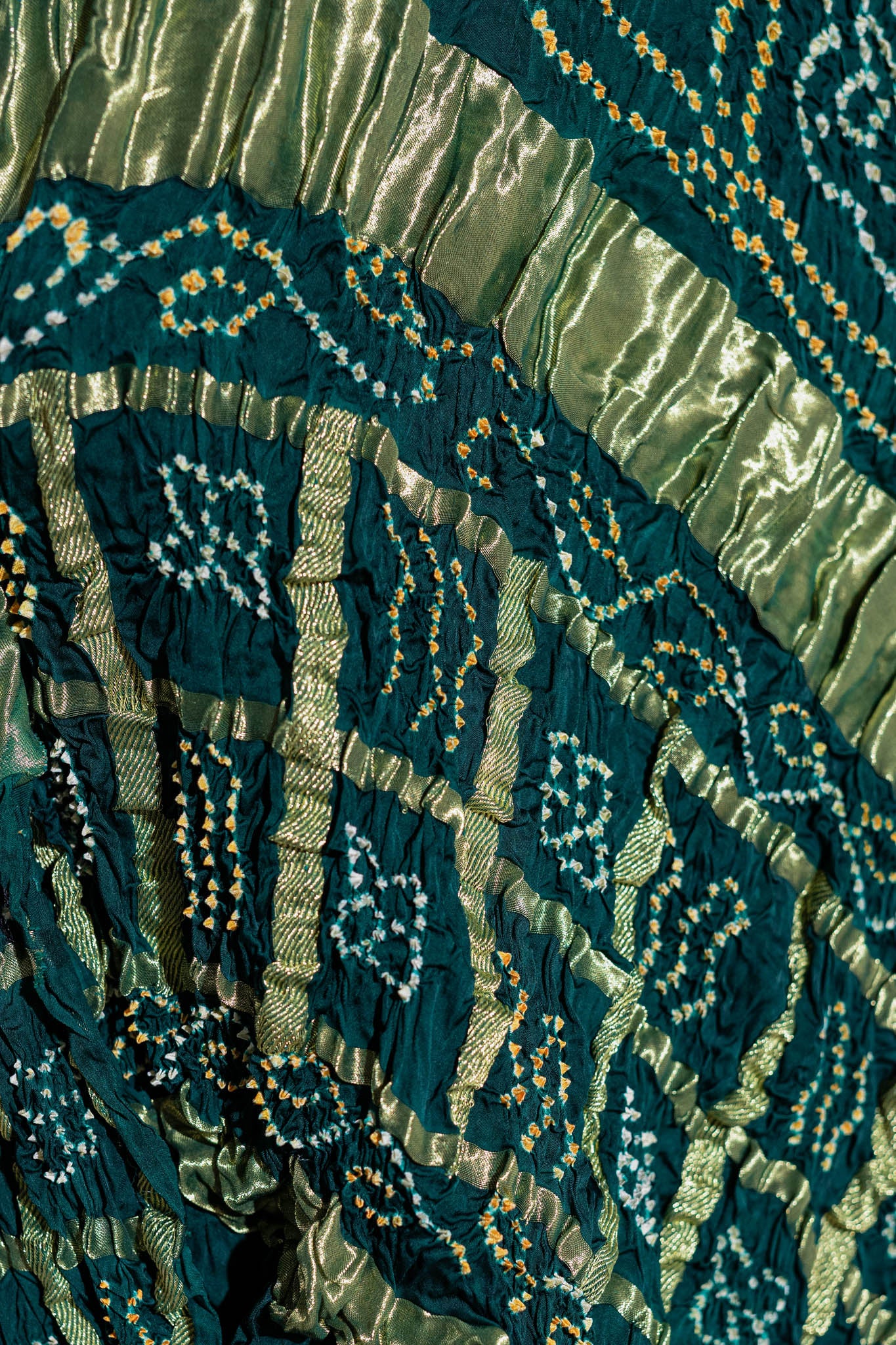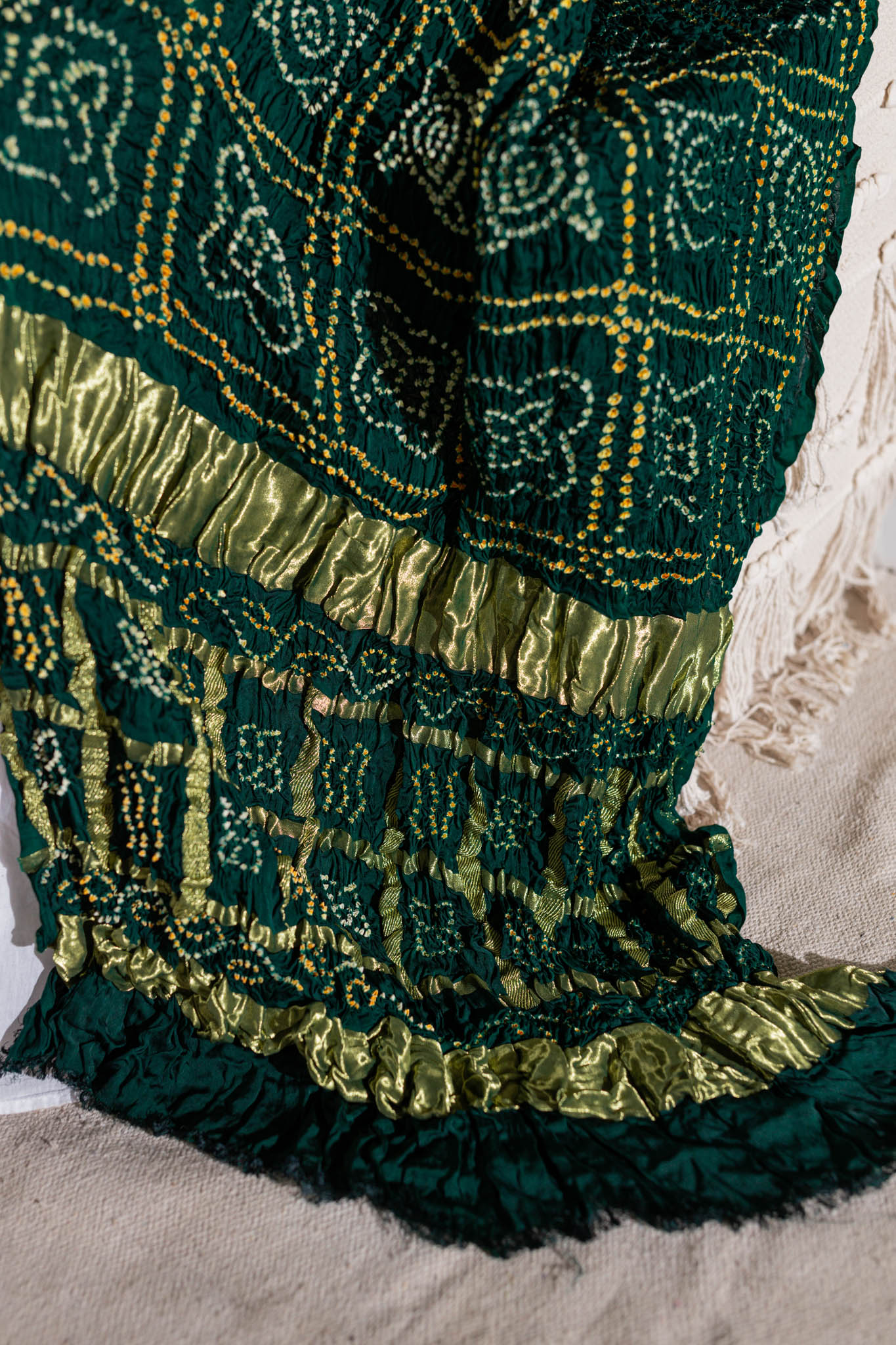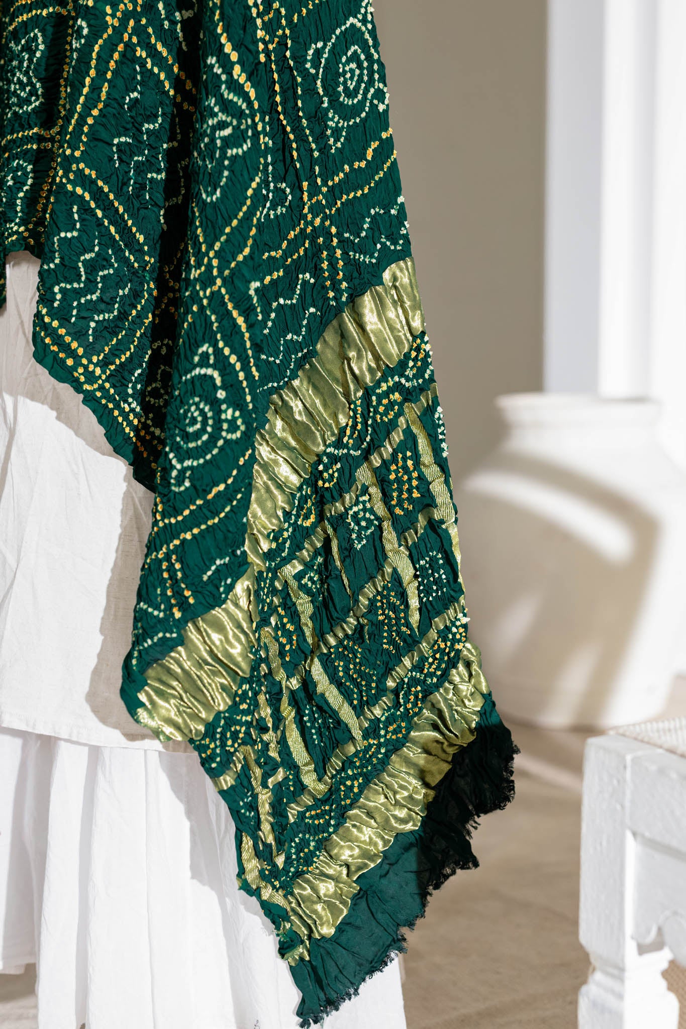 Bottle Green - Pure Modal Silk Bandhani Checks Pallu Dupatta with Zari Lagdi Patta