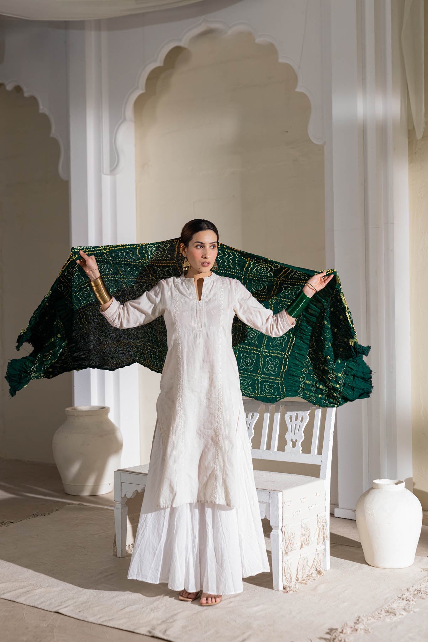 Gentle Hand Wash in Cold Water Separately as Hand Block, Hand Tye & Dye tends to Bleed a little in first & Second wash & Silk Dry Clean Only, Bandhani Dupatta's color may Bleed.