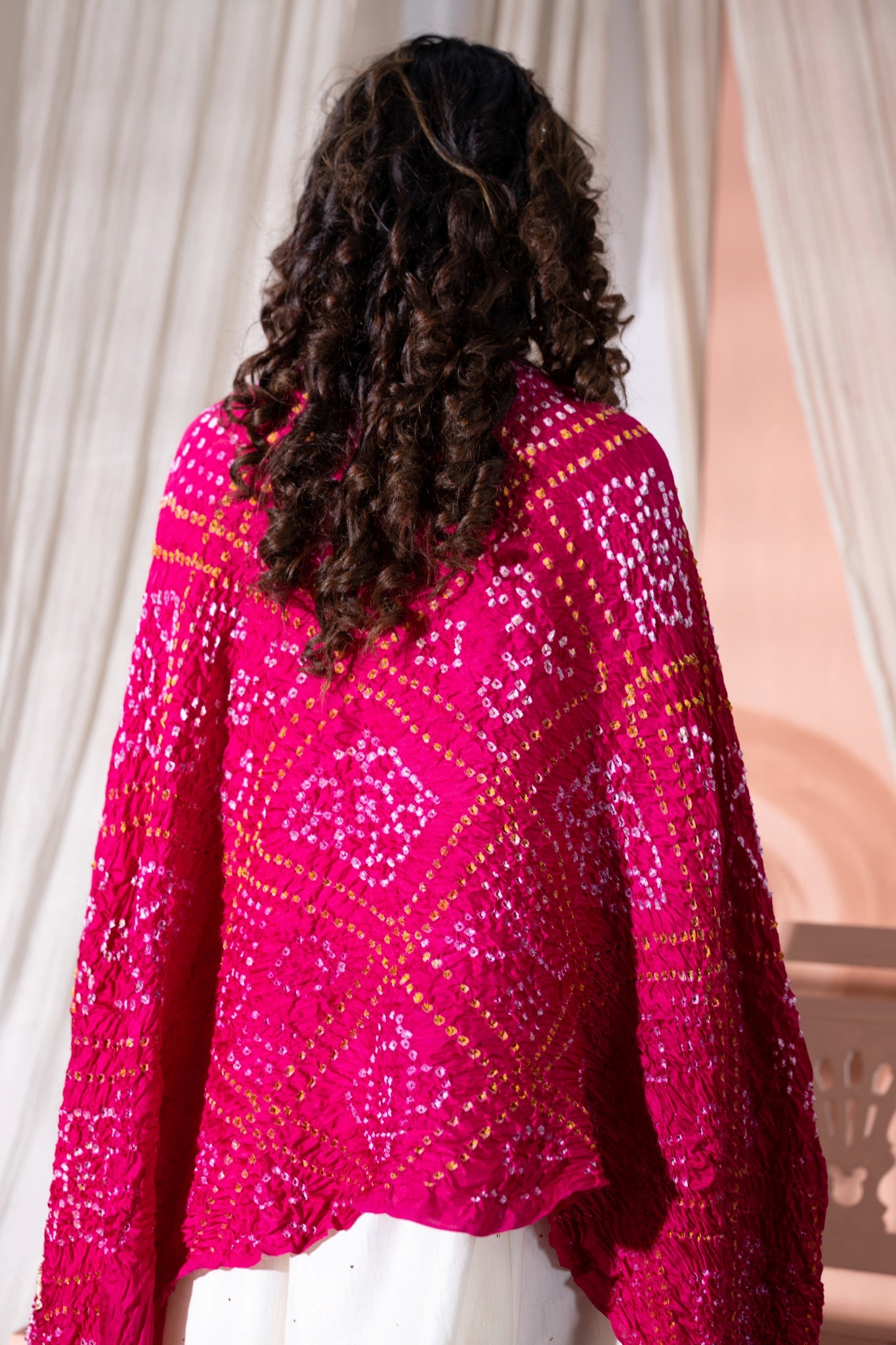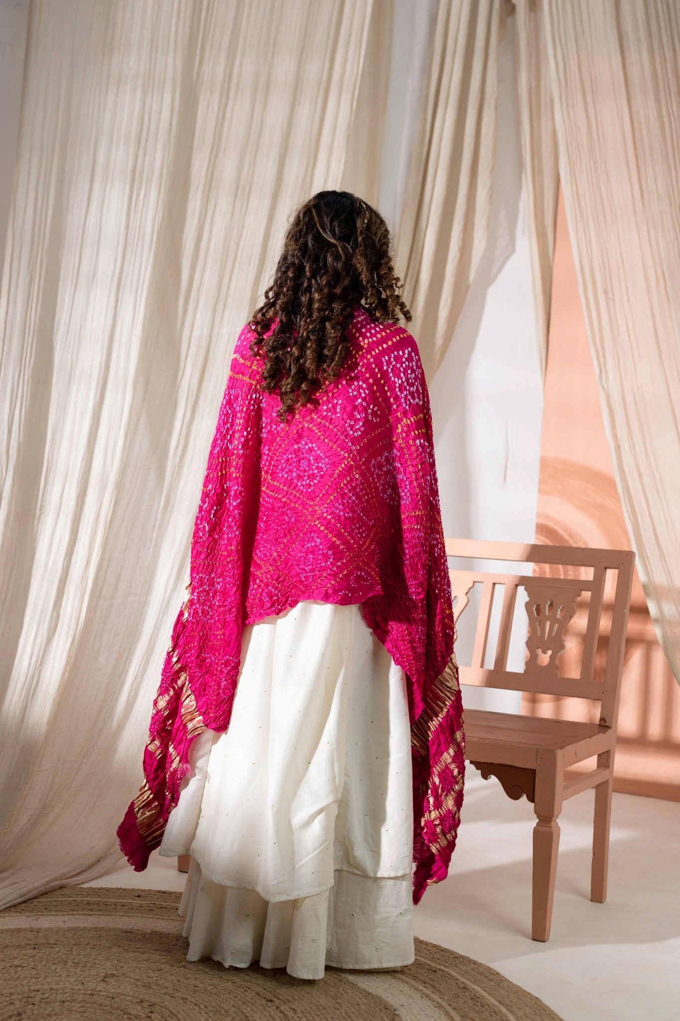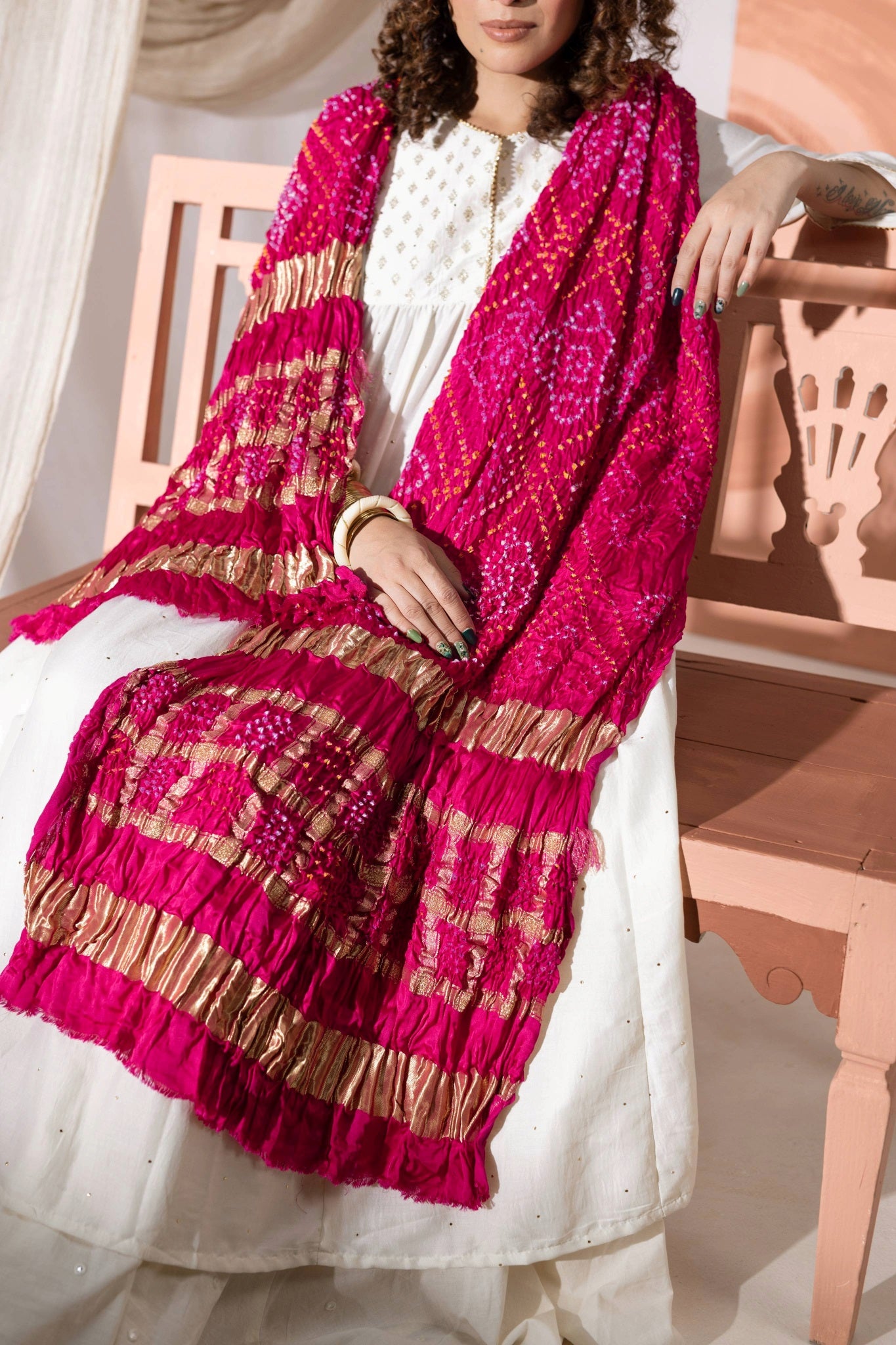 Maharani Pink - Pure Modal Silk Bandhani Checks Pallu Dupatta with Zari Lagdi Patta