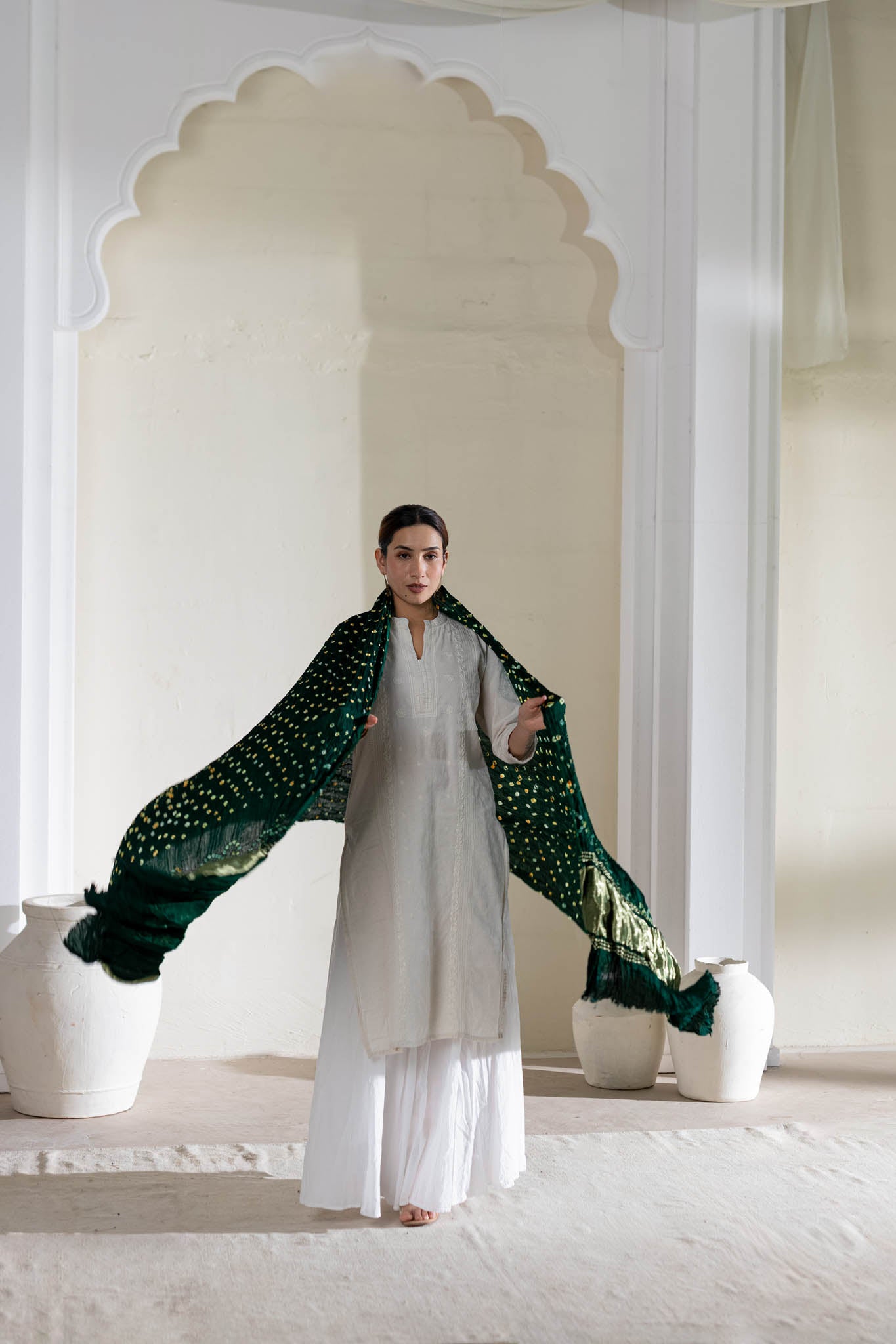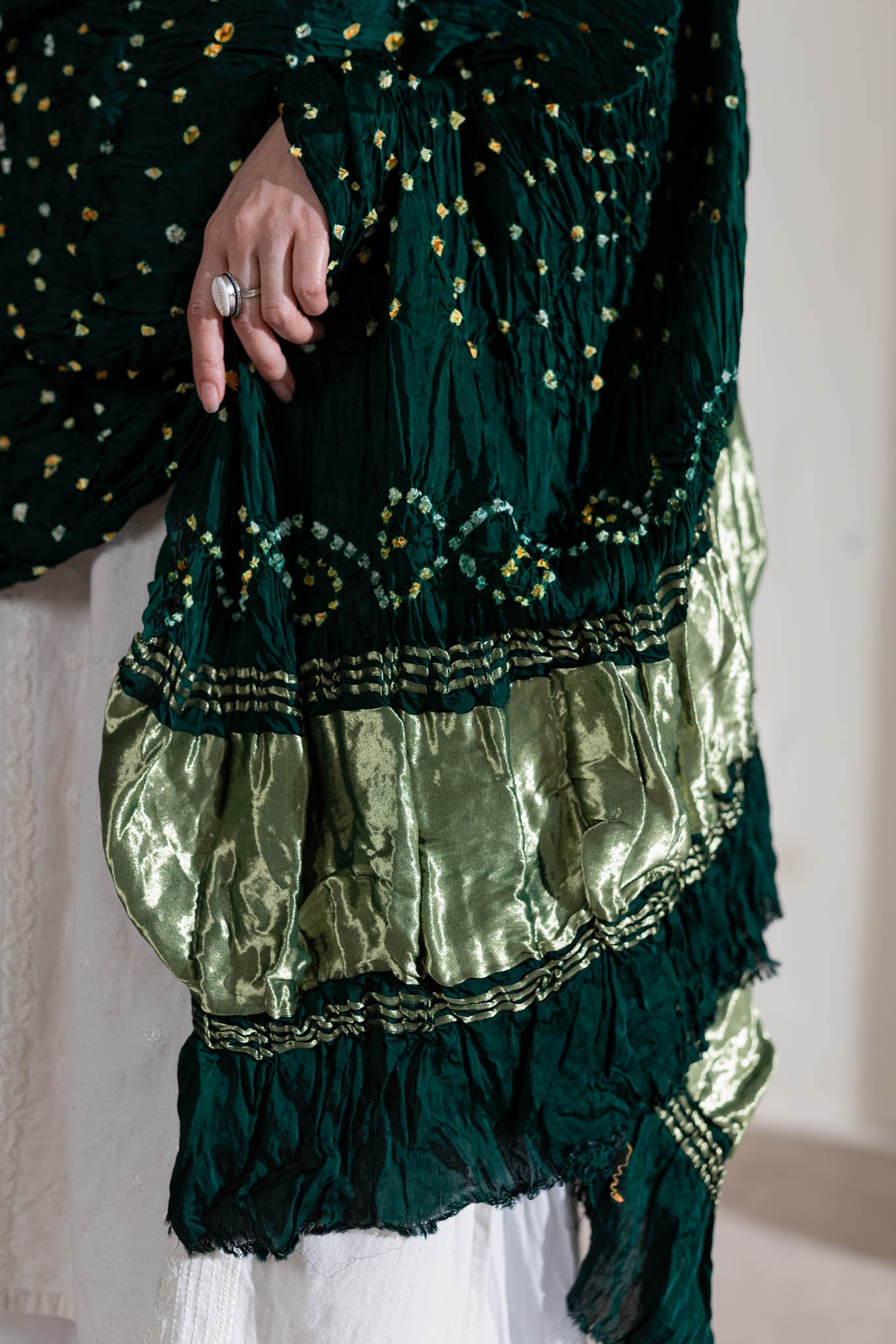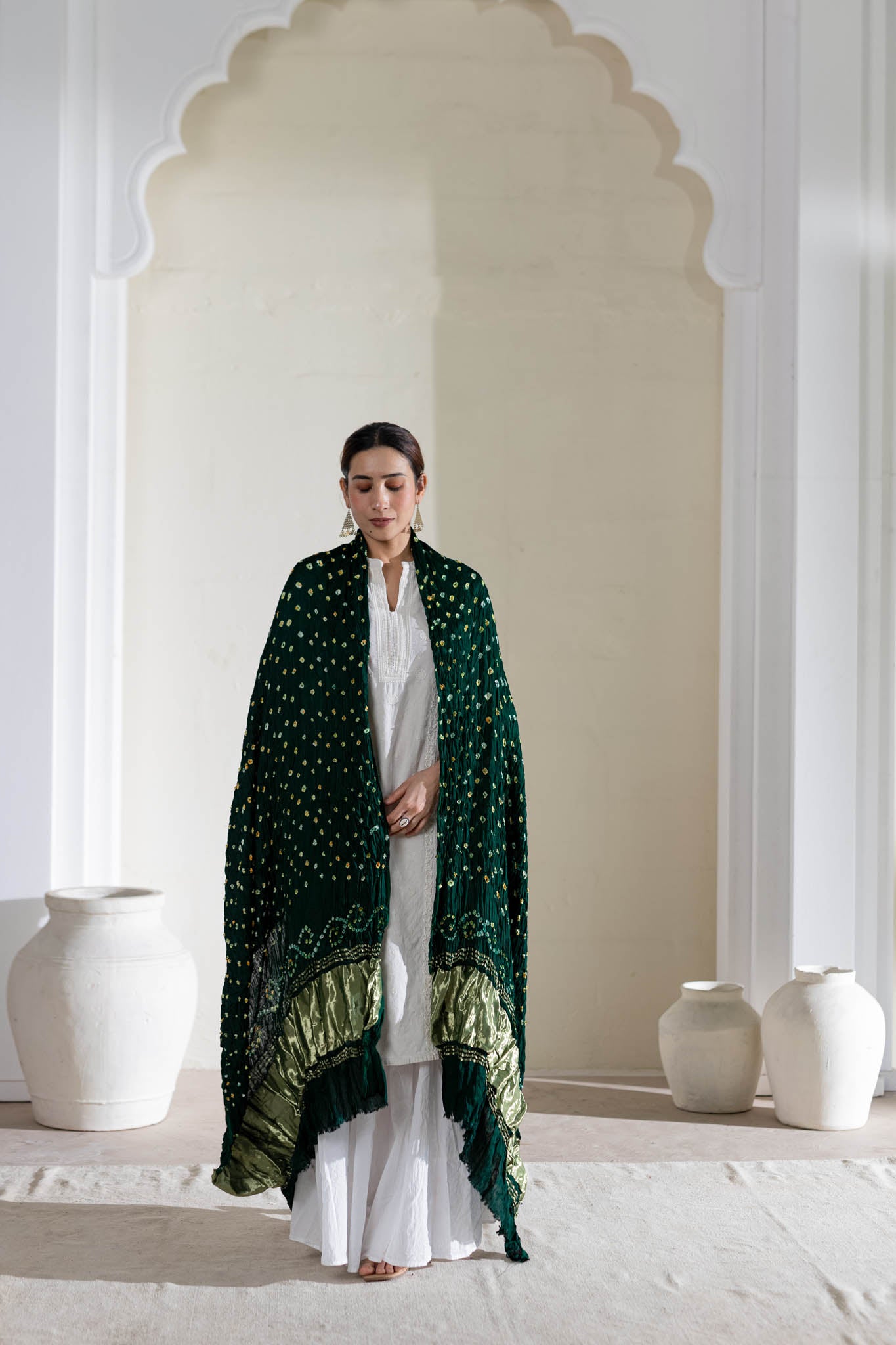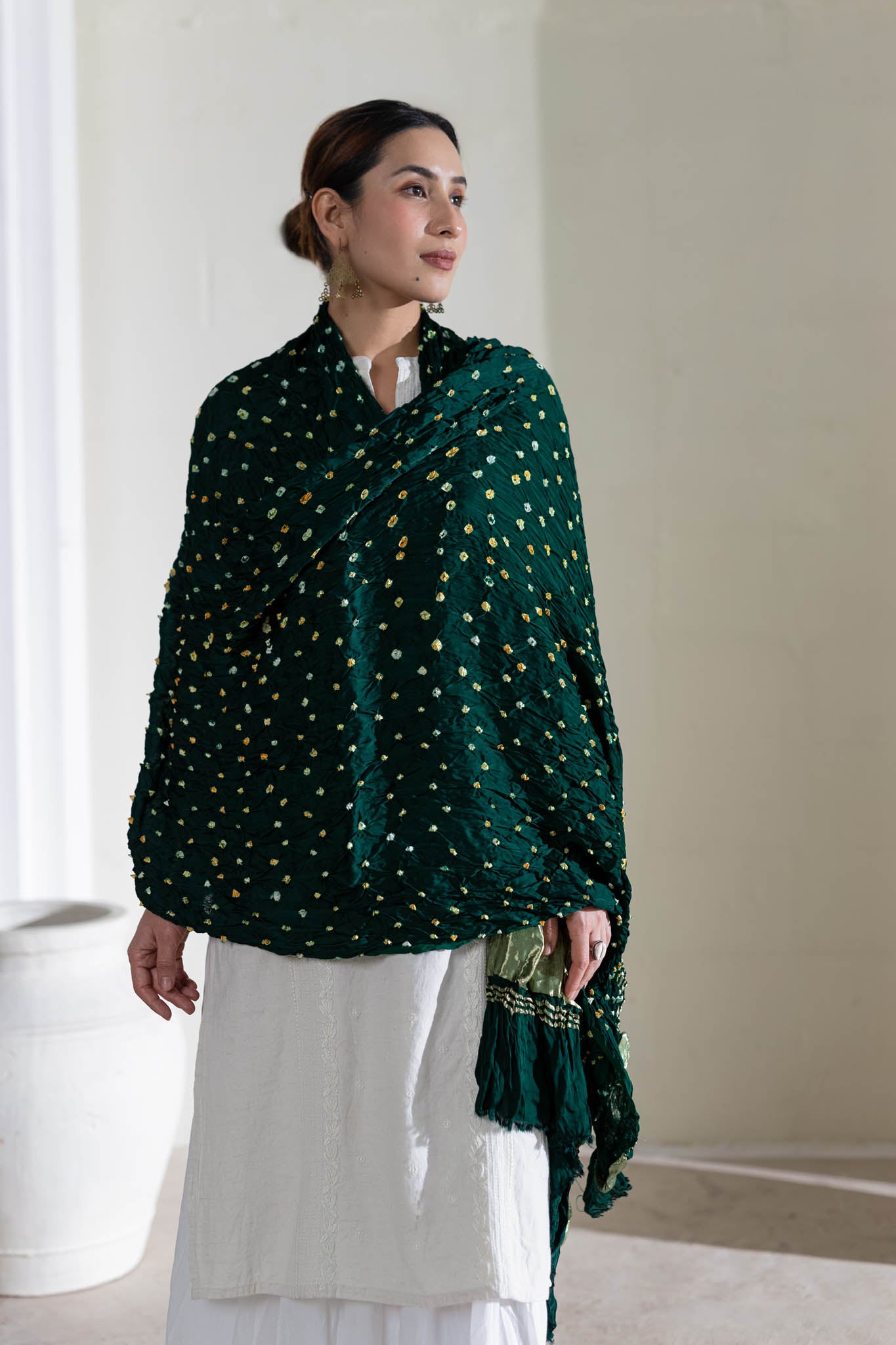 Bottle Green - Pure Modal Silk Bandhani Dani Dupatta with Zari Lagdi Patta