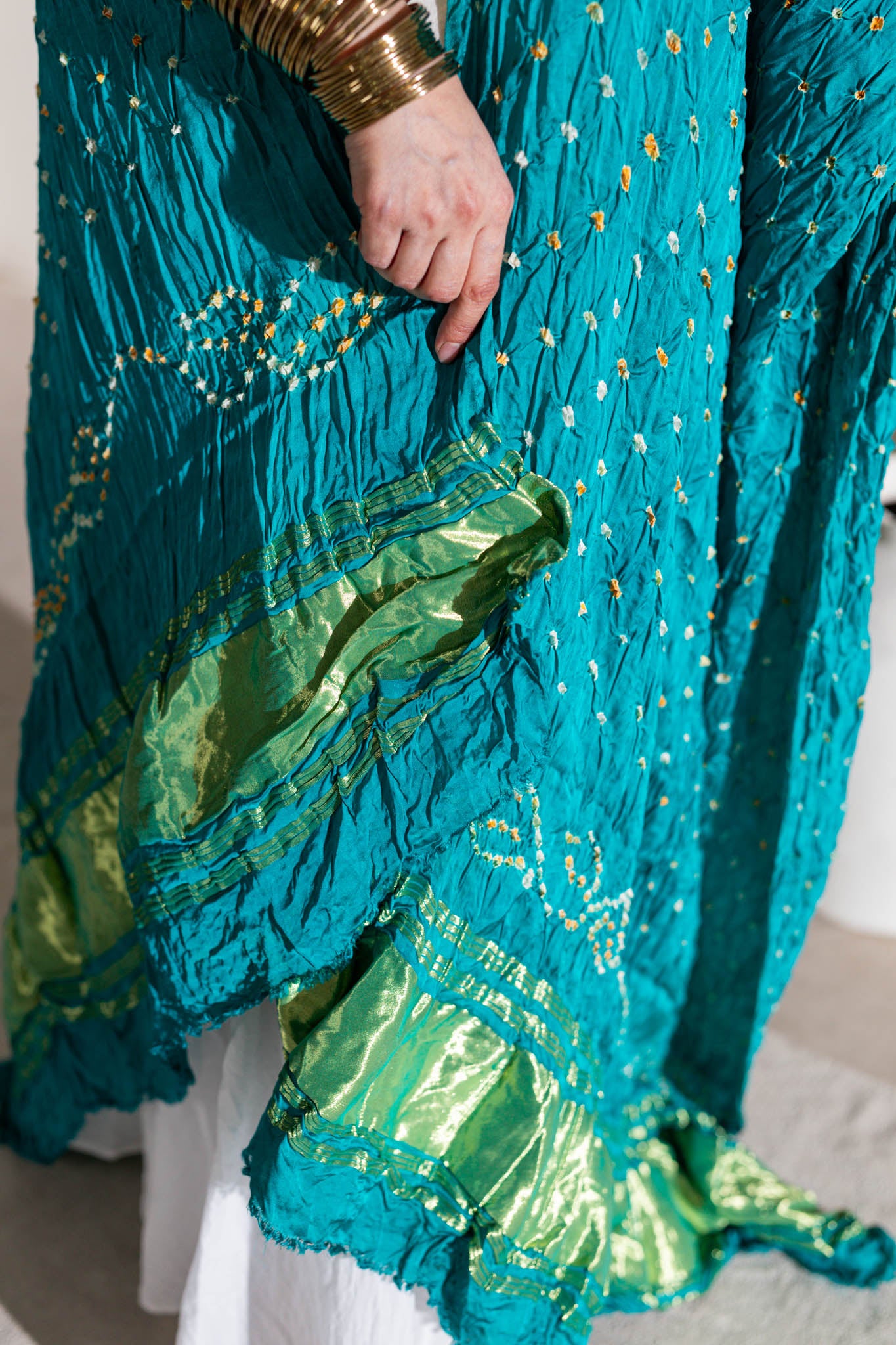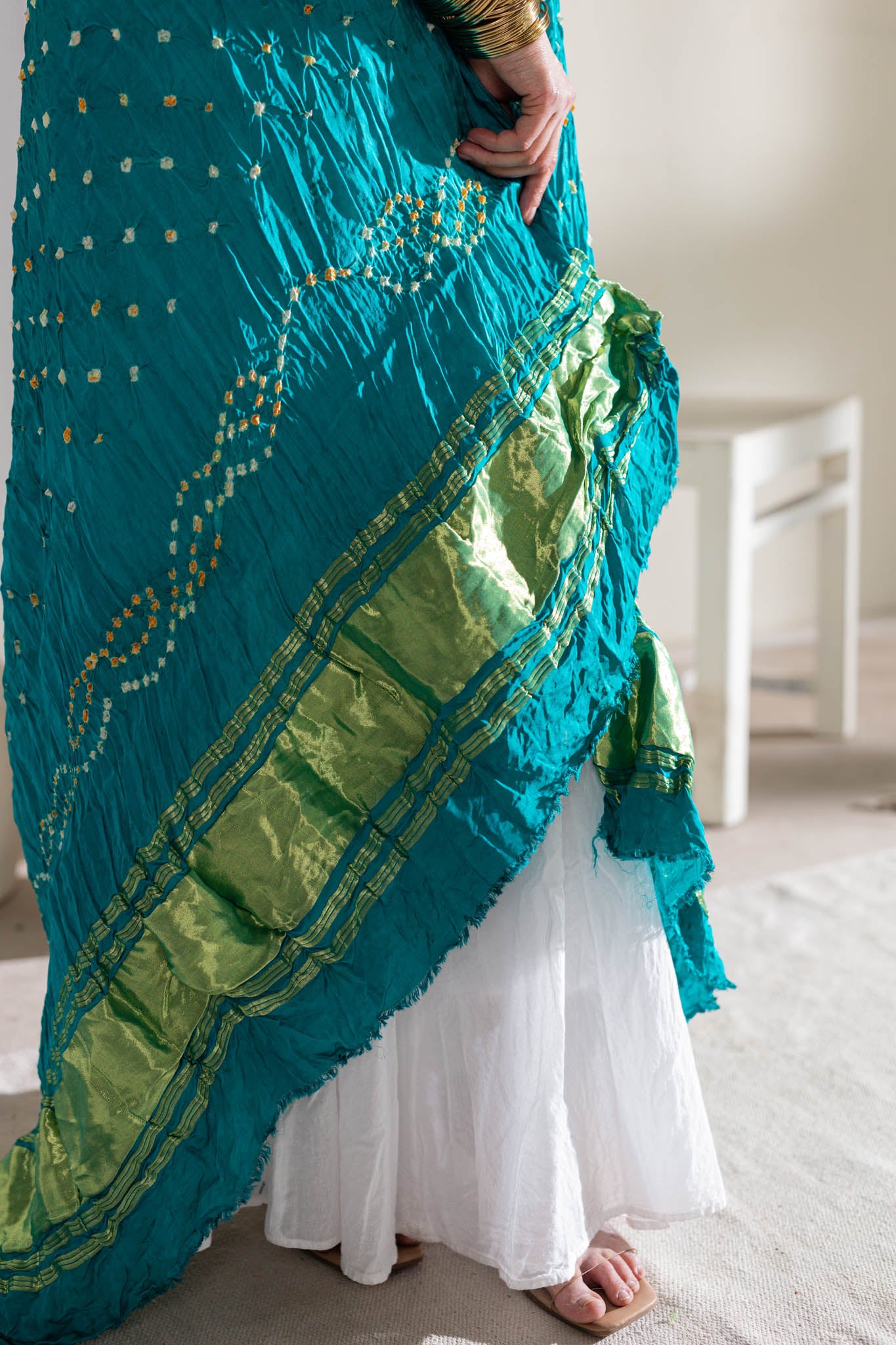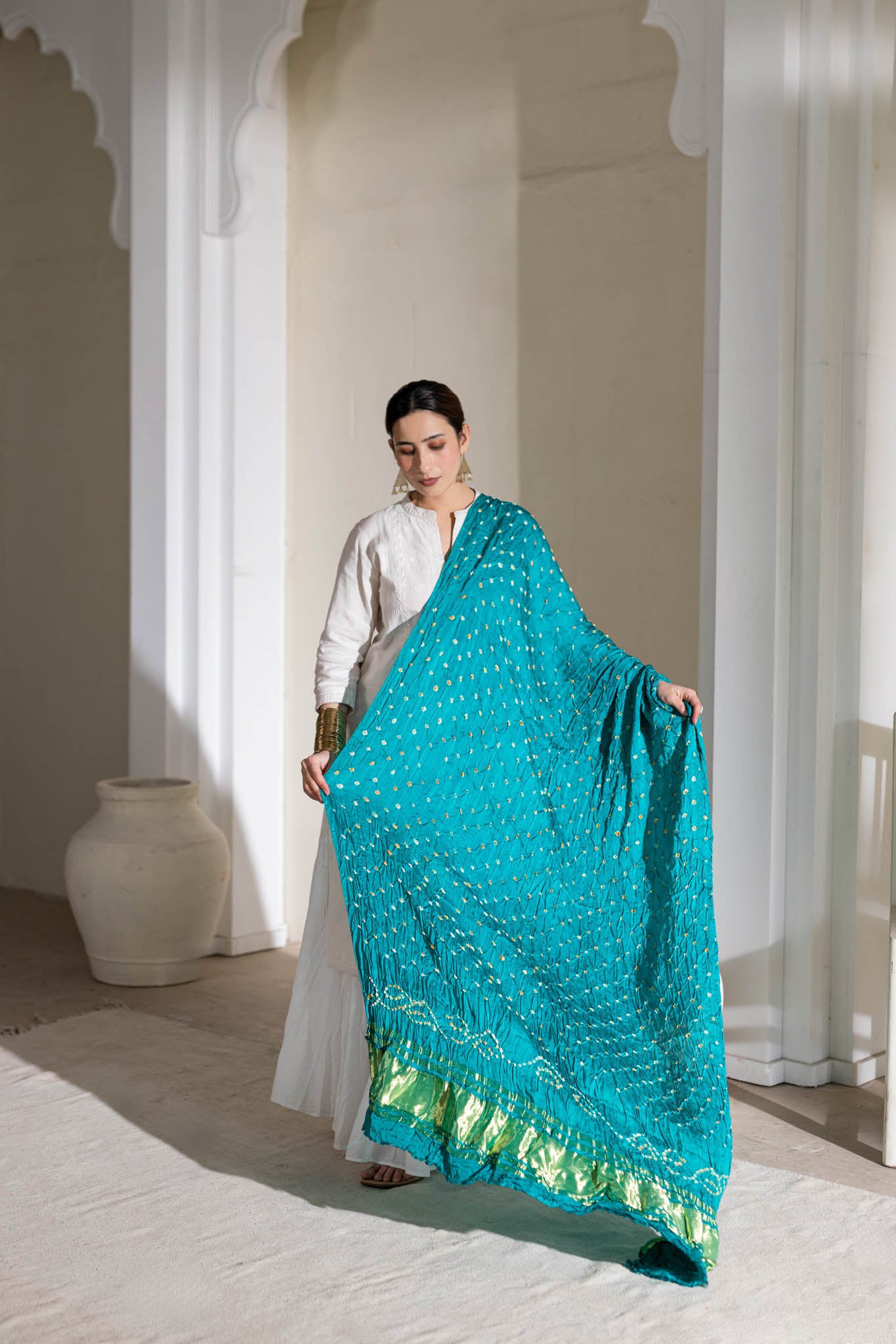 Rama Green - Pure Modal Silk Bandhani Dani Dupatta with Zari Lagdi Patta
