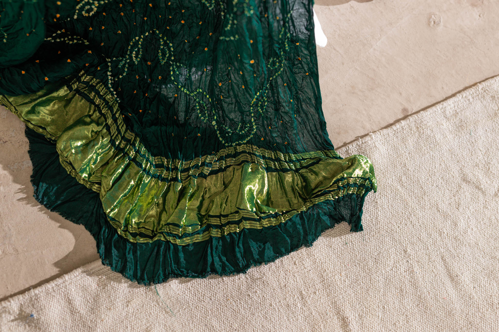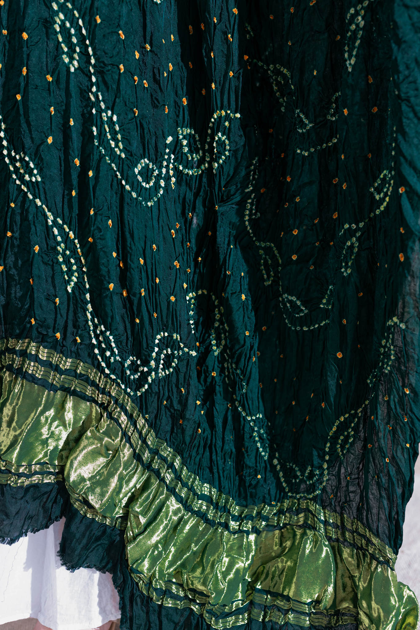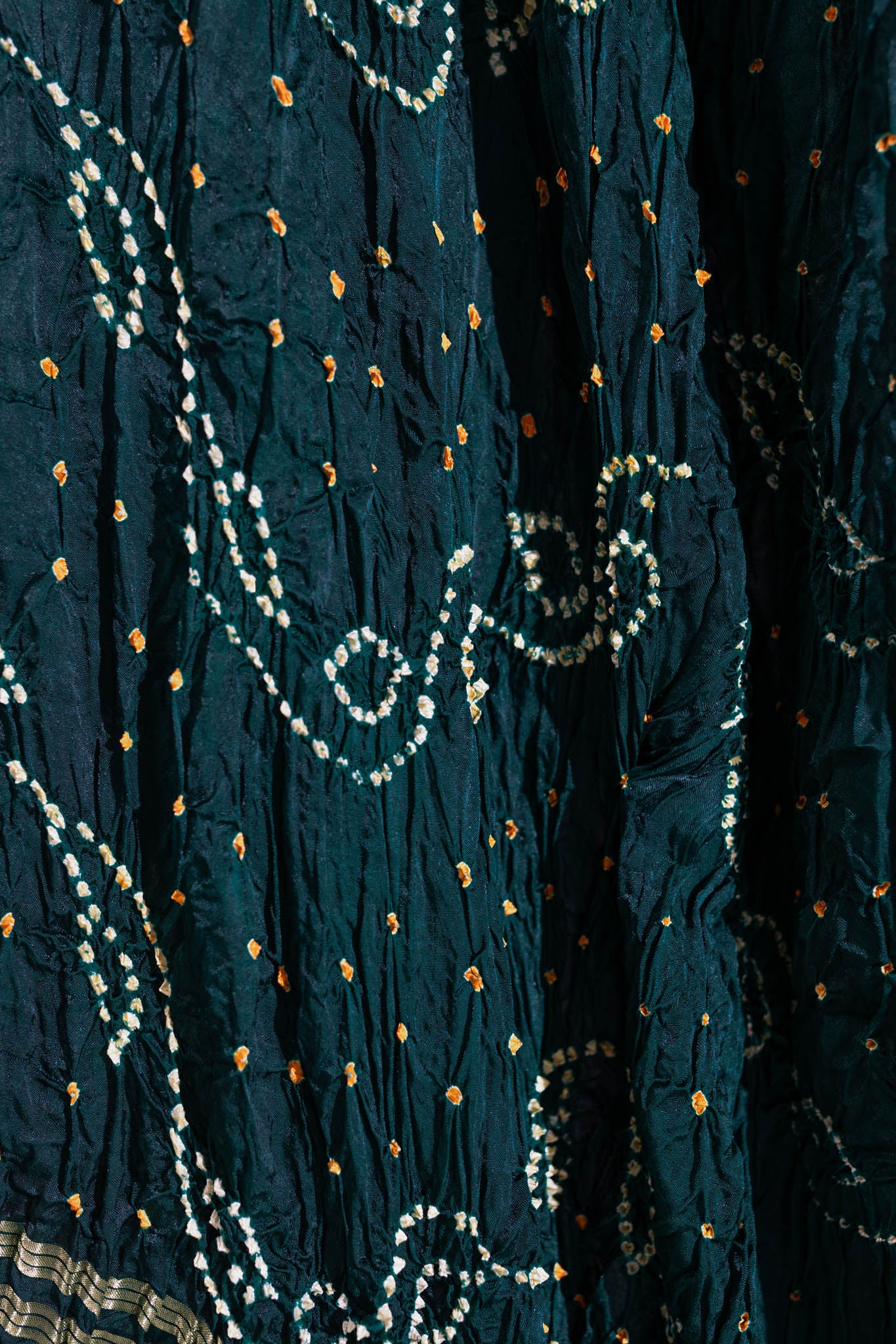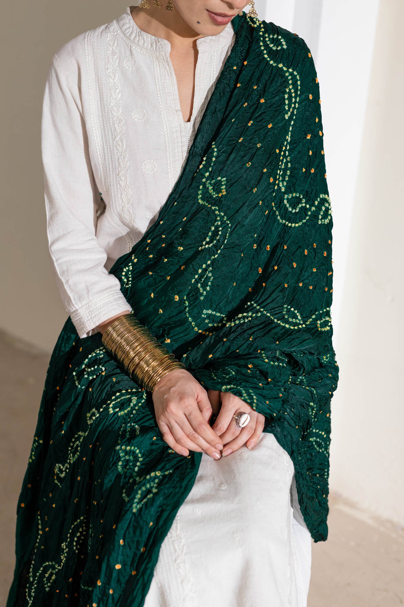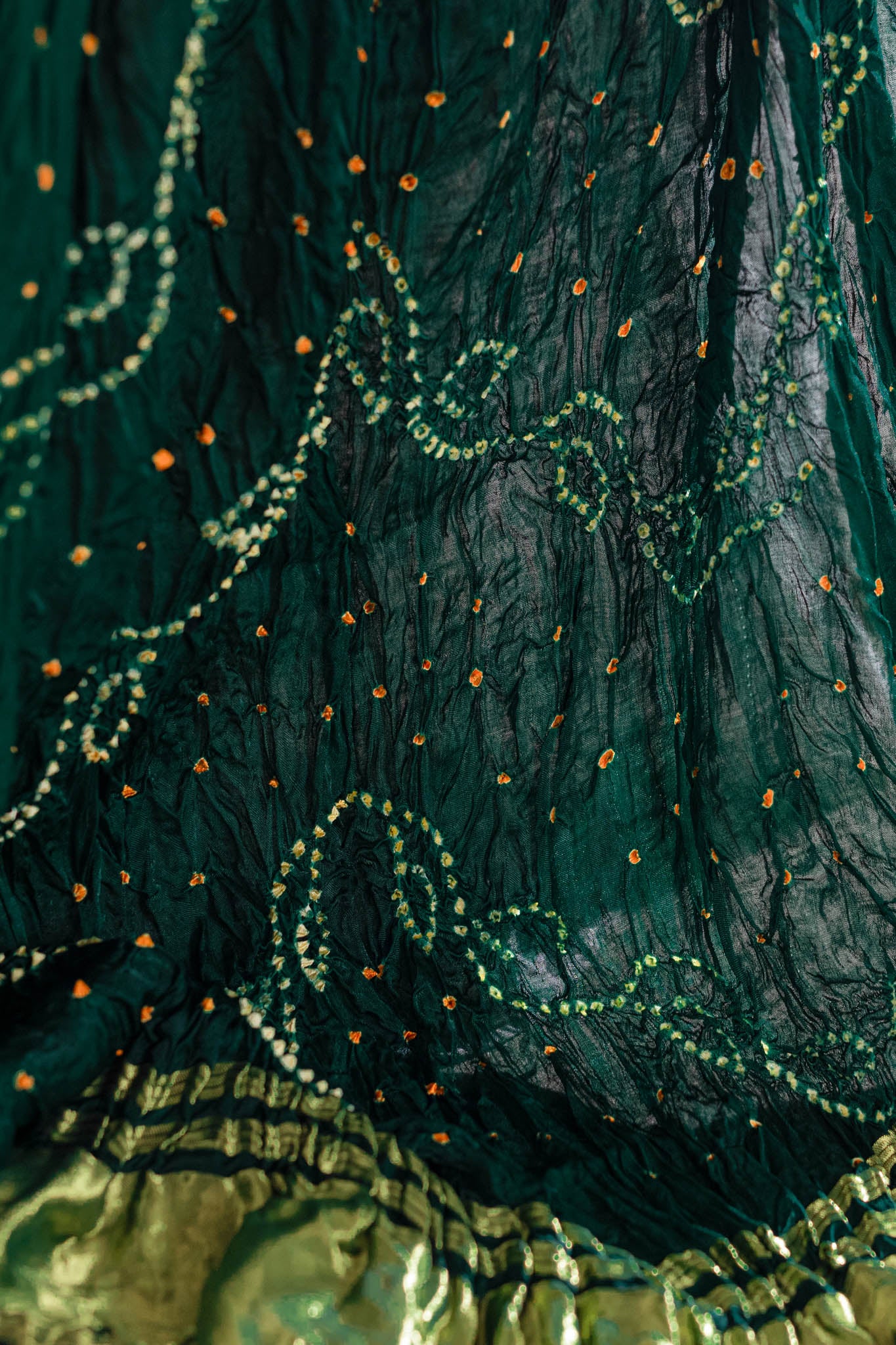 Bottle Green - Pure Modal Silk Lehriya Bandhani Dupatta with Zari Lagdi Patta