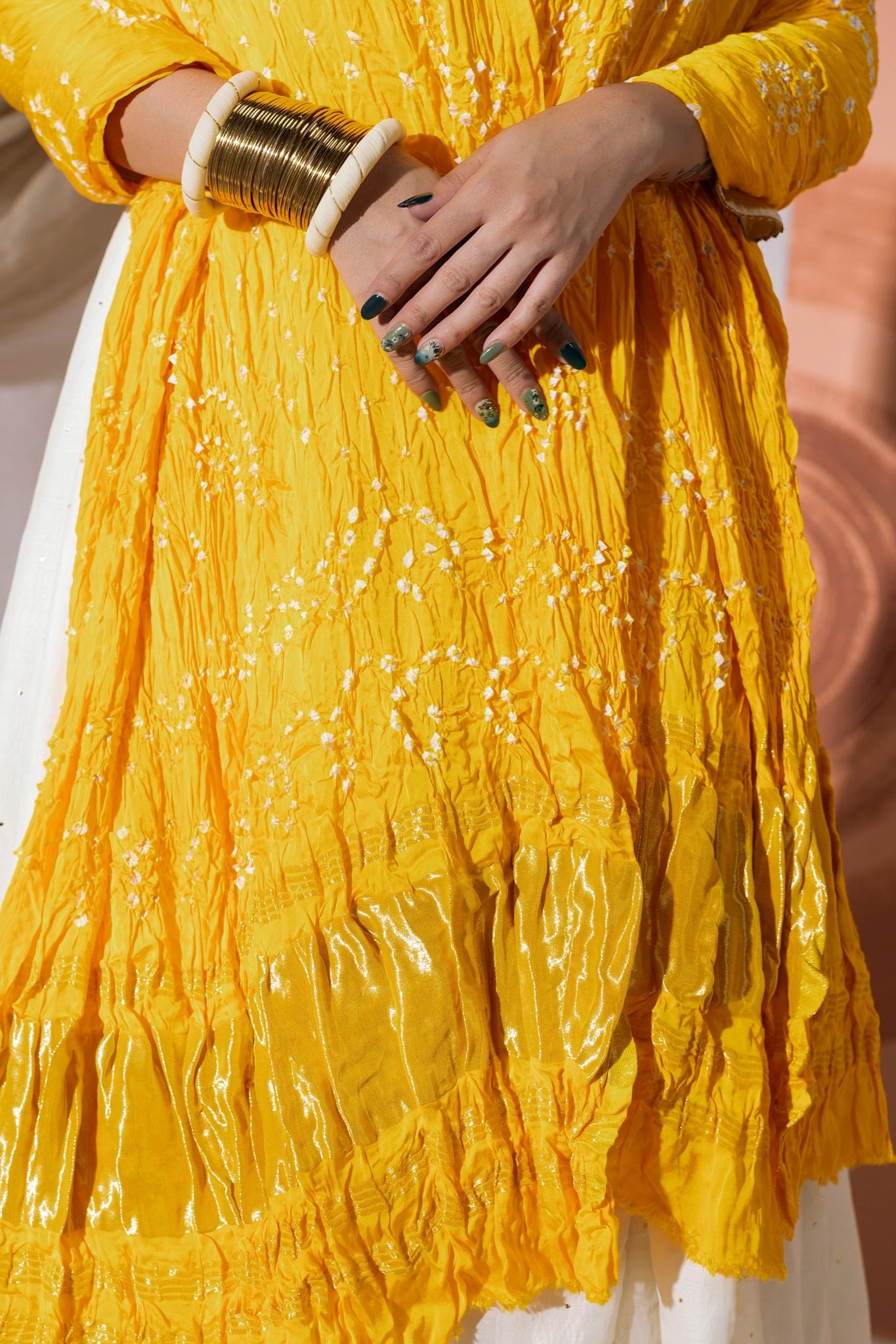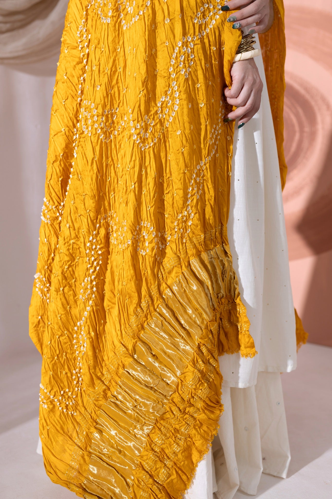 Mustard Yellow - Pure Modal Silk Lehriya Bandhani Dupatta with Zari Lagdi Patta