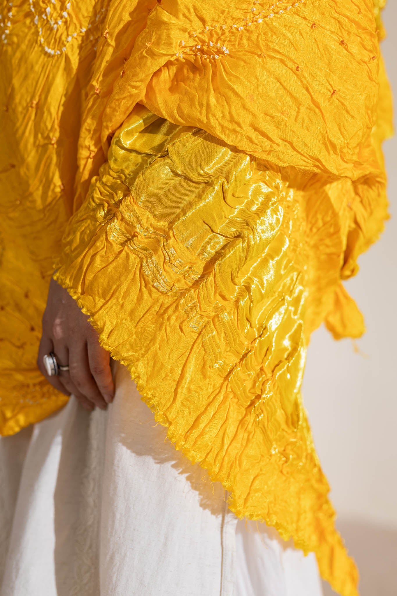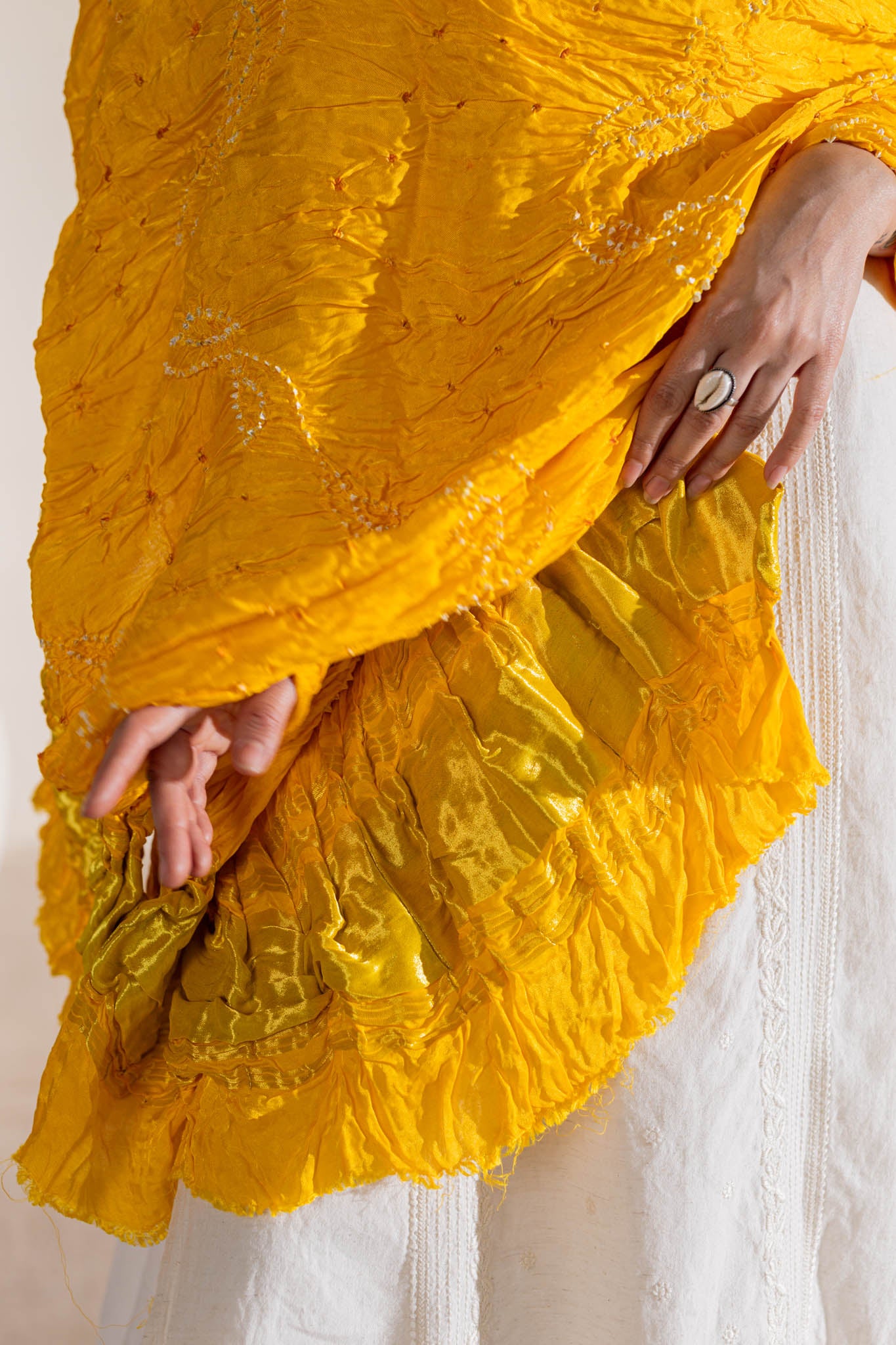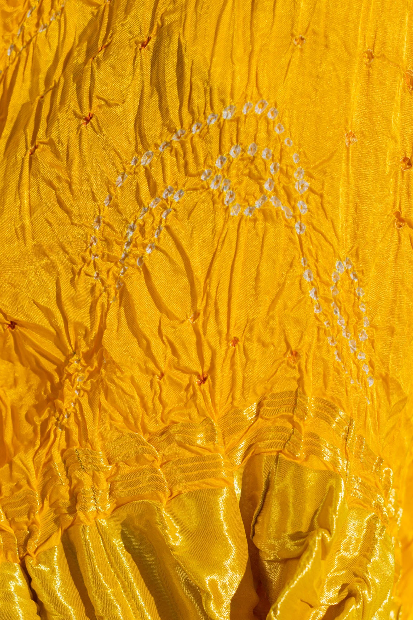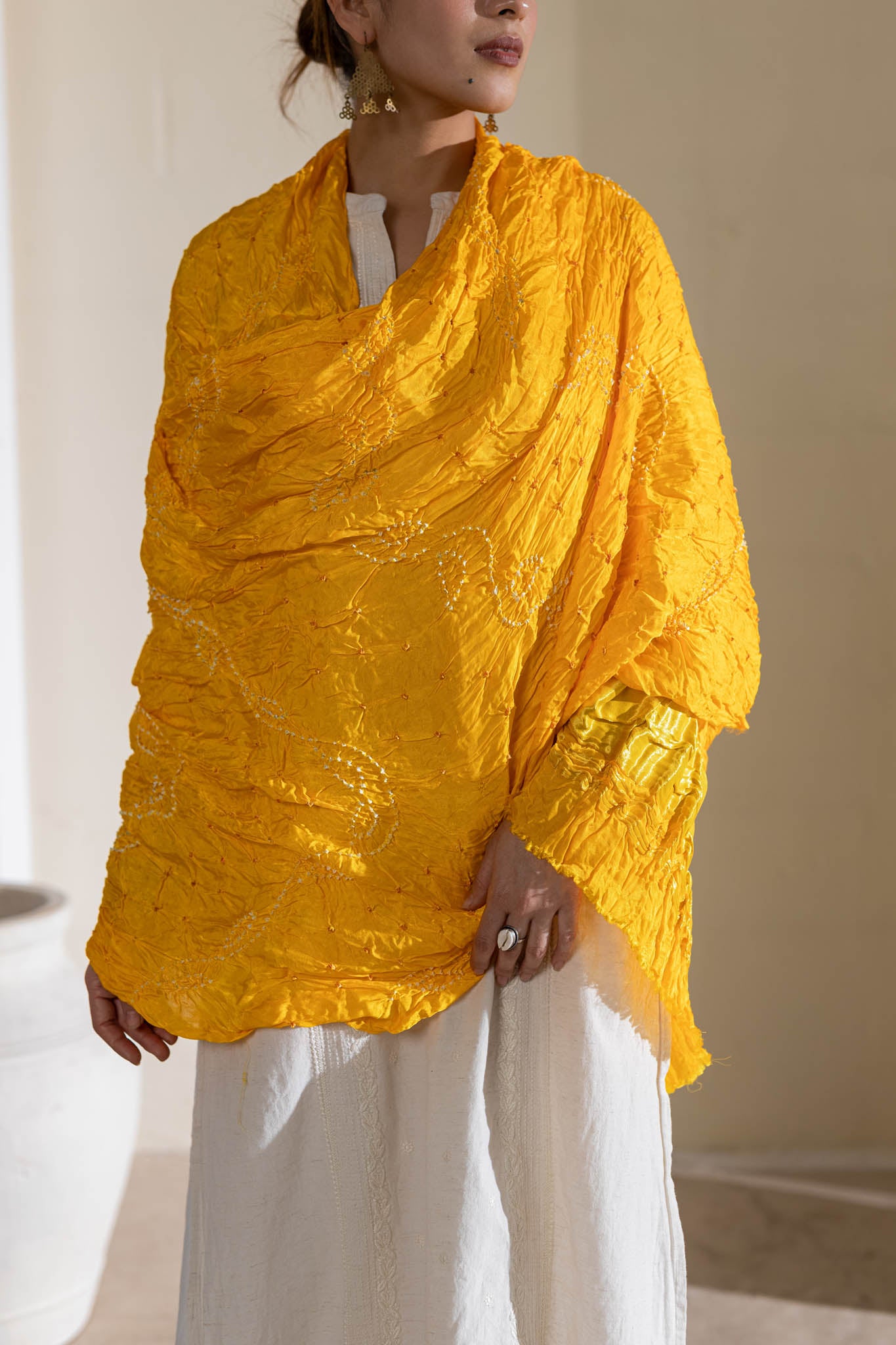 Yellow - Pure Modal Silk Lehriya Bandhani Dupatta with Zari Lagdi Patta