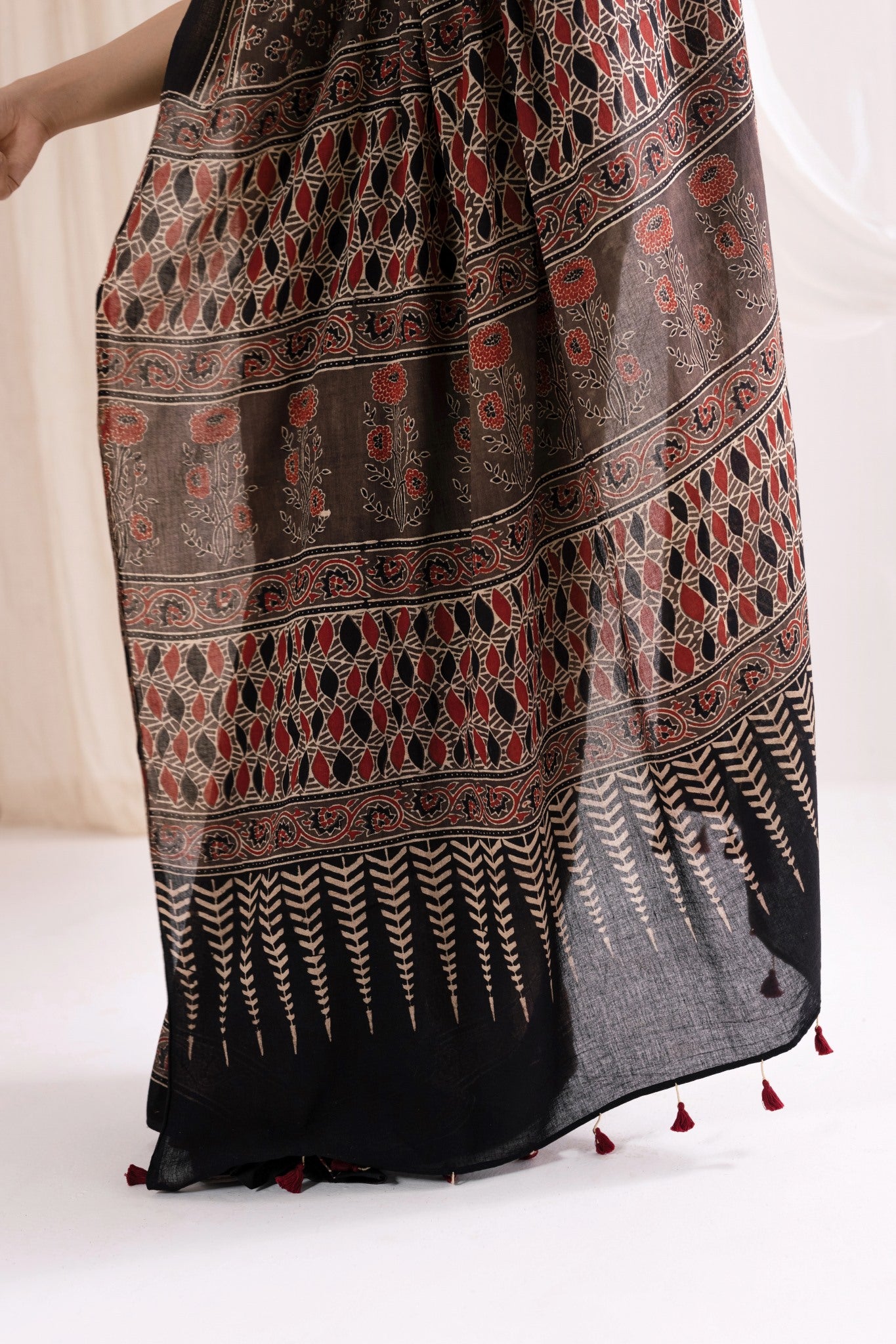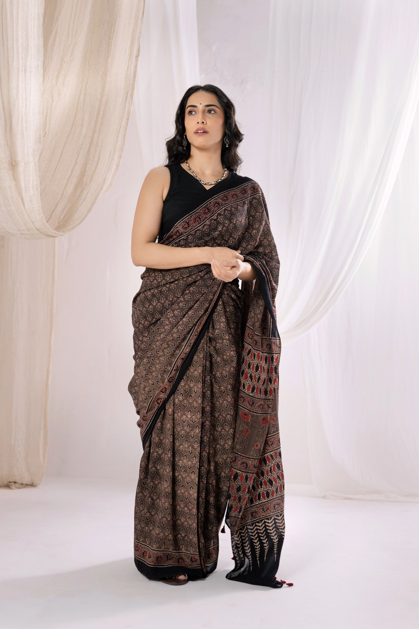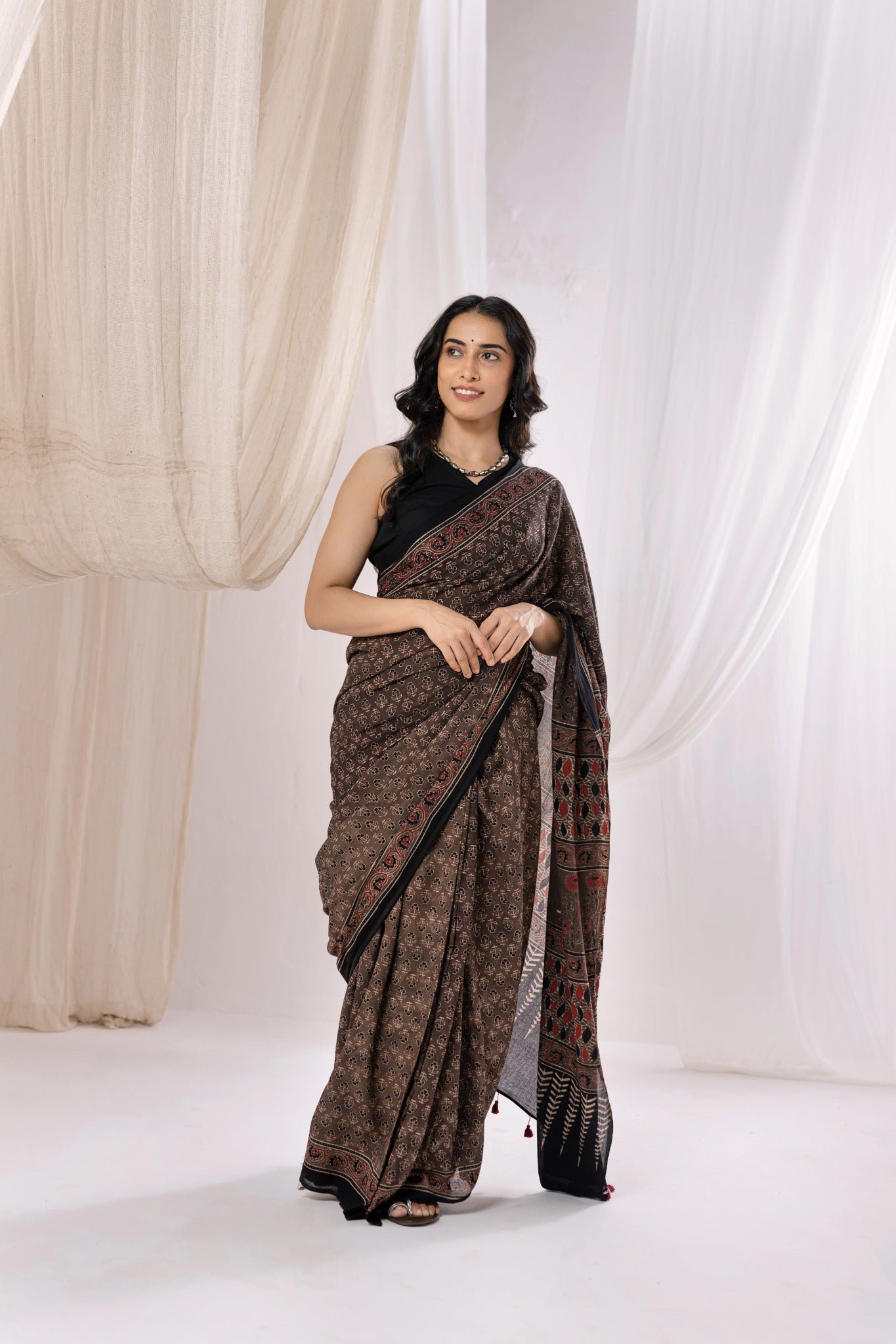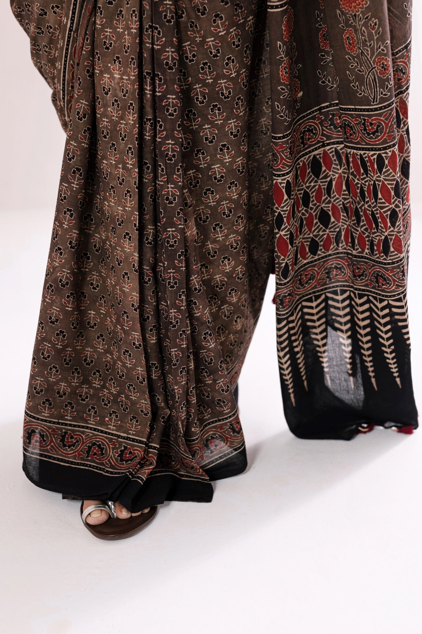 Pure Mul Cotton Ajrakh Hand Block Saree - Brown