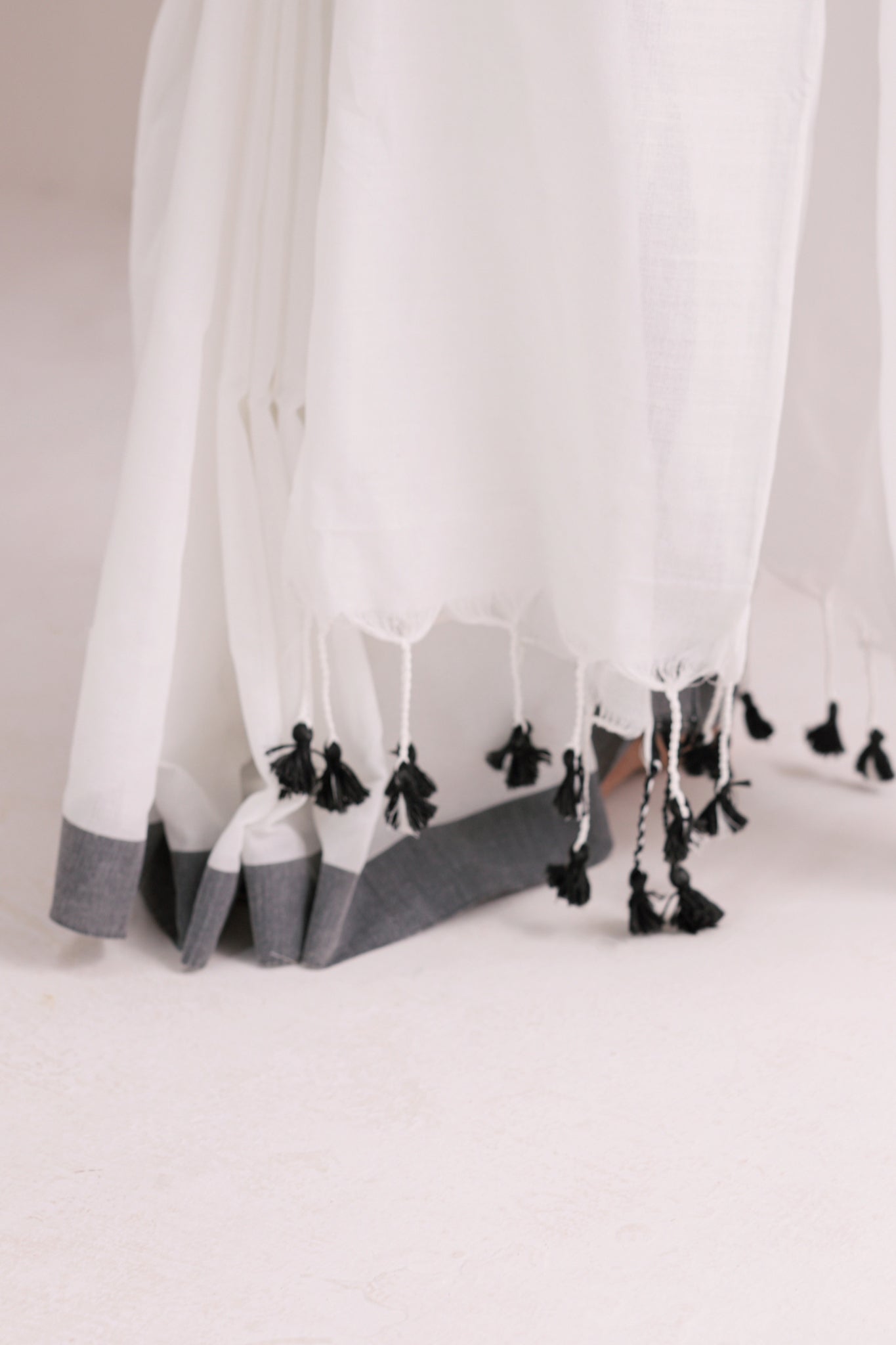 Pure Mul Cotton Handloom Contrast Color Border Saree - White/Grey