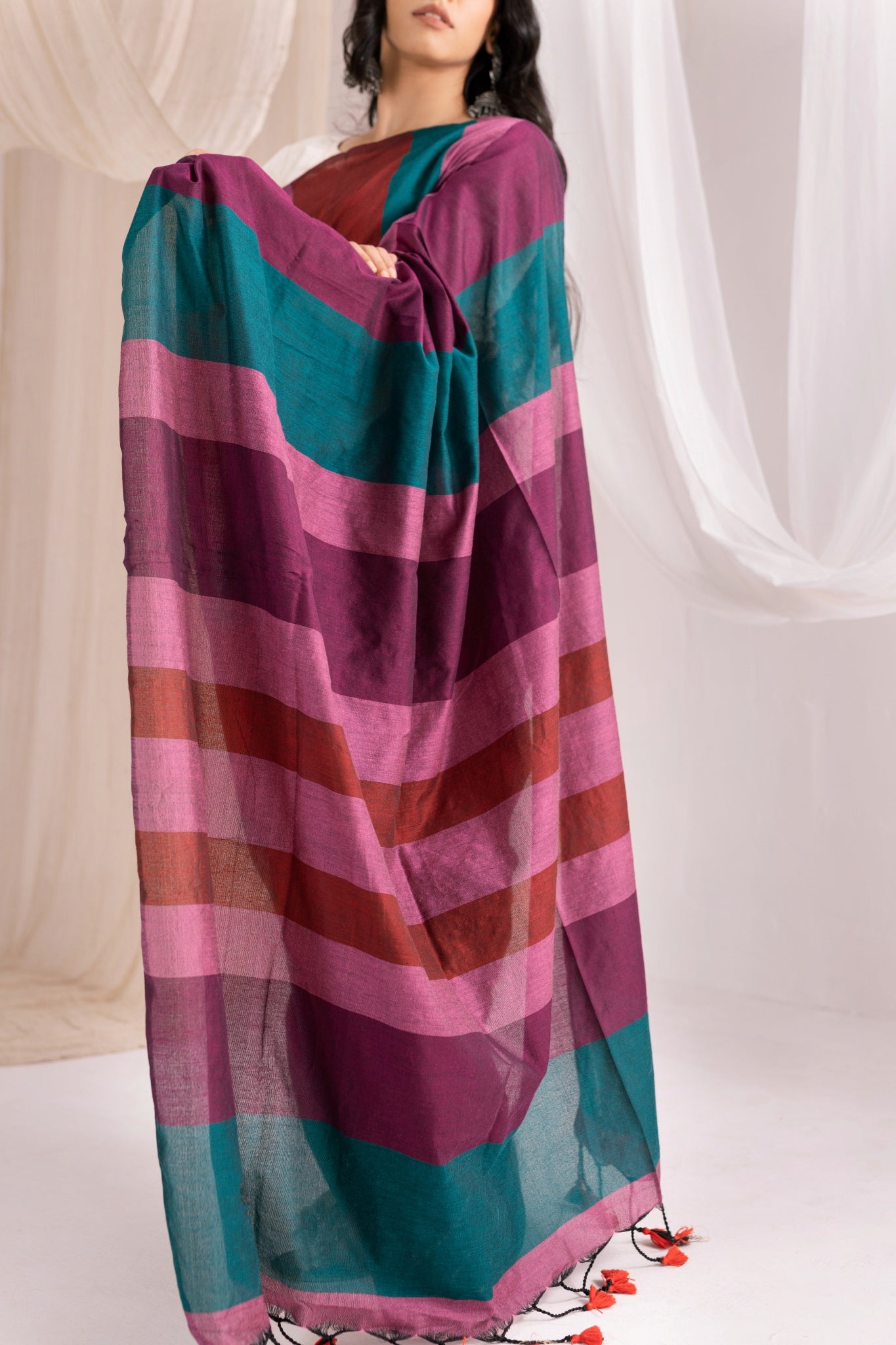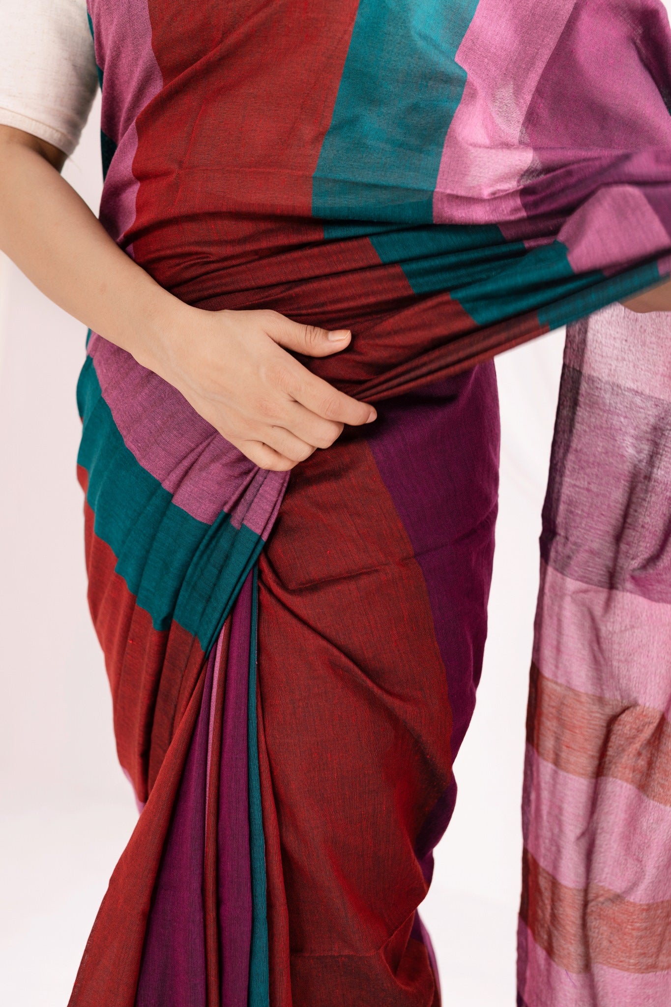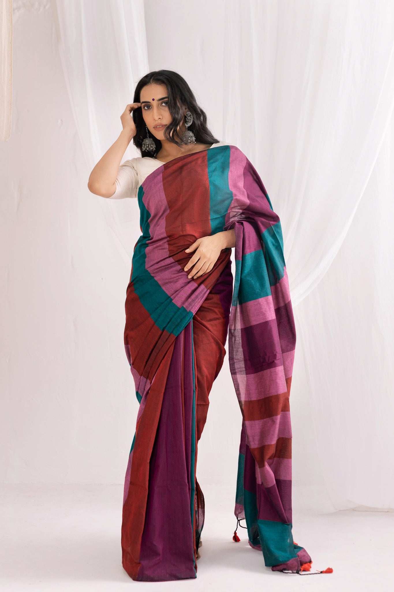 Pure Mul Cotton Handloom Contrast Color Pallu Saree - Multicolor