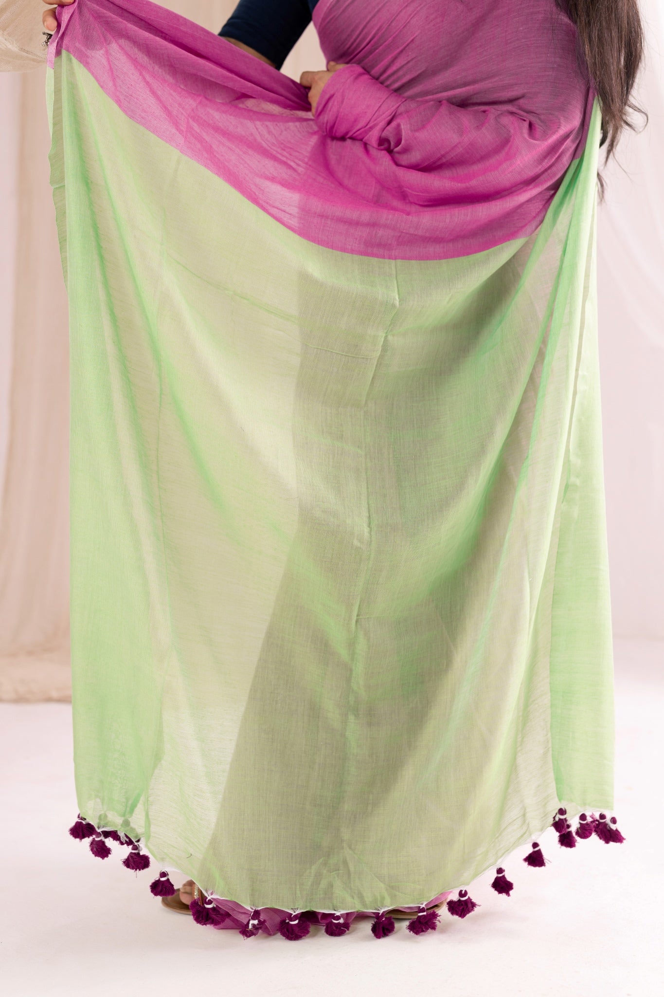 Pure Mul Cotton Handloom Contrast Color Pallu Saree - Pink/Lime Green