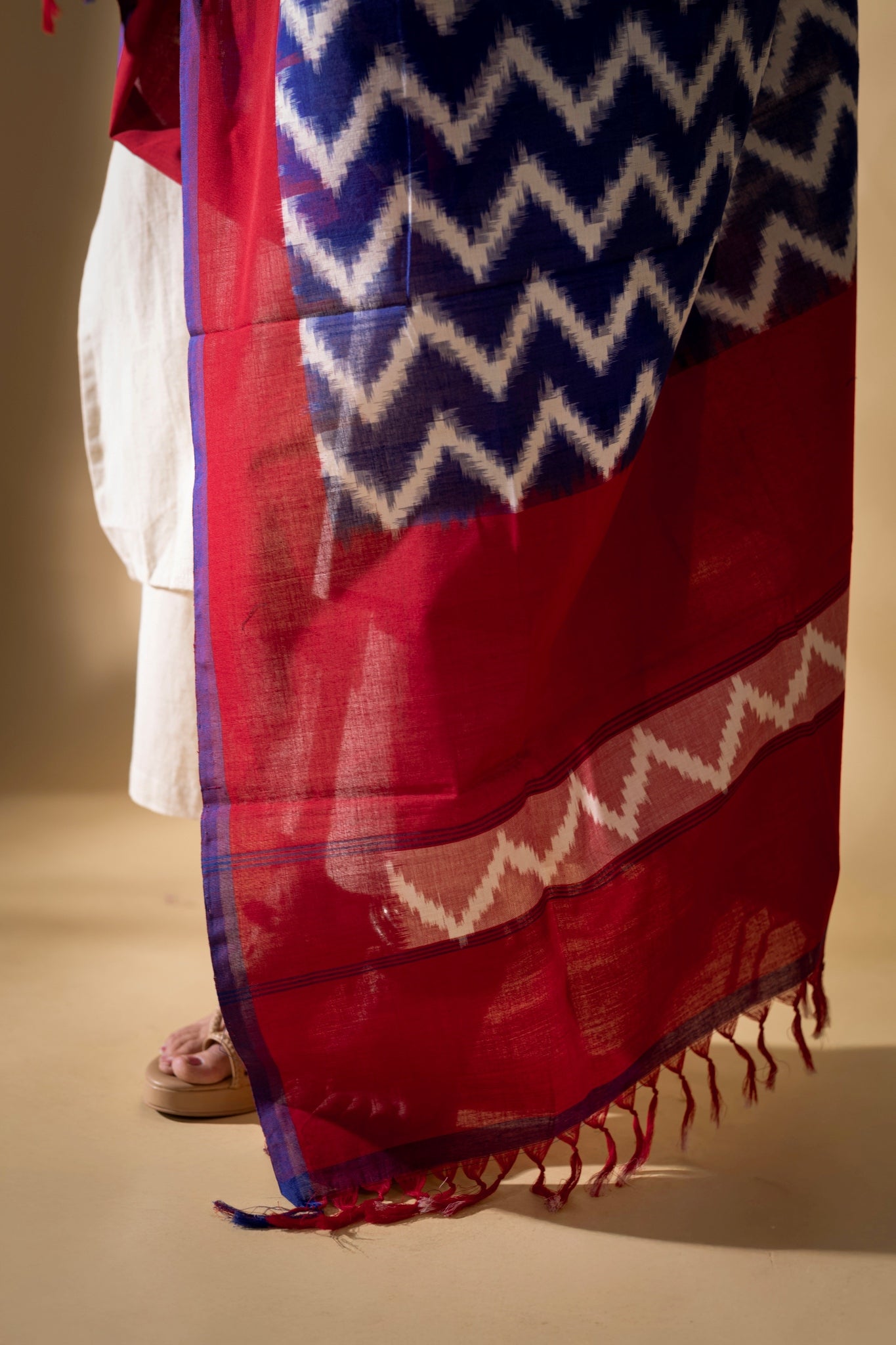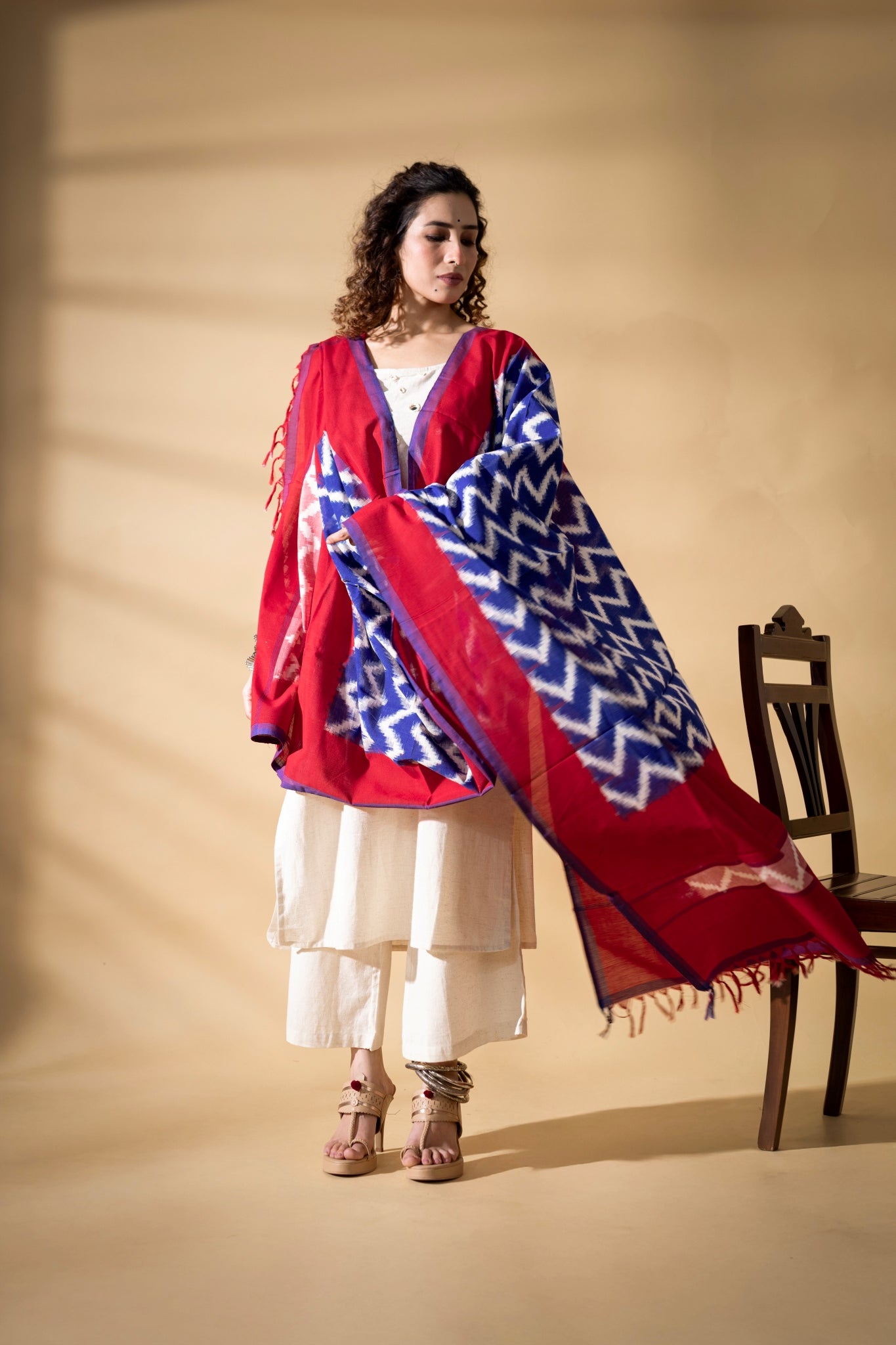 Red/Blue - Pochampally double Ikat cotton dupatta