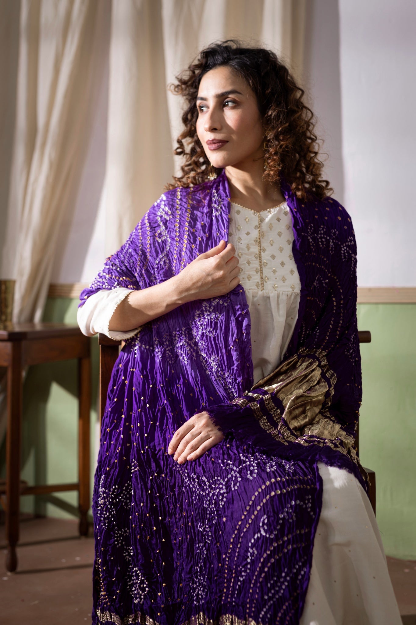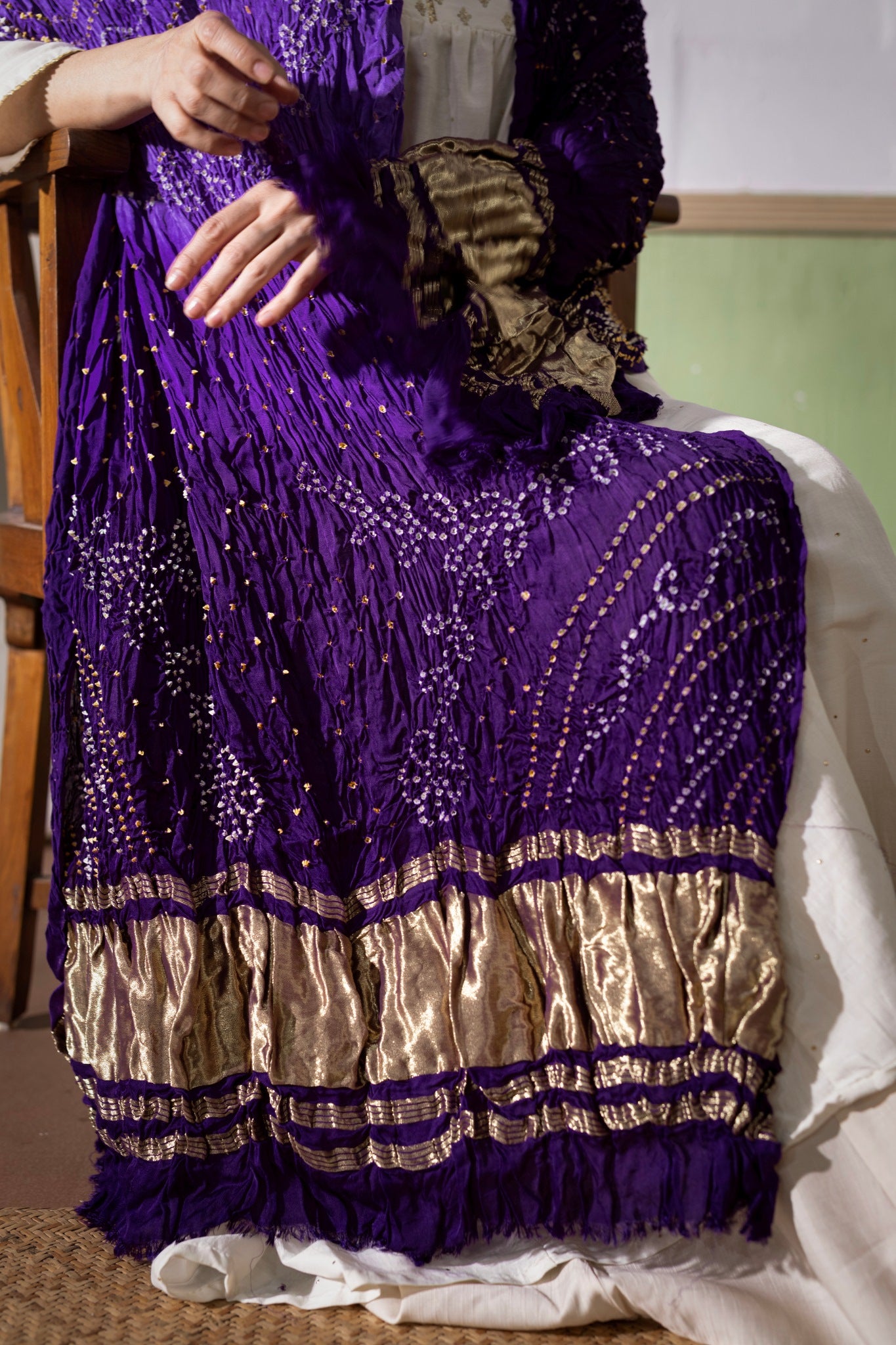 Violate - Modal Silk Bandhani Ombre Dyed Dupatta with Lagdi Patta
