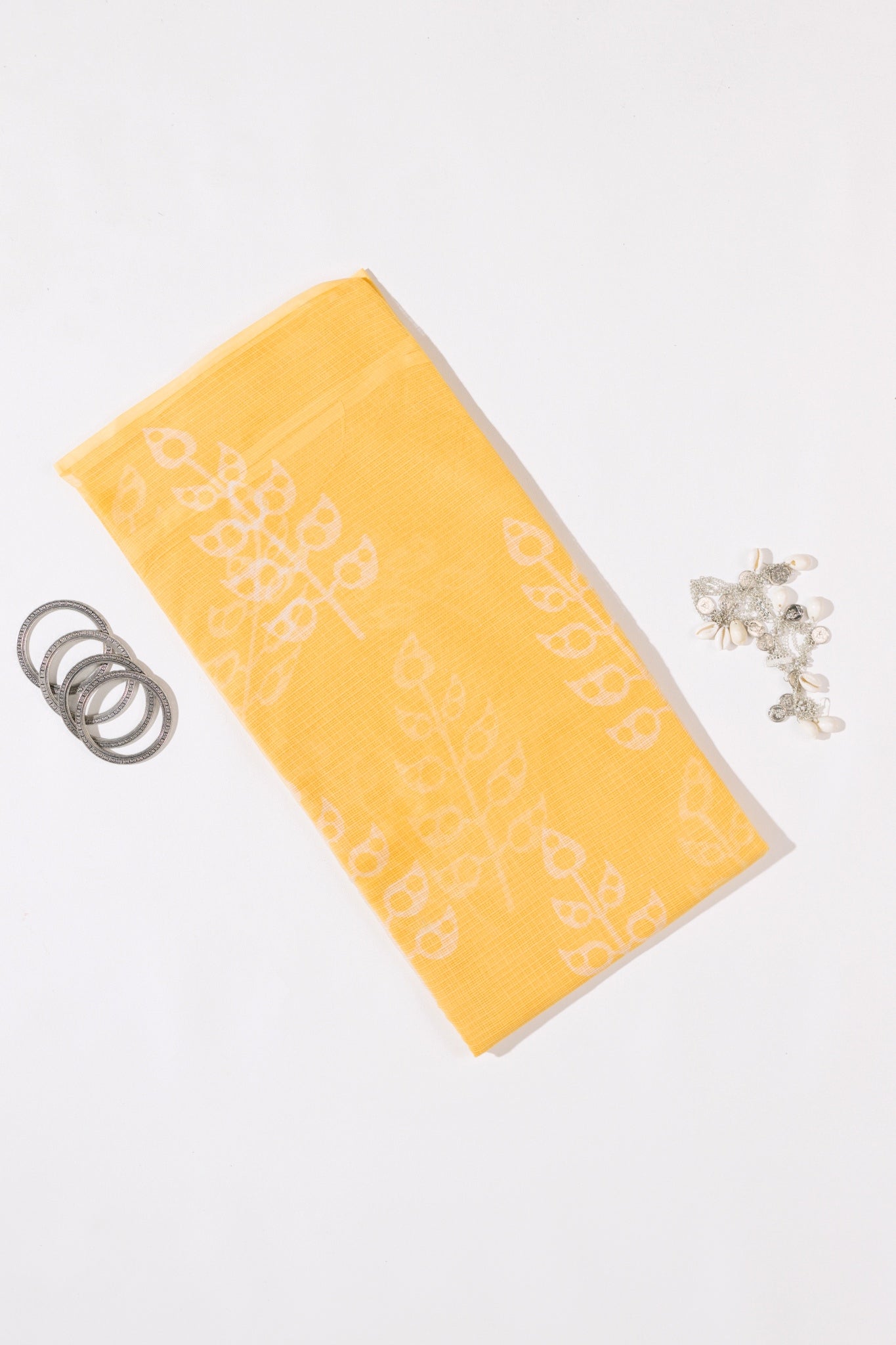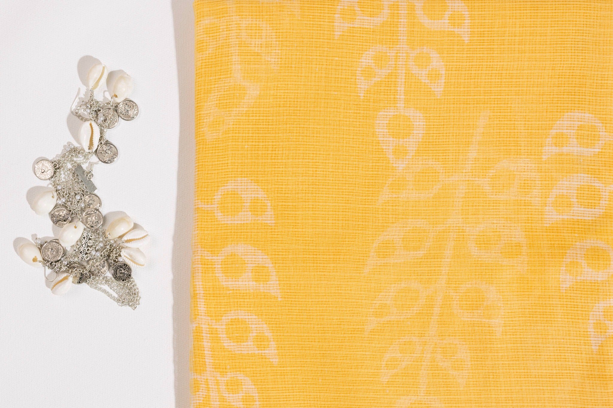 Yellow - Kota Doria Bagru Hand Block Printed Saree